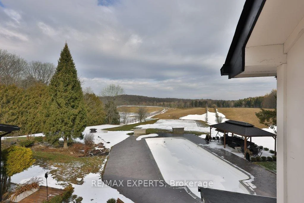 Highly Desirable and Sought After 10 Acre Country Residence Situated on The High Point of The Sixteenth Sideroad Just North of Nobleton Lakes Golf Course Between The 8th Concession and Hwy 27.The Board and Batton Bungalow Has Been Upgraded and Redecorated Resulting In A Home Worthy Of A Feature in Modern Farmhouse Magazine. The Log Walls Have Been Painted In a Soft White Complimented With 7 1/2" White Oak Hardwood Flooring, Black Hardware and Cathedral Ceilings In Every Room Featuring Natural Oak Beams and Views From Every Room to Scenic Rolling Pastures or Private Gardens. The Property Is Ideal For Horse Lovers Having a 5 Stall Horse Barn Workshop and Tack Room, Run-In Shed and Fenced Paddocks. The Property Would Also Lend Itself Ideal For A Doggy Daycare. The Detached Double Car Garage With 430 Sq. Ft. Bachelor Apartment Above Overlooks The Pool and Picturesque Rolling Pasture. An Inground Concrete 40 x 20 Ft Heated Pool Is Complete With Concrete Patio Surround Complimented With A Covered Gazebo and Adjacent Built-in Pool Cabana Featuring Double French Doors, A Roll-Up Servery Door, Wet Bar, Vaulted Ceiling and 2 Piece Washroom.