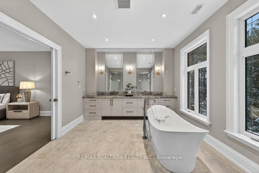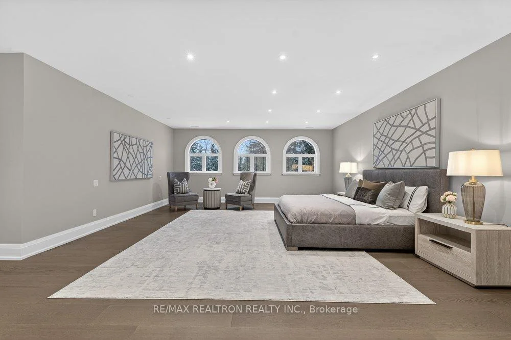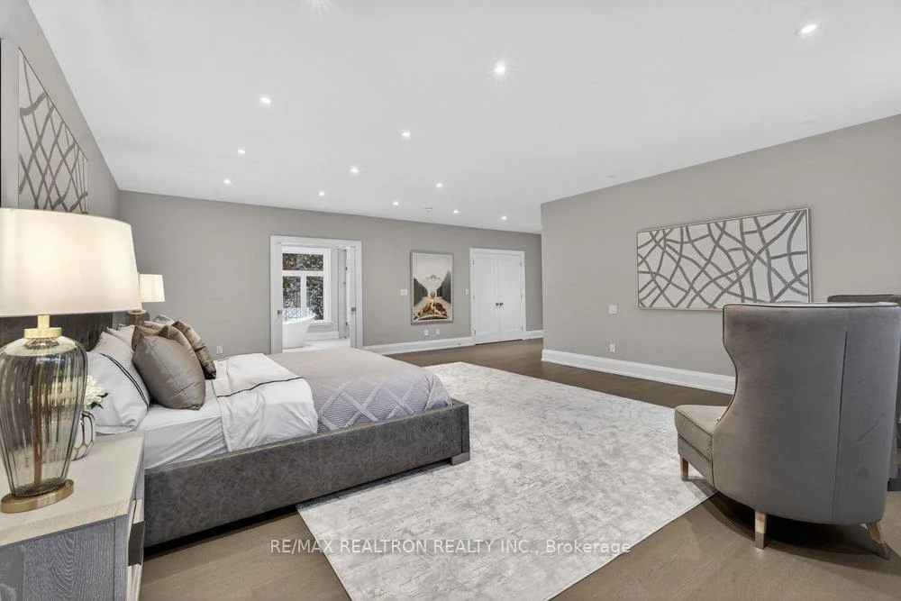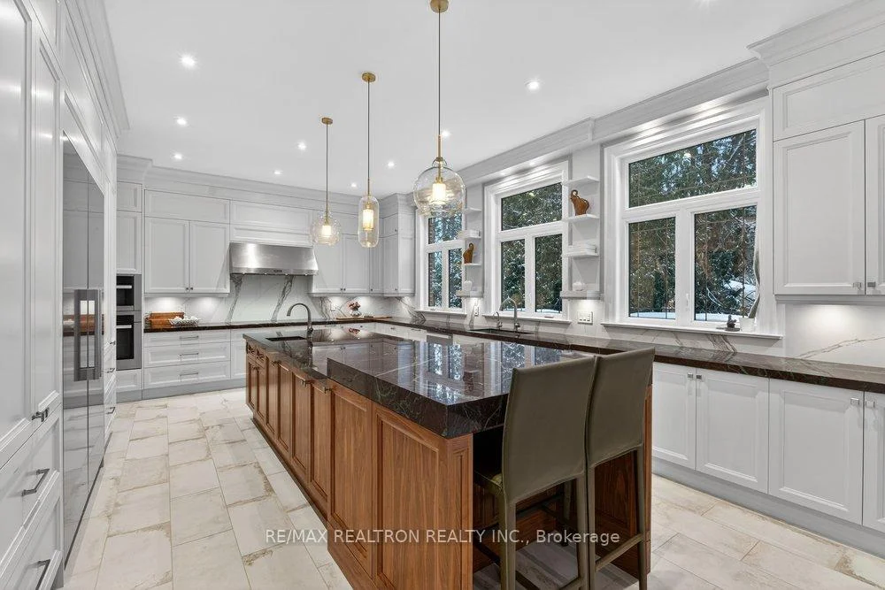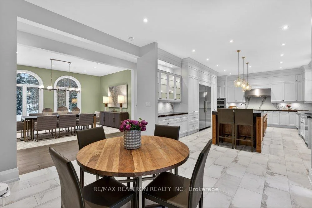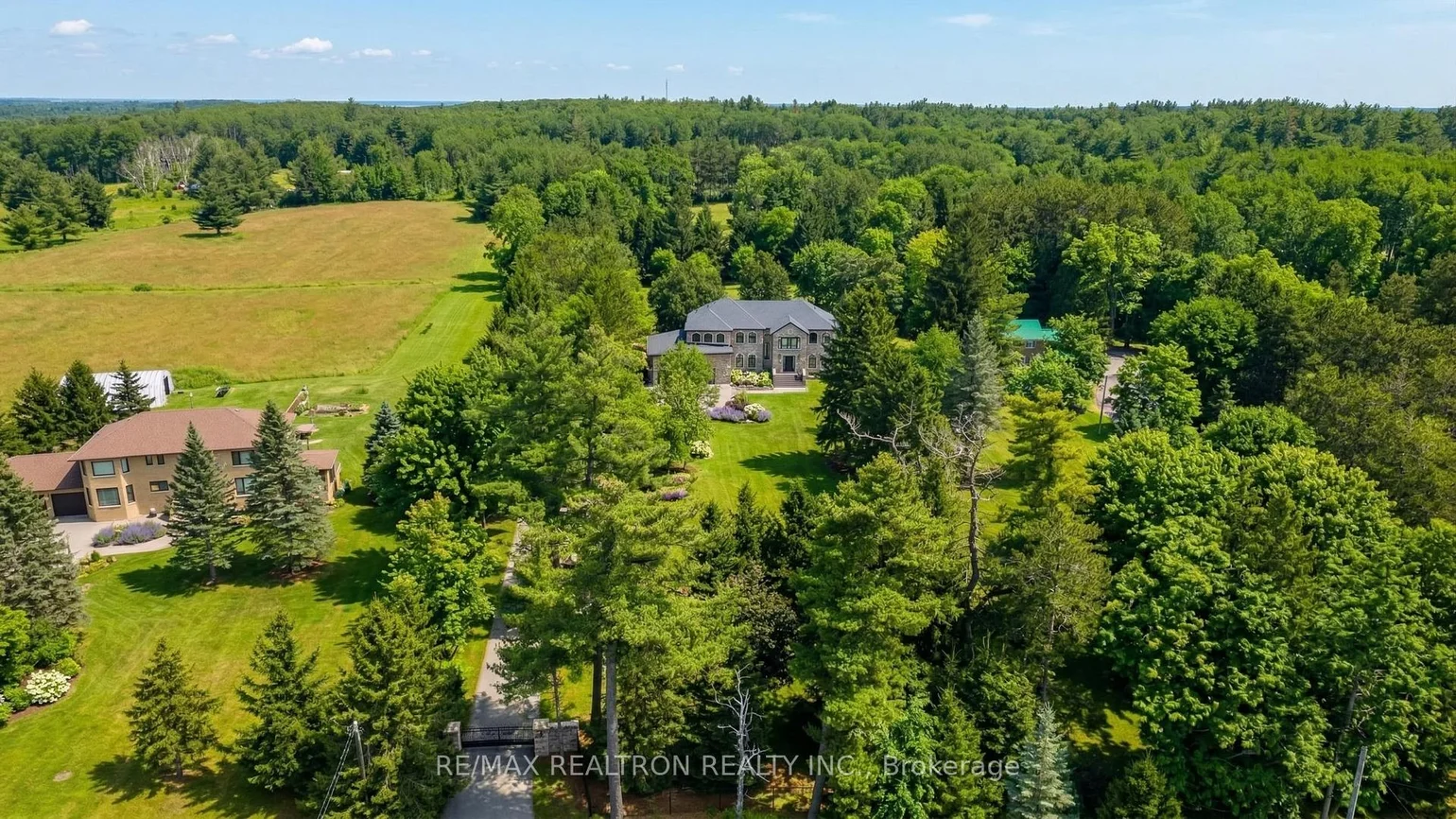 Welcome to a Marvel of Modern Construction. Recently Completed on a 2.4-acre Gated Estate in Prestigious King Offering over 7,500 Sq ft of refined luxury living (5800 SQ.FT+2950 SQFT). A long, tree-lined approach unveils a residence defined by natural stone and brick masonry, balanced proportions, and striking architectural presence. Soaring two-storey 20-ft ceilings crown the grand great room, creating a dramatic yet elegant setting for entertaining. The chef's kitchen anchors the home with a quartzite island, premium built-in appliances, dual cooktops and ovens, and an oversized walk-in pantry. Each bedroom features a private en-suite, including a main-floor suite, designed for seamless multi-generational living. The upper primary retreat offers a spa-inspired en-suite and bespoke dressing room. The finished lower level, with 12-ft ceilings and golf simulator rough-in, adds exceptional lifestyle flexibility. Notable upgrades include dual HVAC systems, radiant floor heating, spray foam insulation, and a tankless water system. A 3+2-car garage, heated 30x30 workshop, and expansive two-tier deck complete the estate. Minutes to Hwy 400, top private schools, and amenities-an enduring legacy property defined by craftsmanship, privacy, and location.