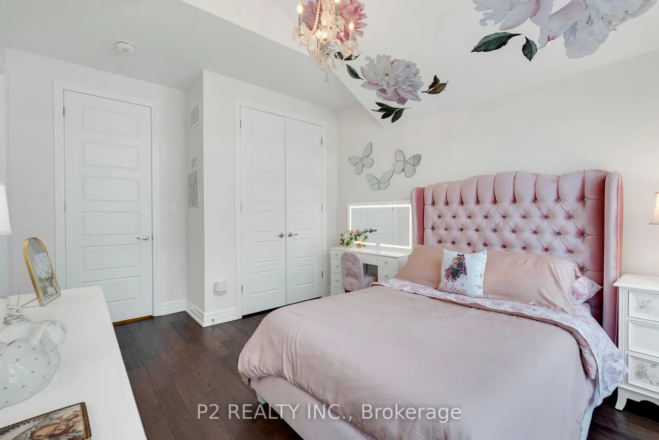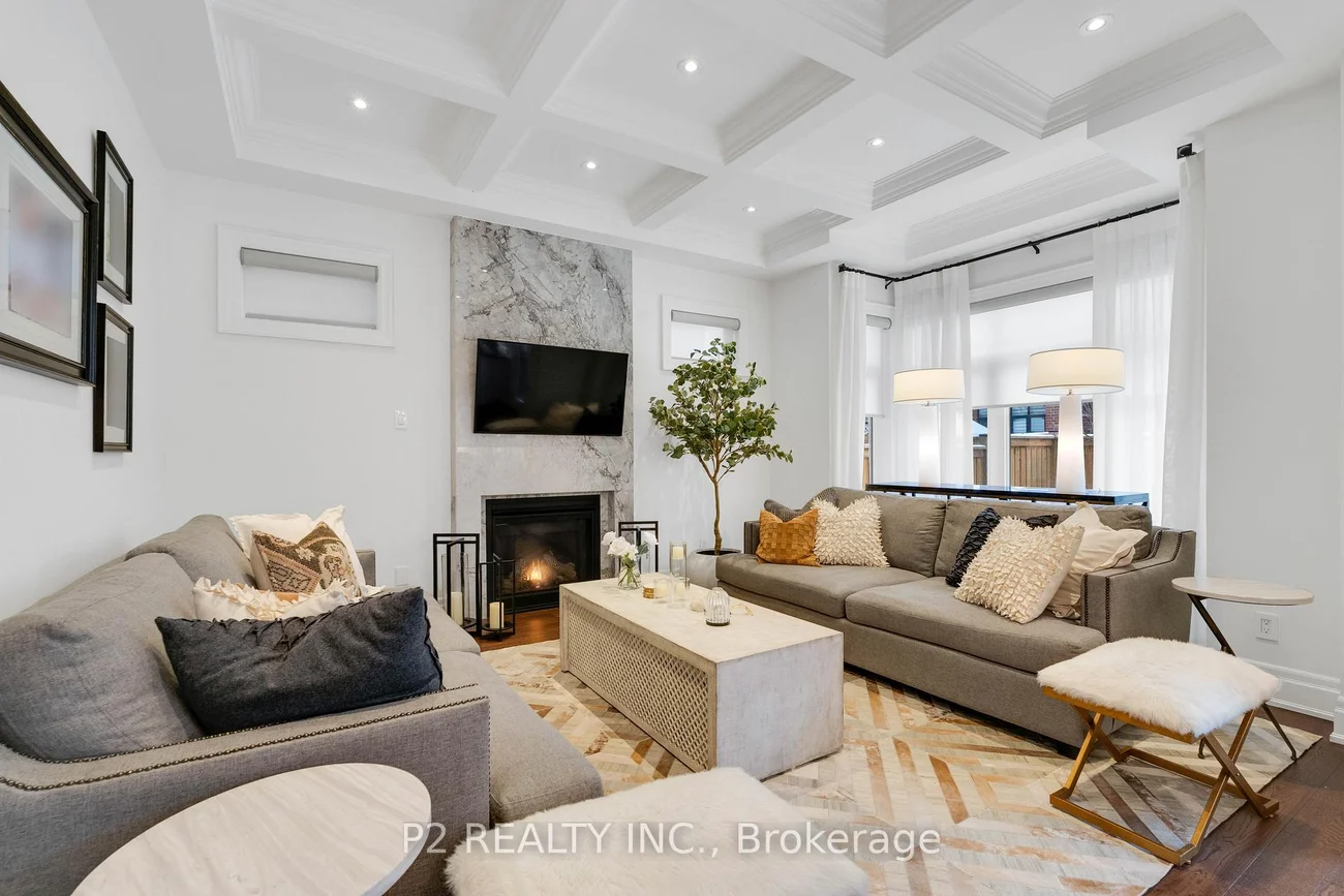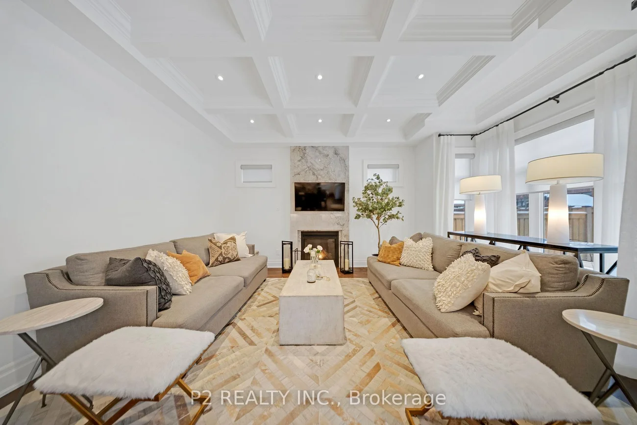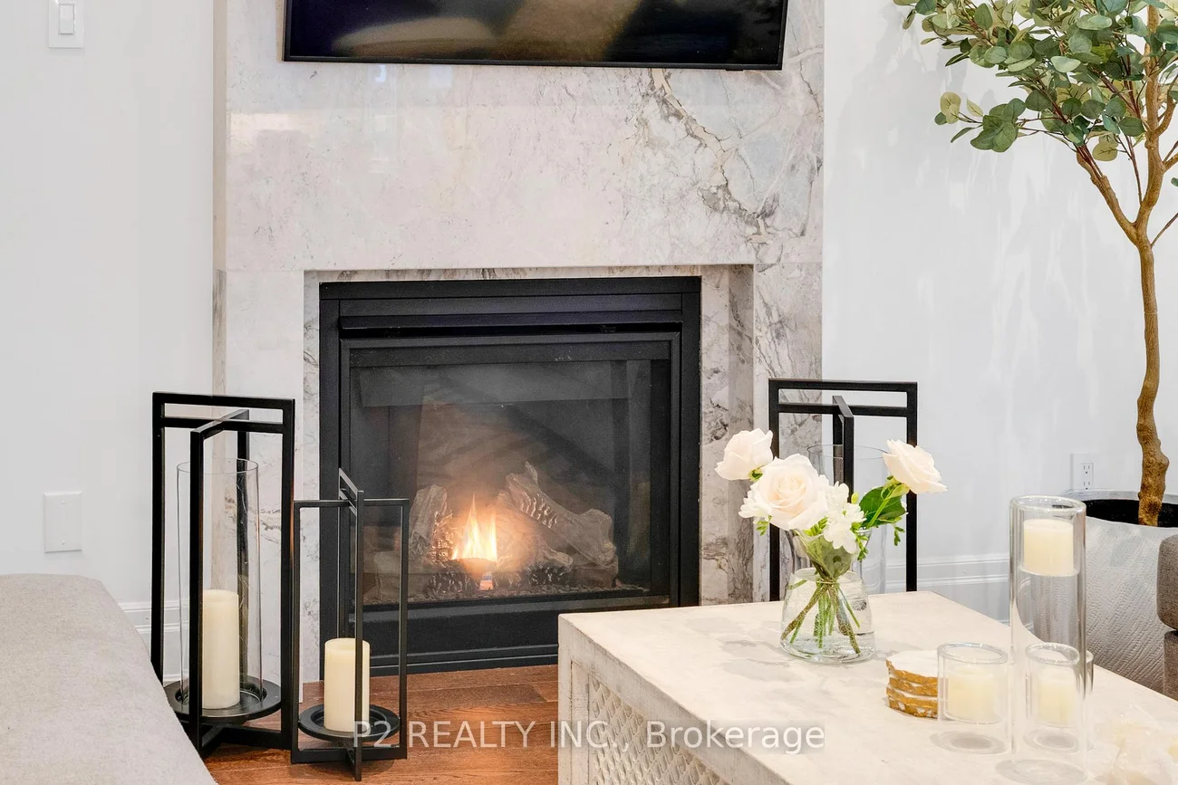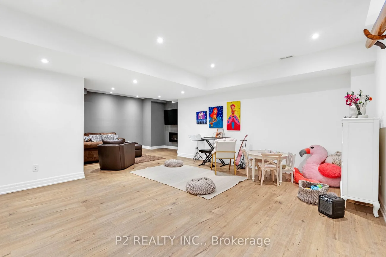Stunning stone & brick home in the heart of King City offering over 4,000 sq ft of finished luxury living space. Over $250,000 in upgrades Featuring 5 bedrooms, 6 bathrooms, 10 ft ceilings on the main, 9 ft on the second and basement, 8 ft interior doors, 24 x 24 porcelain tiles on main, 5" wire-brushed hardwood flooring on main and second, crown moulding, wainscoting, and designer lighting throughout. Modern custom kitchen with extended uppers, farmers sink, and premium Thermador appliances. Spacious living area with floor-to-ceiling marble gas fireplace. Main floor office with double french glass doors. All bedrooms include their own upgraded bathrooms with quartz counters, 12x24 tiles, and frameless glass doors. Primary suite features a freestanding tub, double vanity, and frameless glass shower. Professionally landscaped front & back yard with gas BBQ hookup, outdoor landscape lighting, and 2 EV plugs in garage. Finished basement includes a fitness room, large recreation area, Great room with electric fireplace, storage rooms, cantina, and 3-pc bath. Additional features include custom closet organizers, upgraded window coverings, second-floor laundry, solid 3-lock fiberglass main door, and 200-amp electrical panel. Premium lot with unobstructed east views-luxury living in a prime King City location.