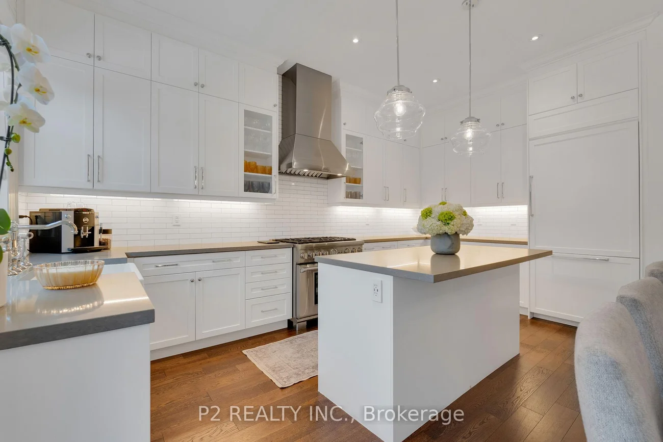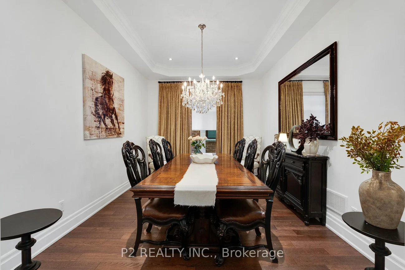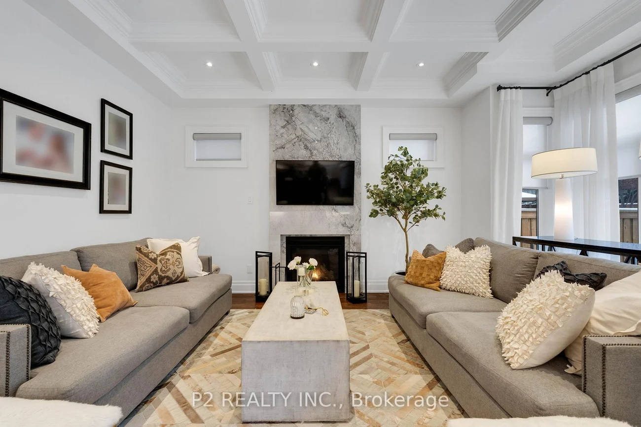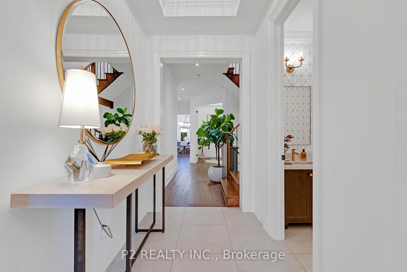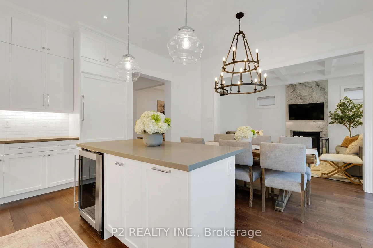 Stunning stone & brick home in the heart of King City offering over 4,000 sq ft of finished luxury living space. Over $250,000 in upgrades Featuring 5 bedrooms, 6 bathrooms, 10 ft ceilings on the main, 9 ft on the second and basement, 8 ft interior doors, 24 x 24 porcelain tiles on main, 5" wire-brushed hardwood flooring on main and second, crown moulding, wainscoting, and designer lighting throughout. Modern custom kitchen with extended uppers, farmers sink, and premium Thermador appliances. Spacious living area with floor-to-ceiling marble gas fireplace. Main floor office with double french glass doors. All bedrooms include their own upgraded bathrooms with quartz counters, 12x24 tiles, and frameless glass doors. Primary suite features a freestanding tub, double vanity, and frameless glass shower. Professionally landscaped front & back yard with gas BBQ hookup, outdoor landscape lighting, and 2 EV plugs in garage. Finished basement includes a fitness room, large recreation area, Great room with electric fireplace, storage rooms, cantina, and 3-pc bath. Additional features include custom closet organizers, upgraded window coverings, second-floor laundry, solid 3-lock fiberglass main door, and 200-amp electrical panel. Premium lot with unobstructed east views-luxury living in a prime King City location.