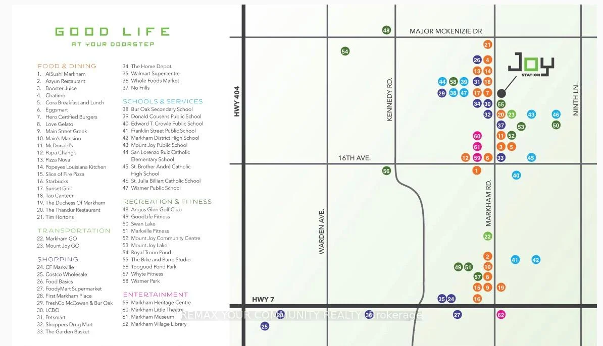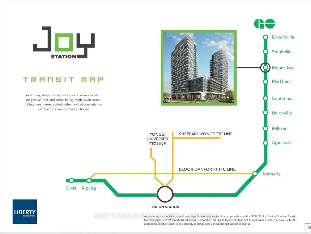 Welcome to JOY Station Condos, brand new condo community where comfort meets convenience! This2 bedroom unit, 618sqft, functional layout features stainless steel appliances, floor to ceiling East facing windows with large balcony. Friendly property management and building staff, 24/7 Concierge make you feel at home! When ready, be the first to enjoy the top notch amenities: fitness centre, games room, guest suite, party room, Children's play room, golf simulator, rooftop terrace and more! Everything you need is in walking distance, steps to Mount Joy Go Station, three grocery stores, restaurants, banks, coffee shops. Quick drive to Hwy 407,Markville Mall, Cornell Community Centre with large pool, library and sports courts. Lease includes one parking space close to elevator entrance. Move in and enjoy the comfort and convenience JOY Station Condos has to offer!