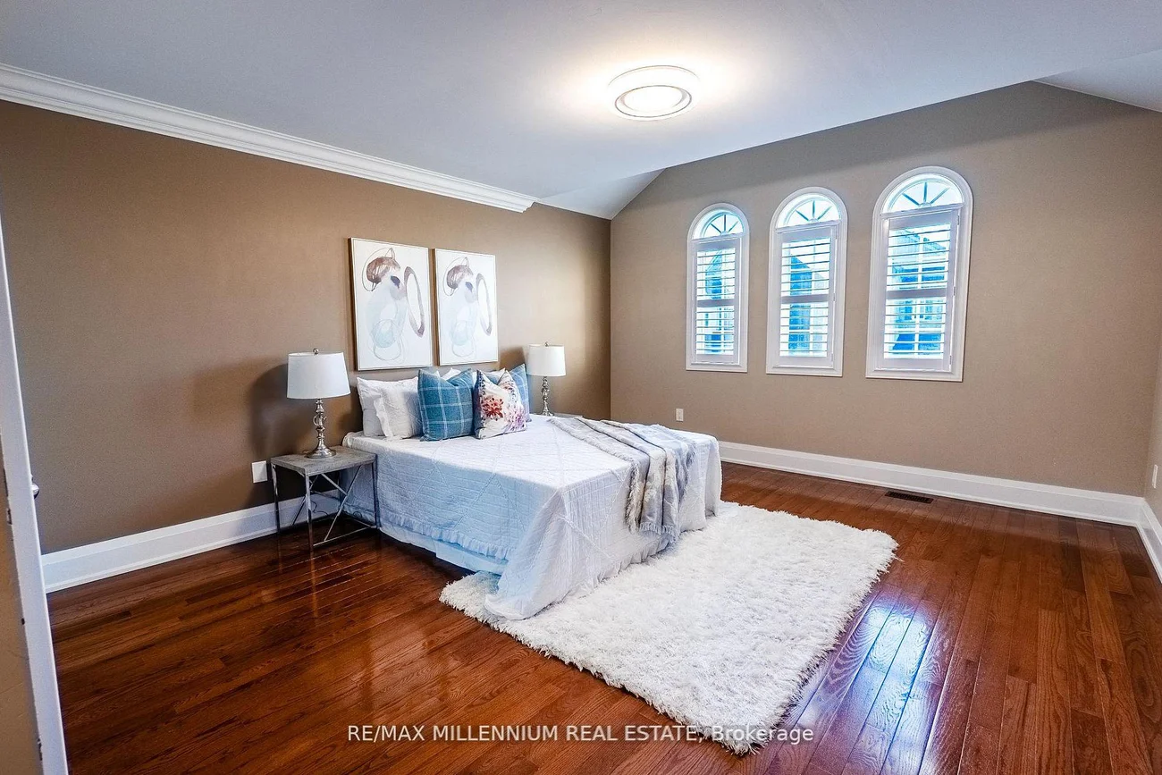 Welcome to 1 Bracknell Avenue in the Highly Sought-After Berczy Community of Markham!This stunning, sun-filled 5+2 bedroom, 4+2 bathroom detached home with almost 4300 SQFT offinished living area sits on a premium corner lot with no sidewalk, offering exceptional curbappeal and abundant natural light throughout. Located just steps from beautiful Berczy Park andwithin the top-ranked Stonebridge Public School & Pierre Elliott Trudeau High School zones,this home offers the perfect blend of luxury, comfort, and convenience.Inside, you'll find a main floor bedroom and full bath-ideal for multigenerational living orguests. The home boasts hardwood flooring throughout, crown moulding, and upgraded lightfixtures, with a bright second-floor loft/office area perfect for remote work or study.The heart of the home has a brand-new chef's kitchen, featuring quartz countertops, stainlesssteel appliances, and plenty of storage. The finished garage includes epoxy flooring and addedinsulation, making it both functional and stylish.The legal 2-bedroom basement apartment has a separate entrance, its own laundry, kitchen and full bathroom.Outdoor features include pot lights, gorgeous stamped concrete- driveway, front porch &backyard, surveillance security camera system and a large backyard shed for extra storage.Enjoy peace of mind with newer mechanicals: 5-year-old furnace, 6-year-old A/C, and ownedtankless water heater.This is a rare gem in one of Markham's most prestigious neighborhoods-don't miss your chance tocall it home!