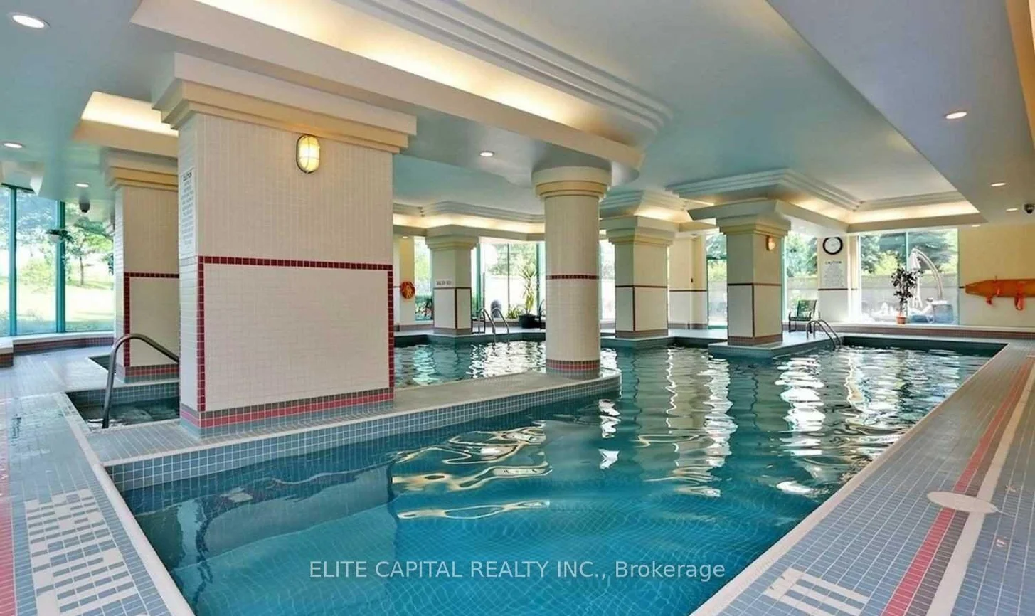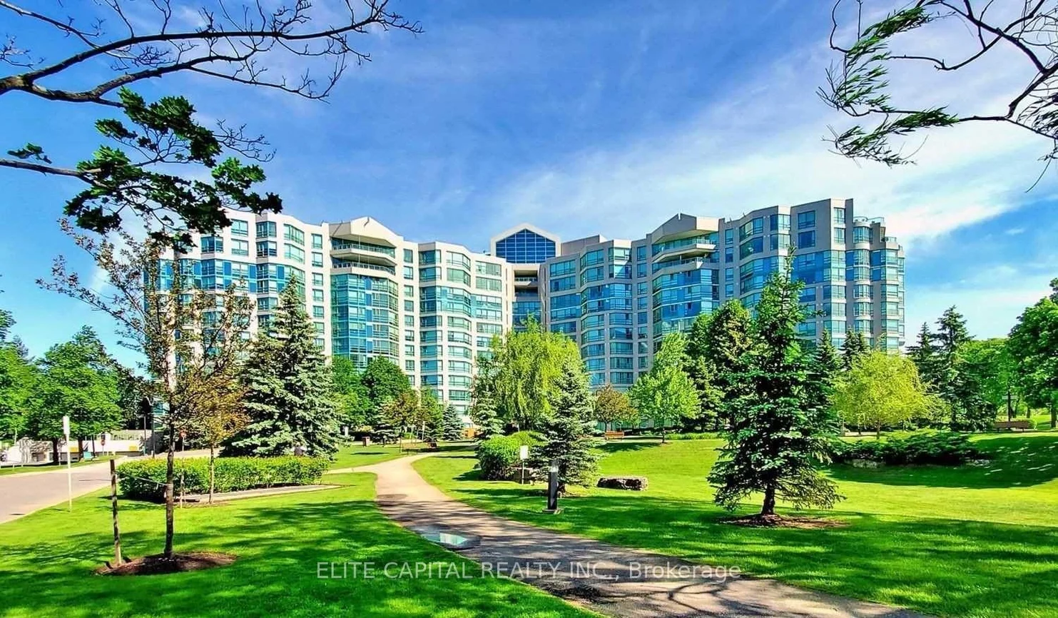 "The Landmark of Thornhill." An award winning building! Very spacious and bright unit, approx. 1380 sq feet. Original owner. Newly painted, Laminate floor . Well kept, just waiting for your creative touch. Large solarium could double as a lovely home office. 2 Big bedrooms. The Primary bdrm includes a large walk-in closet and en-suite with a Jacuzzi. Condo fees include all the utilities. Grounds are beautifully kept. Close to shopping, parks. schools, Highway and 407 and transit. Enjoy resort like amenities: large indoor pool, Sauna, 24 hr concierge, Media Room, Tennis court, Exercise room (gym), Squash, Billiards, Party Room, Guest suite, beautiful grounds for walking.****** Unit is vacant move in anytime, quick closing preferred.*****