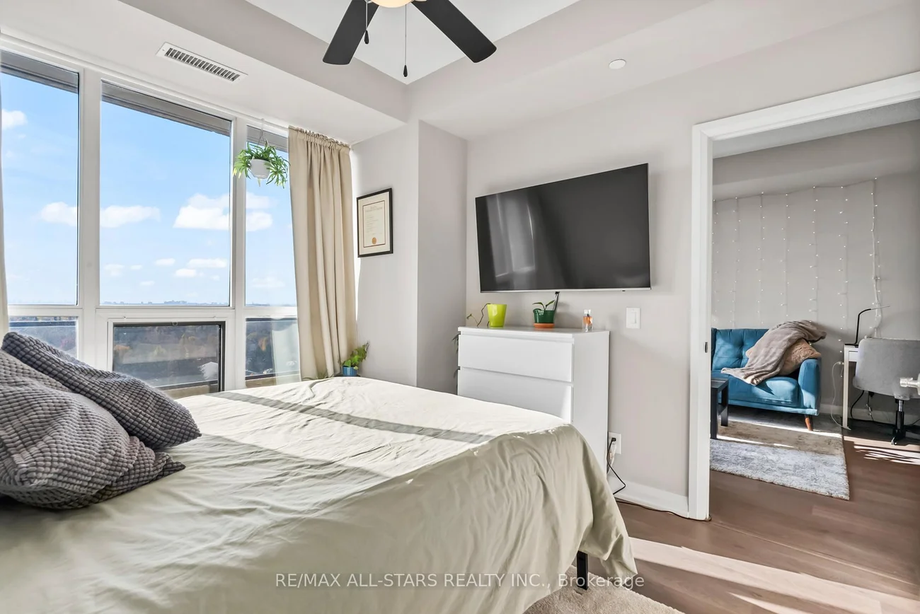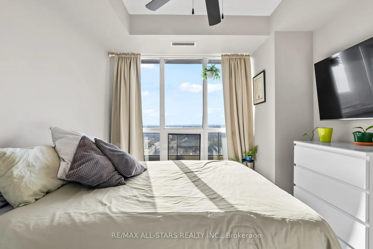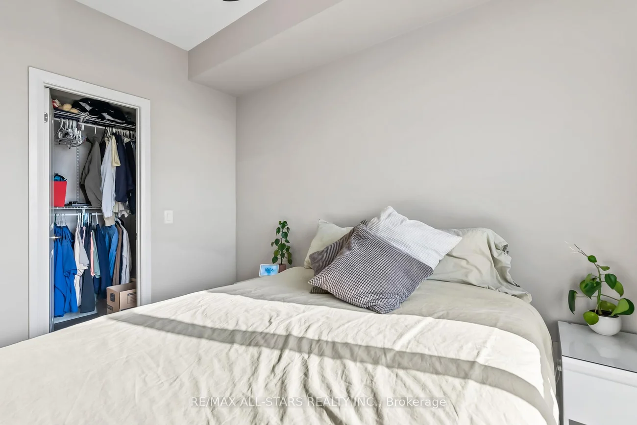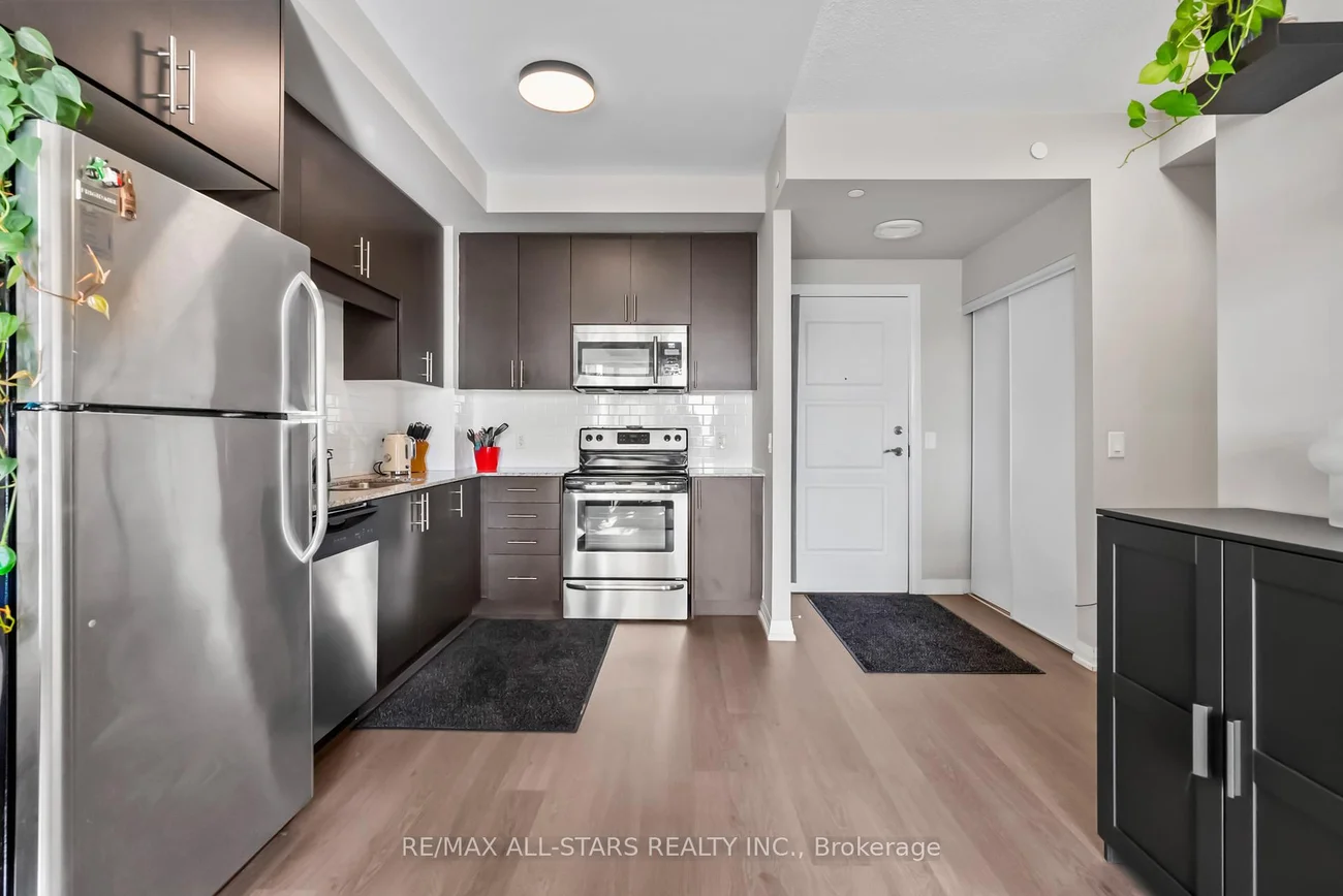 Amazing South Exposure floods this unit in Greenpark Upper Village with unobstructed views. Walk into the open concept unit with 9' ceilings and laminate floors. The Primary bedroom is bright with oversized window that has comes with closet organizers. The kitchen has 41" upper cabinets with granite counters, undermount sink and backsplash. The walkout to the balcony from the living room has beautiful unobstructed views of trees and a pond. Excellent location for Mount Joy GO Train Station, shopping, and easy highway access. 24 hr Concierge service, gym, recreation/meeting room and guest suites. This is a great investment for a first time buyer and or investor.