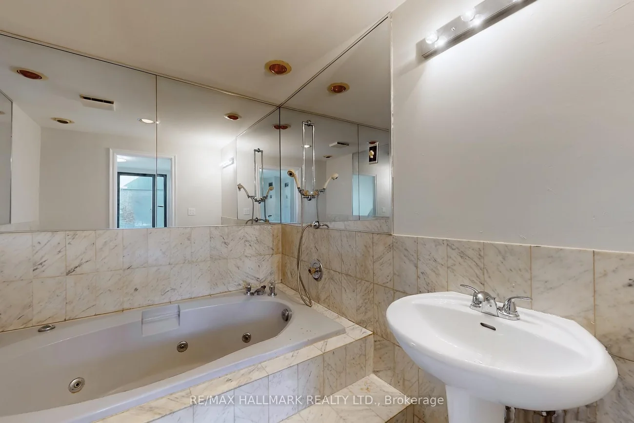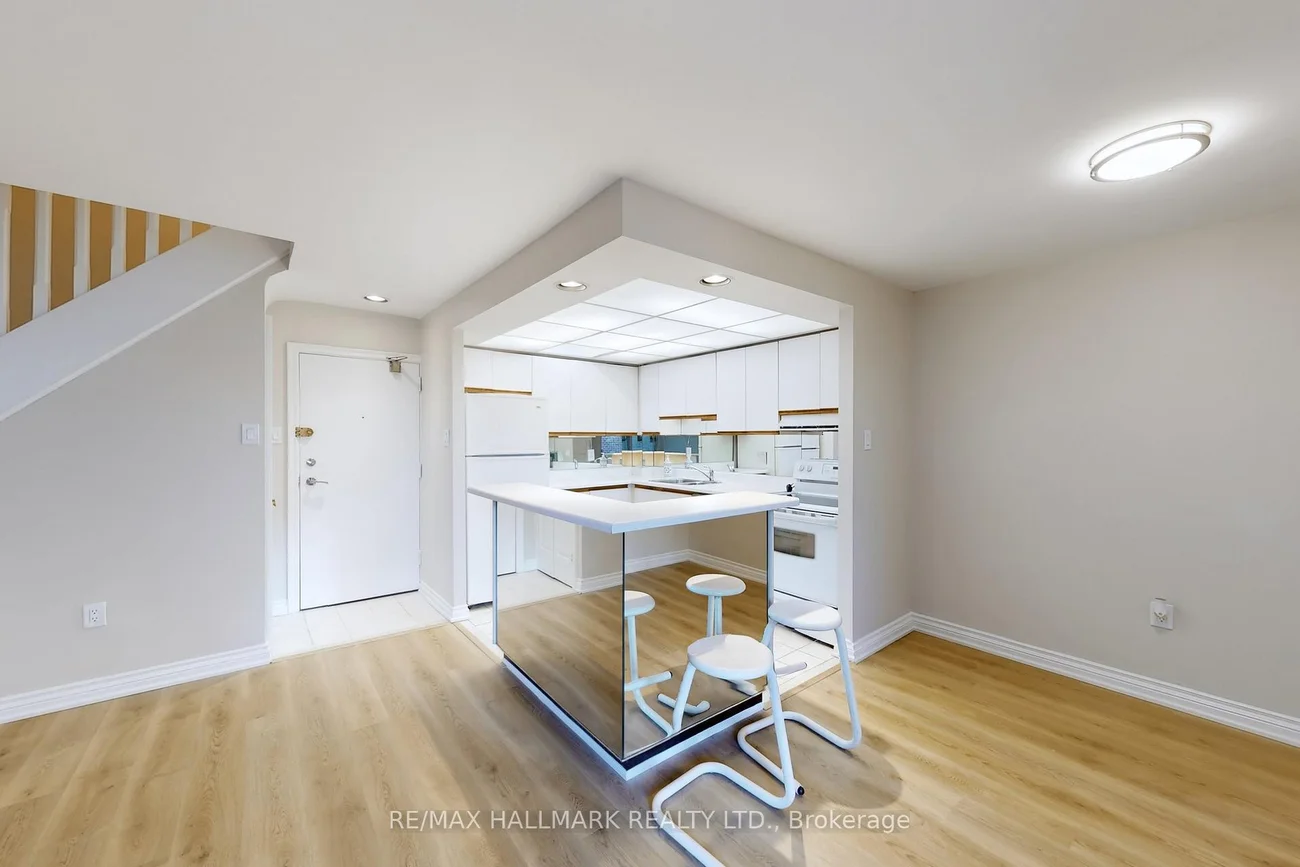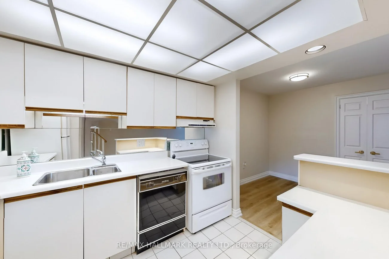 Location! Location! Location! Upgraded Two-Level Condo Apartment Offering Over 1000 Sqft & Two Private Balconies. Perfectly situated just steps from Yonge Street, this upgraded home combines functionality, comfort, and convenience with new flooring and fresh paint throughout. Step into the spacious main level featuring a bright kitchen with ample cabinetry, plenty of counter space, a centre island with breakfast bar, and existing appliances such as fridge, stove, and dishwasher. The open-concept living and dining area is ideal for entertaining, with a seamless walk-out to the main-level balcony. A versatile additional room on this floor offers flexibility as a home office, guest room, or bedroom. Upstairs, the primary suite boasts a large walk-in closet with custom organizers, a 4-piece ensuite with soaking tub and shower, and direct access to a private upper-level balcony. A dedicated laundry room with a full-sized washer and dryer completes the upper level. This unit includes underground parking conveniently located near the elevator. Maintenance fees cover most utilities including hydro, water, heat, cable TV, and internet, delivering excellent value. Residents have access to a range of building amenities including an indoor pool, sauna, recreation room, and visitor parking. Nestled in a prime Thornhill neighborhood, enjoy close proximity to Centrepoint Mall, top-rated schools, parks, public transit, and major highways, making commuting and daily living a breeze. Don't miss this fantastic opportunity to own a spacious condo in a highly sought-after area. Property is being sold as is/where is.