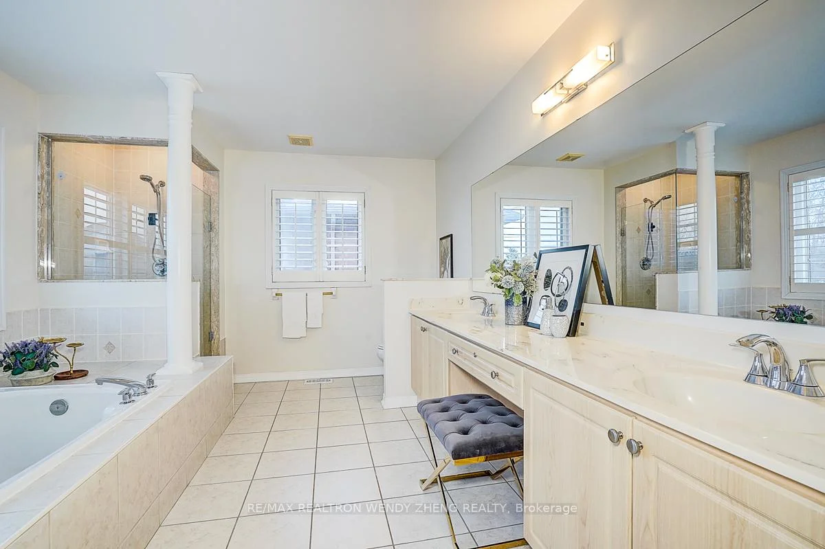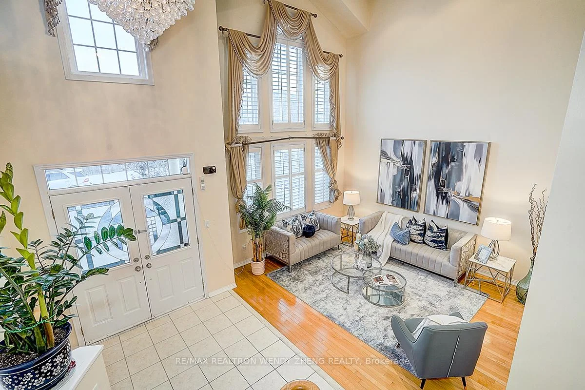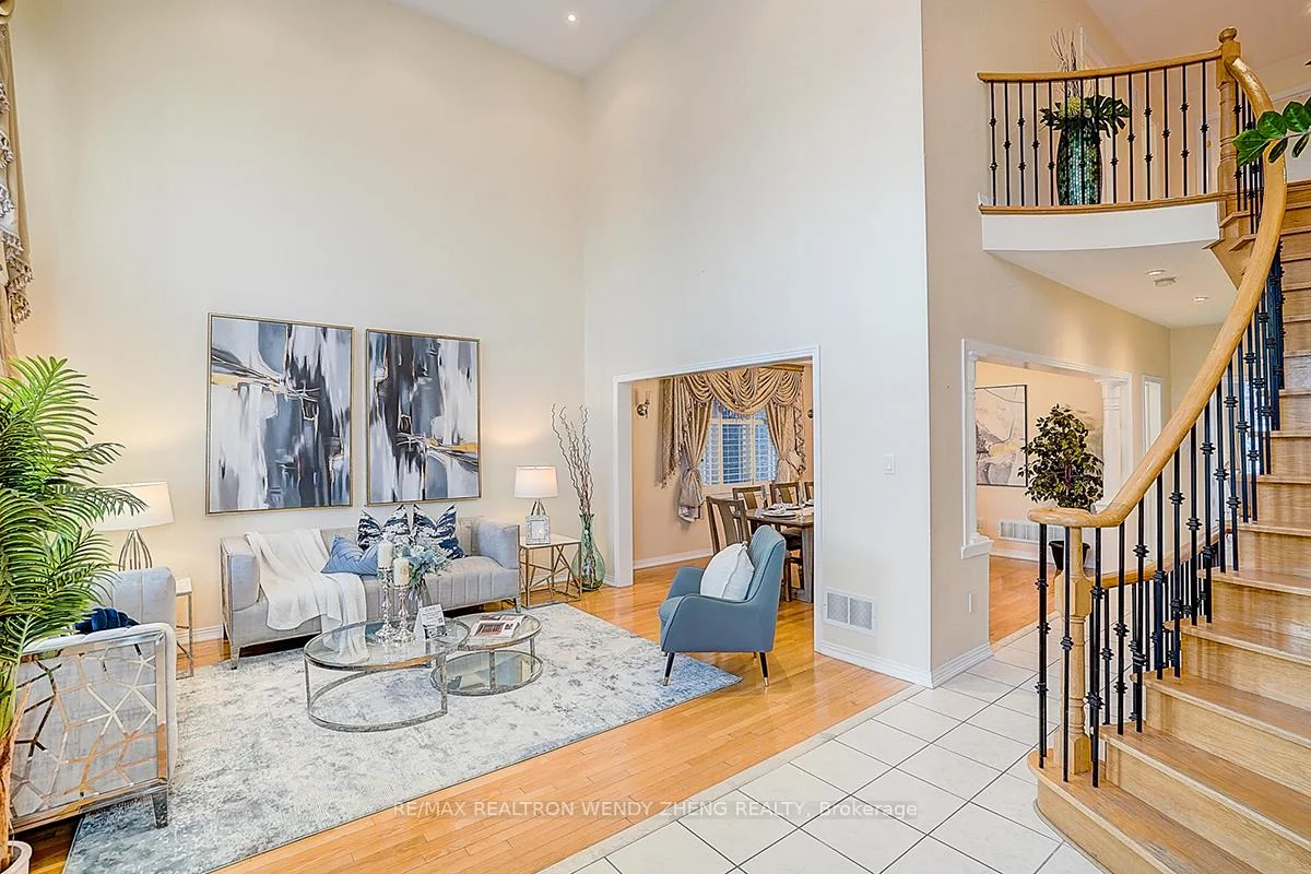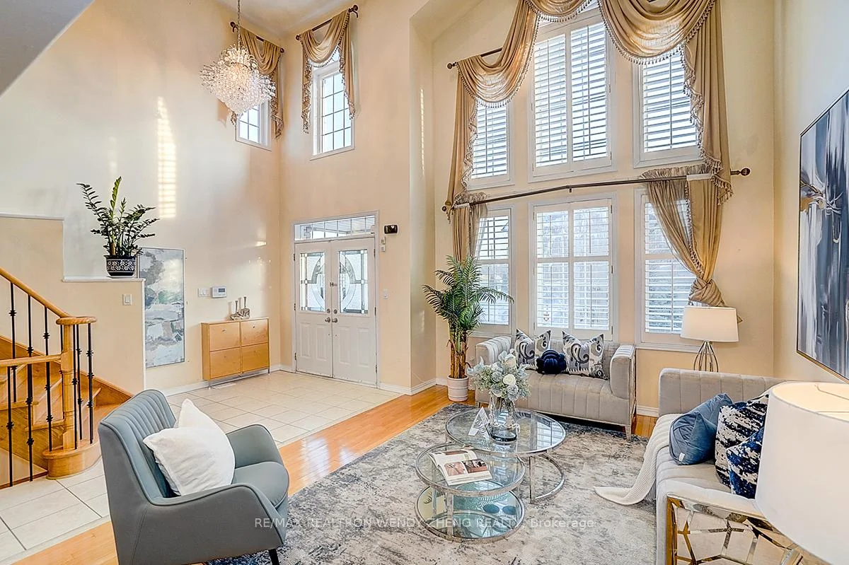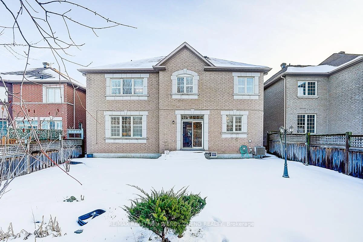 An exceptional residence located in the prestigious Cachet community of Markham, offering 4 spacious bedrooms plus a dedicated office on the main floor, solid stone and brick construction with approximately 3,613 sq ft above grade, and a professionally finished basement. The grand foyer and family room feature soaring 18-foot ceilings with abundant natural light, complemented by 9-foot ceilings on the main level, an oak staircase, and hardwood flooring throughout. Most windows newly replaced. Beautifully landscaped front and back yards provide a private backyard oasis with no neighbours behind. Situated in a highly sought-after school district including Lincoln Alexander PS (9.8/10, Markham Ranked #1 in 2024),), St. Augustine CHS (#1/747), and Bayview SS with IB program, with a Montessori private school directly across Woodbine Avenue. Conveniently located at the doorstep of Bus Route 24 with direct transit access to Fairview Mall, and minutes to Hwy 404, parks, King's Square shopping Centre, Plaza, Banks, restaurants TNT and all essential amenities-this is a rare offering and a must-see home.