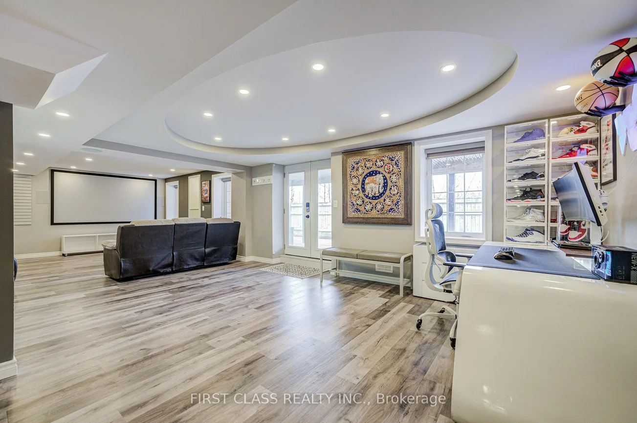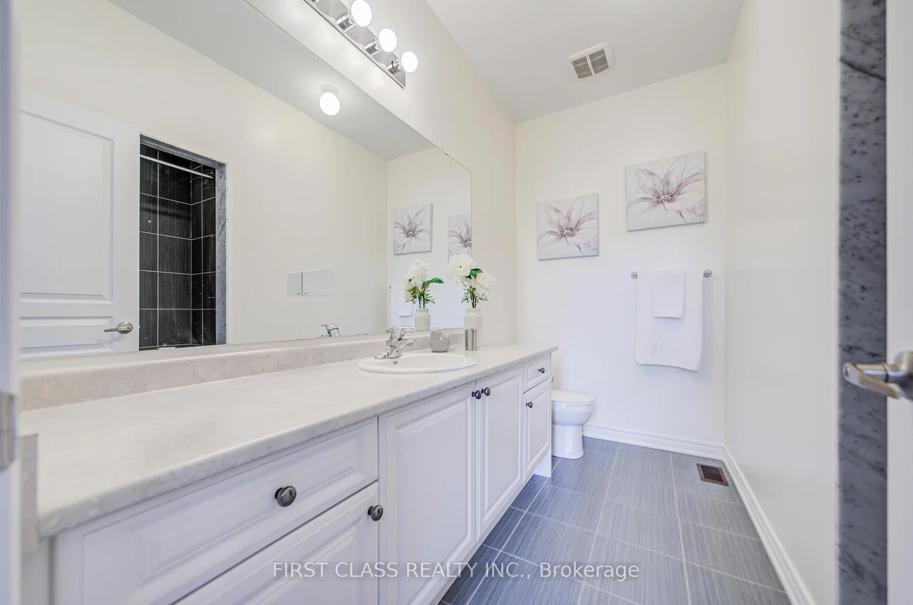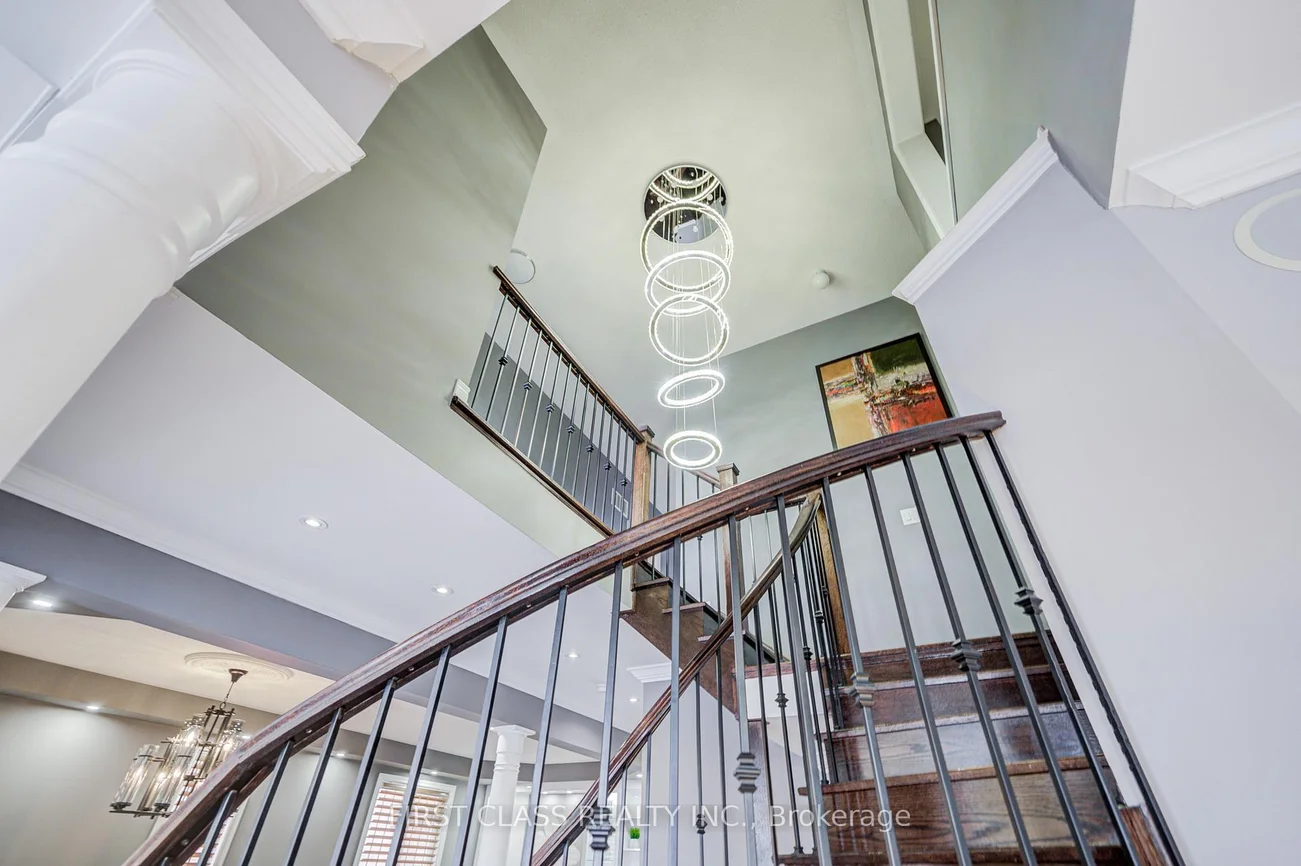 This immaculate well maintained cozy home with approx 3300 sq.ft located in the prestigious Berczy community at Kennedy/16th ave.. An unobstructed south-facing view ensures the home receives consistent, direct sunlight from morning to evening. Just minutes from top-ranked Beckett Farm Public School and Pierre Elliott Trudeau High School. An interlocking stone/glass staircase at the front walkway leads to a welcoming foyer that opens into an airy, open concept layout with soaring 9-foot ceilings on both the main and second levels. The main floor showcases a modern kitchen featuring a gas stove and upgraded finishes, including stainless steel appliances, granite countertops, and extended centre island providing ample space for both casual dining and entertaining. Upstairs, the home is thoughtfully designed for family comfort, featuring four spacious bedrooms with 2 ensuites and a study room. The fully finished basement extends the living space even further, featuring a separate room used as a bedroom with window. A practical, spacious storage room in basement allows for organized, dust-free storage. A full bathroom with sauna, a modern wet bar with quartz countertops with 2 b/I fridges , and a spacious recreation area walk out directly to the yard. Additional highlights included w/ low maintenance interlocking backyard with a big shed and all security camera, making this move-in-ready home perfect for families seeking comfort and access to top-ranked school.