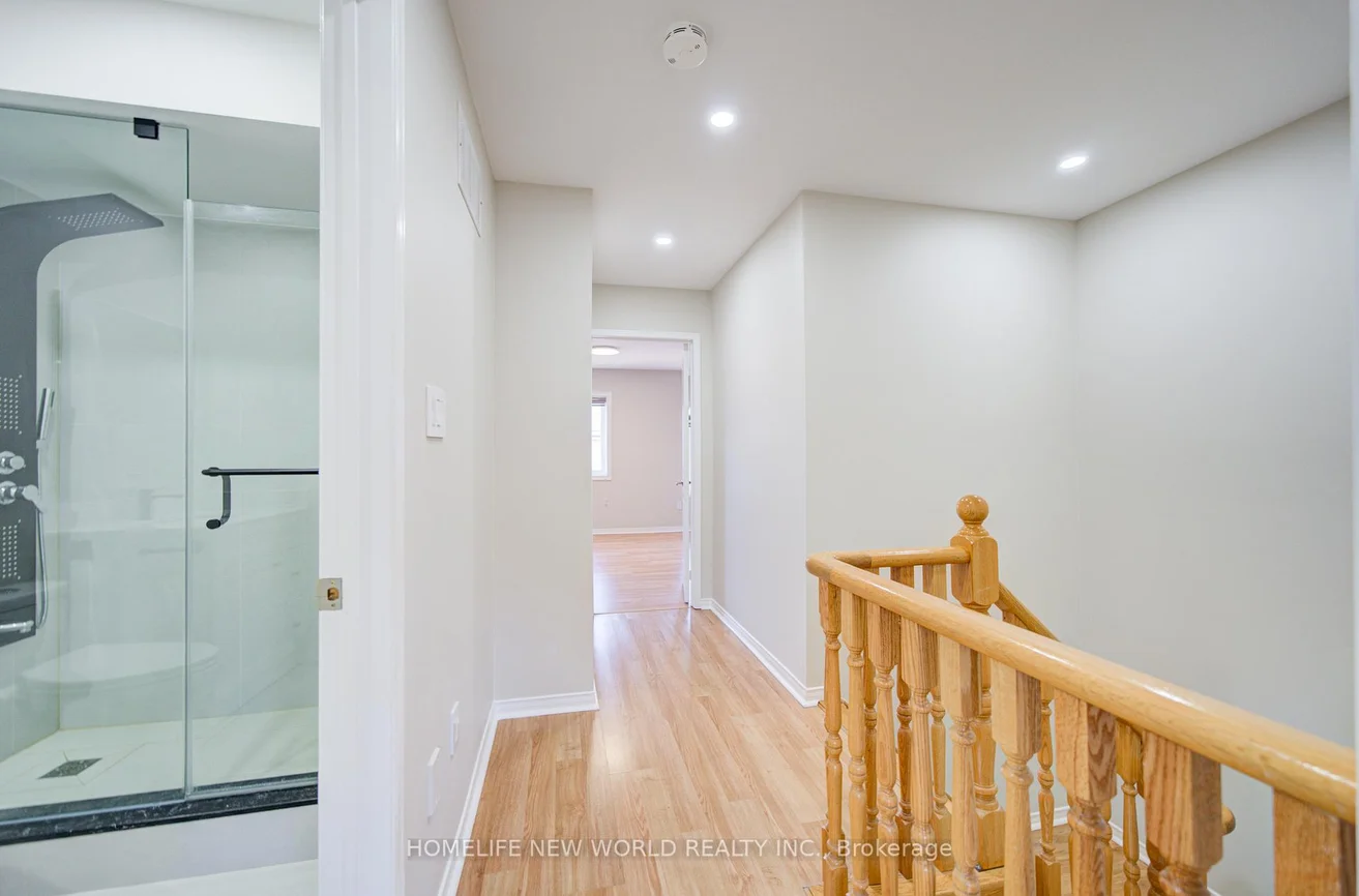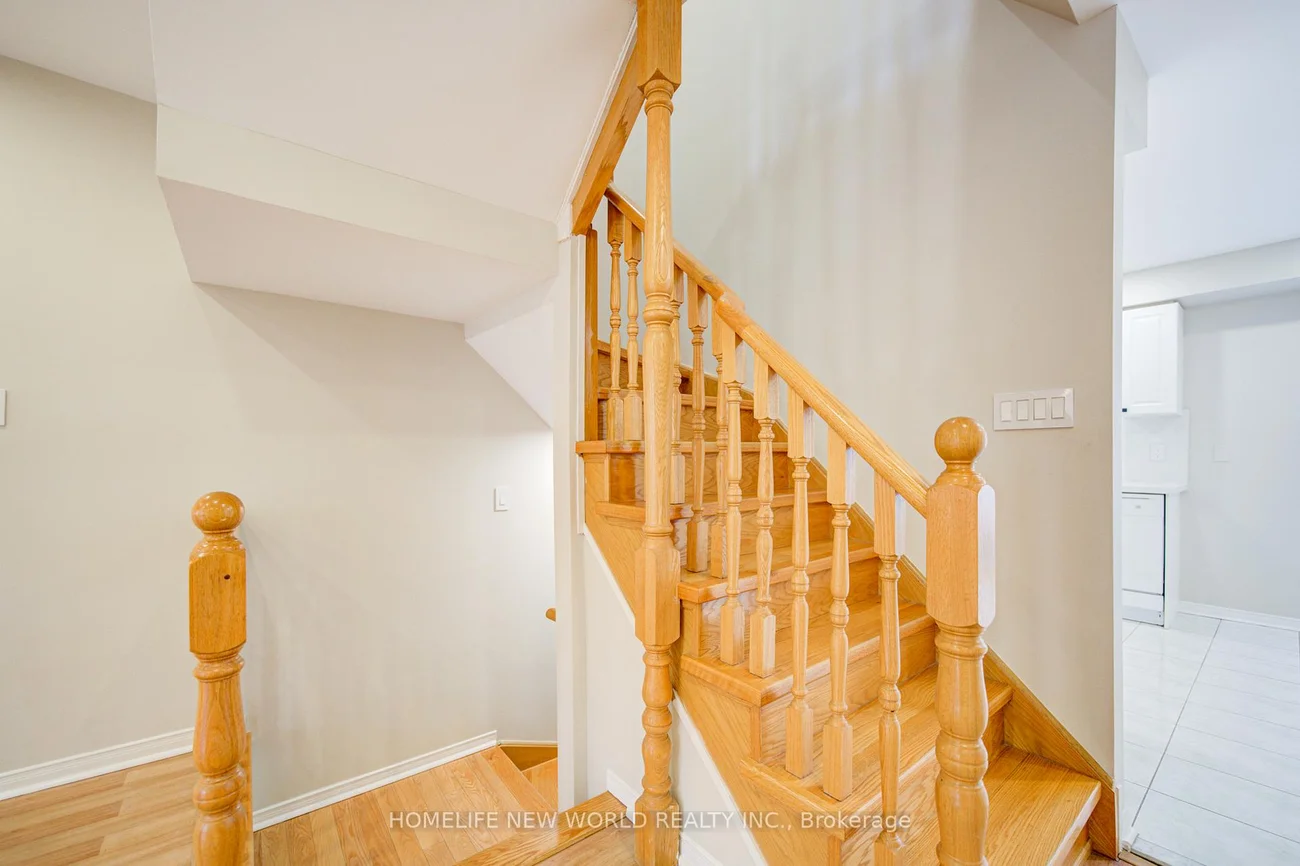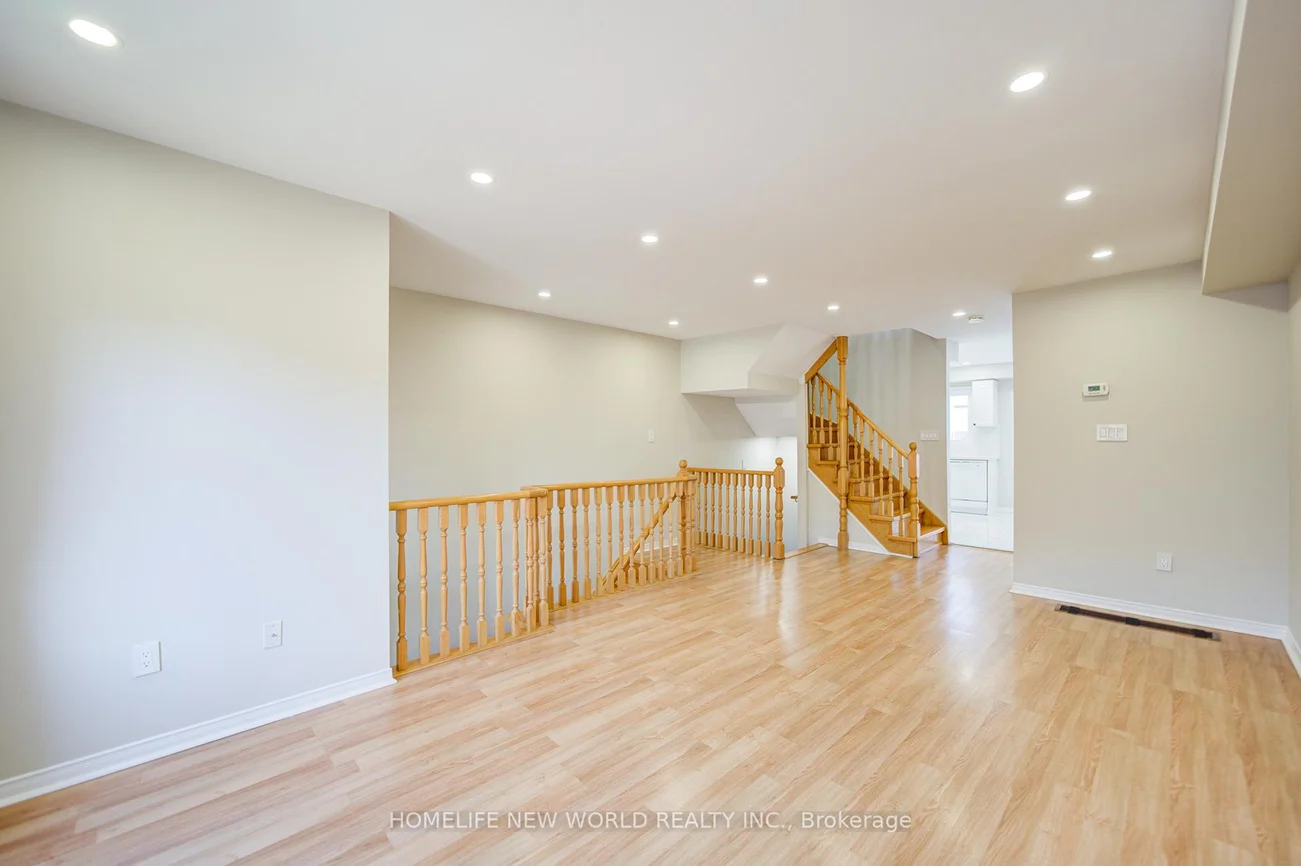 Immaculate and in top condition, this bright and spacious Freehold Townhouse shows like new! Featuring laminate flooring throughout, an elegant oak staircase, and a large kitchen with a walkout to the deck, this home offers both comfort and style. The open-concept main floor boasts soaring smooth ceilings, seamlessly extending to an outdoor terrace. Located in a prime spot within the complex, this home provides easy access to highways 404 and 407, local amenities, and a nearby shopping plaza. The property includes a 1.5-car garage plus a driveway that accommodates two additional vehicles, allowing parking for up to three cars. Situated in the desirable Galleria community, this home also features rear laneway access through the garage, refined finishes throughout, fully renovated bathrooms with a modern standing shower, a new garage door with remote control, smooth ceilings, and new pot lights. **Heat Pump, Furnace, and Windows (all 2024)**, plus a roof replaced in 2017.This property falls within the sought-after school zones of **Thornlea Secondary School** and **St. Robert Catholic High School**.