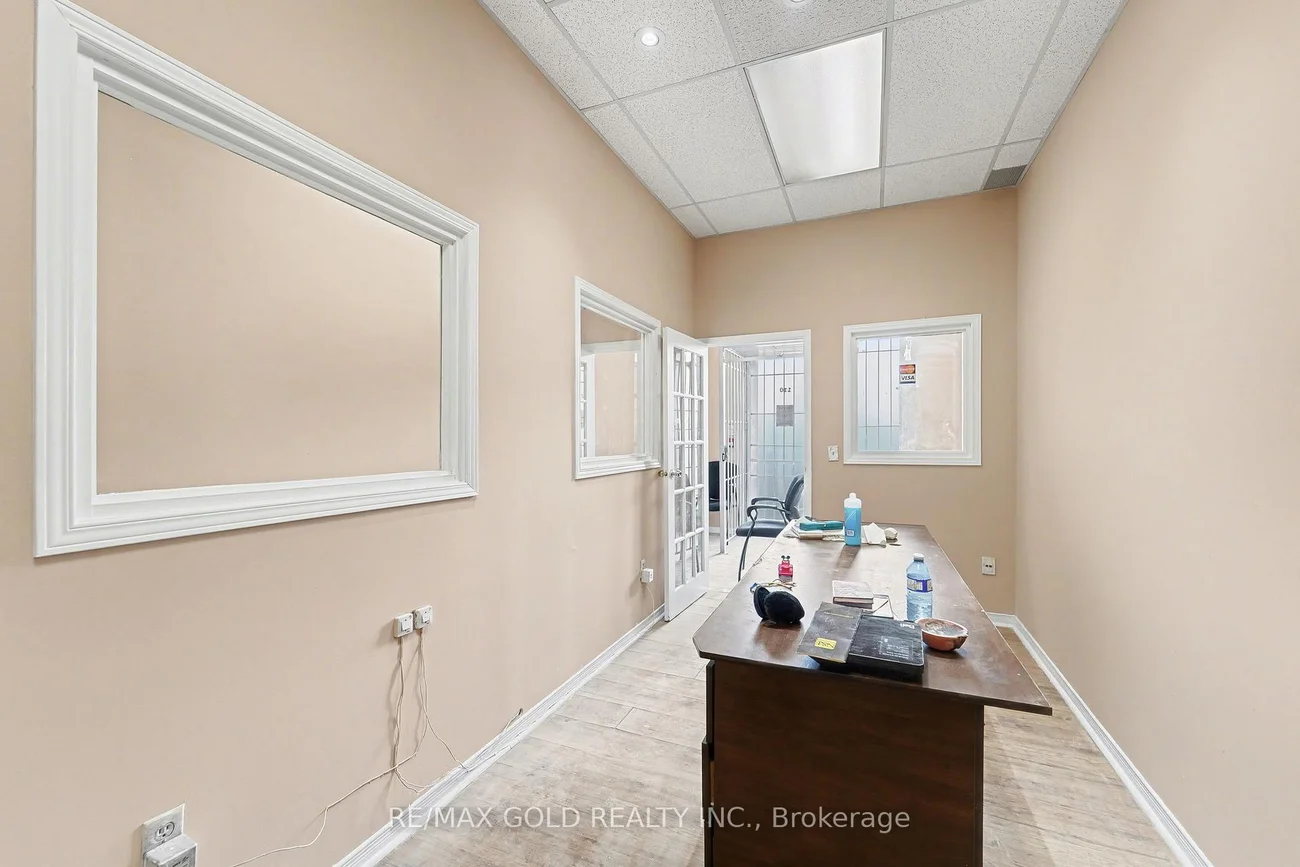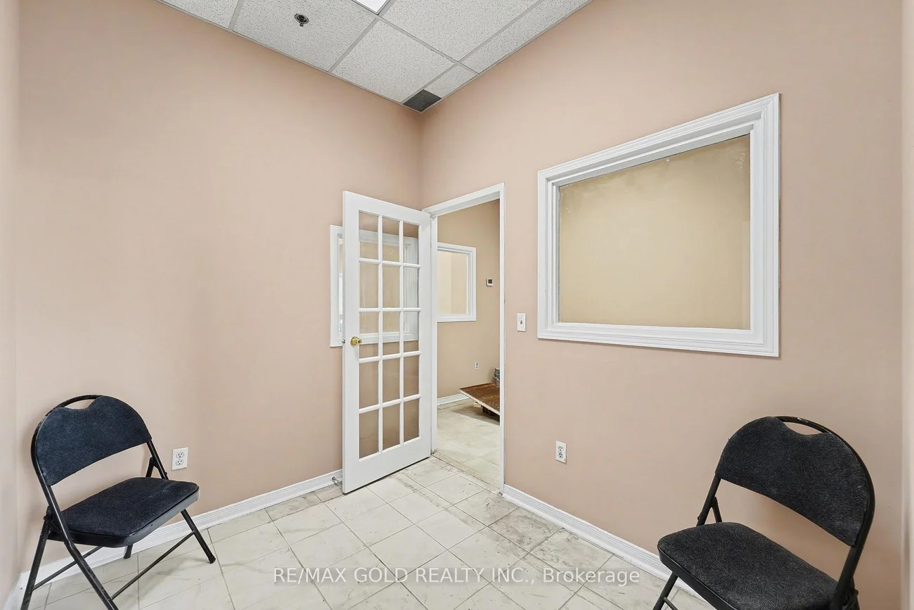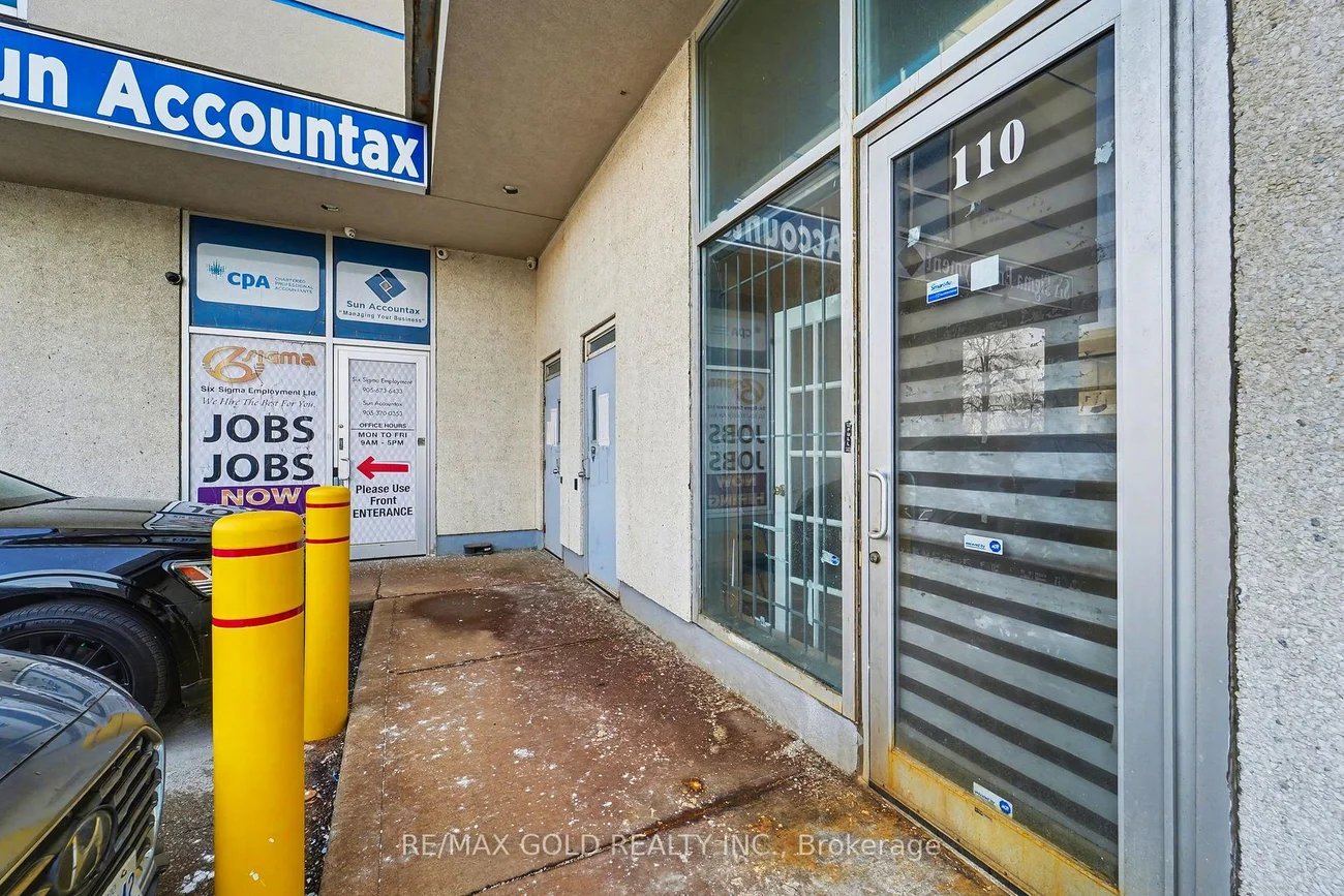 Rare find! Prime 900 sq. ft. retail/office space for lease at the northwest corner of Airport & Drew Rd in Mississauga, just minutes from Toronto Pearson Airport. Unit 110 is move-in ready with fresh paint, three spacious private offices, a reception area, kitchenette, washroom, front and rear access, and a newly installed single-door metal security cage-perfector jewelers or businesses needing enhanced security. This high-exposure, ground-floor unit is ideal for medical/health clinics, professional offices, educational services, wellness studios, or retail/administrative uses. Ample parking, strong plaza visibility, and easy highway and transit access make this a rare leasing opportunity not to be missed.