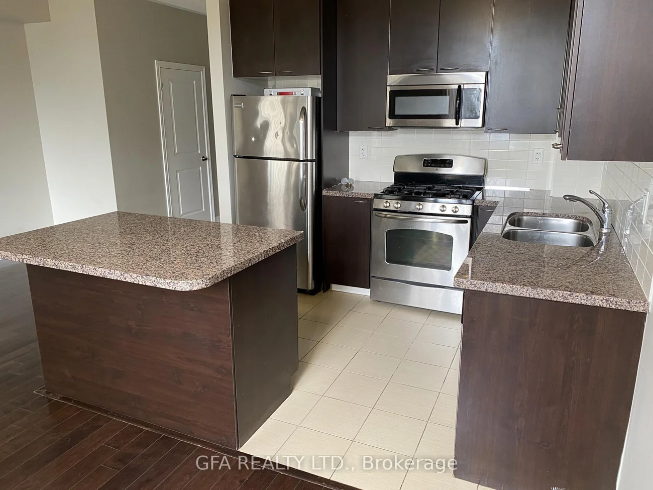 Beautiful brownstone-style townhome in the heart of Mississauga. This bright and spacious unit offers 9-foot ceilings on the main floor, approximately 1,635 square feet of interior living space, plus a private 65 sq. ft. patio. The kitchen features granite counters, a matching backsplash, and upgraded cabinetry. The primary bedroom includes its own balcony, and the main level is highlighted by a three-sided fireplace and a solid oak staircase. Comes with two underground parking spaces. Walking distance to Square One, transit, restaurants, parks, and everyday essentials.