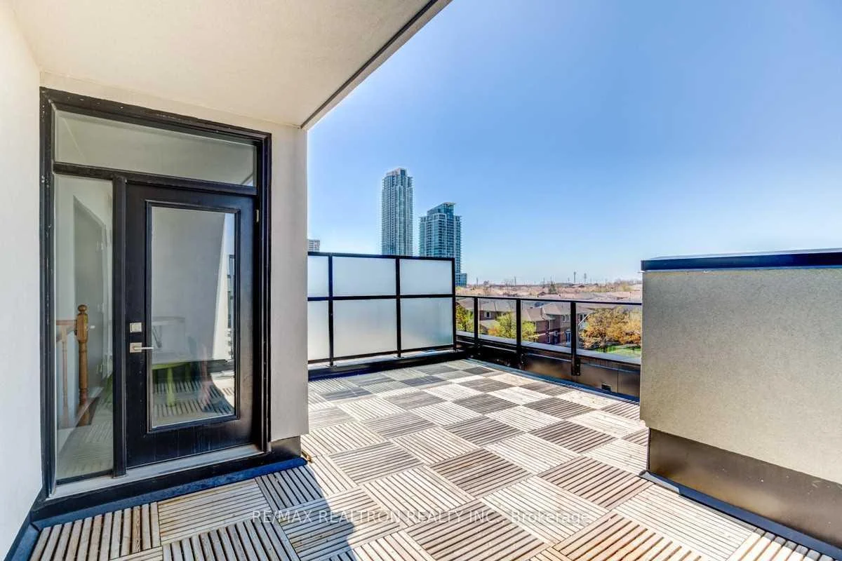 Executive, Modern & Spacious 3-Bedroom Townhouse in the Heart of Mississauga City Centre * This sought-after residence offers approximately 1,700 sq. ft. of beautifully designed interior space, complemented by two parking spaces and a huge private storage locker (100+ sq. ft.) * Ideally positioned with a west-facing exposure, the home overlooks a quiet residential area, providing both privacy and tranquility * Enjoy multiple private outdoor spaces, including a welcoming front terrace, a balcony off the primary bedroom, and an expansive rooftop terrace with unobstructed views of lush greenery and mature trees-perfect for relaxing or entertaining * The sun-filled open-concept main floor features a designer kitchen equipped with premium built-in KitchenAid appliances (including a gas cooktop), sleek quartz countertops and island, and a spacious living area enhanced by high ceilings and recessed lighting *** Maintained in mint condition, the home has been freshly painted in neutral tones and features hardwood flooring on the main level and new vinyl flooring in the bedrooms. Professionally cleaned and meticulously cared for, this residence is move-in ready for immediate occupancy *** Located just steps to public transit, parks, and everyday amenities, with quick access to shopping centres and major highways, this home offers exceptional convenience without compromising on comfort or quality *** A rare opportunity to enjoy executive townhouse living with premium finishes and exceptional outdoor space.