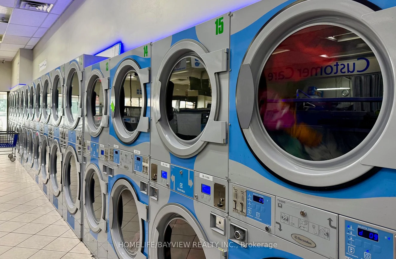 The best coin laundry in whole Mississauga. Rent about $ 9,277.00.00 including TMI & HST. Income find out . Gas $ 1600.00. Hydro $ 980.00. Water $ 4200.00 per month. $ 624, 000.00 per year gross. Lease 5 plus 5. Some VTB can be if buyer is strong.math says net is $ 385,000.00 per year.money begets money.. You have money get in to this business.
