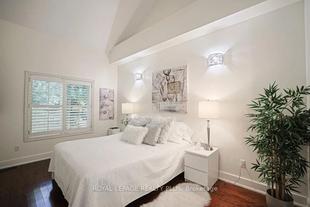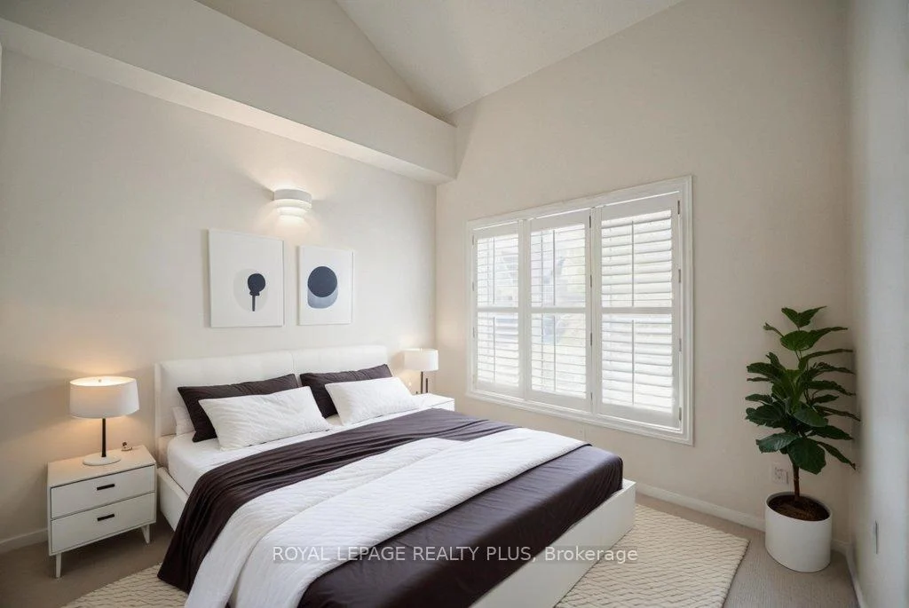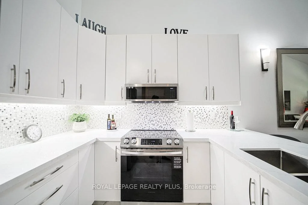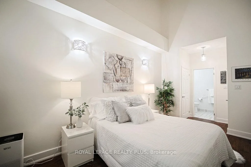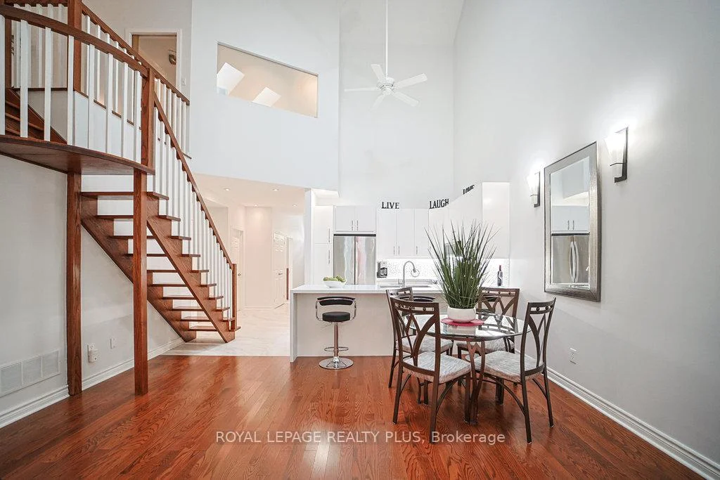MAIN FLOOR PRIMARY BEDROOM & ENSUITE - Renovated, Executive Townhome, rarely available Bungaloft with Main Floor Primary Bedroom & Ensuite. Nestled on a cull de sac in the private enclave of Turtle Creek, backing onto ravine. Just steps to Lake Ontario, nature trails & Jack Darling Park. This home backs onto mature combination of coniferous and evergreen trees, making for a most private & serene retreat. Inside the open concept layout features an impressive great room with soaring 23 foot vaulted ceilings, rich hardwood floors & a walk-out to a spacious deck overlooking the yard & mature trees. A beautiful renovated Kitchen boasts Carrara style quartz countertops with waterfall feature on the peninsula. Generous counter provides space for a breakfast bar or an awesome area for entertaining. Soft Close cabinets provide a choice of Pantry with slide out drawers, Pot Drawers, Tray Cupboards-Lazy Susan's, Room for everything! The PRIMARY BEDROOM, ON THE GROUND LEVEL, overlooks the natural greenery from the picture window, complete with renovated washroom with oversized shower, and sooo much closet space with built in cabinetry. The spacious 2nd bedroom also on the main floor, and with a vaulted ceiling, overlooks the garden & enjoys an oversize closet. The Loft boasts a relaxing sitting area overlooking the great room & includes a 3rd bedroom, complete with full washroom and walk-in closet. The lower level has a finished family room area with above grade window & corner fireplace. There is also a large unfinished area awaiting your imagination. There are LAUNDRY facilities on both MAIN FLOOR & lower level. New windows throughout, New patio door-everything is ready Just move in. Conveniently located in the vibrant community of Clarkson and Port Credit. Enjoy the festivals, many restaurants & shopping. Easy access to Public Transit & Go train. The perfect combination of nature and urban living.