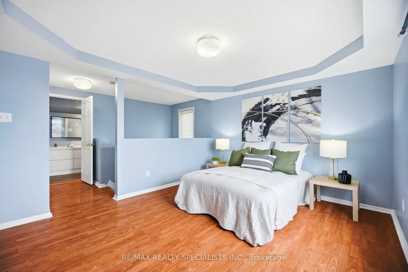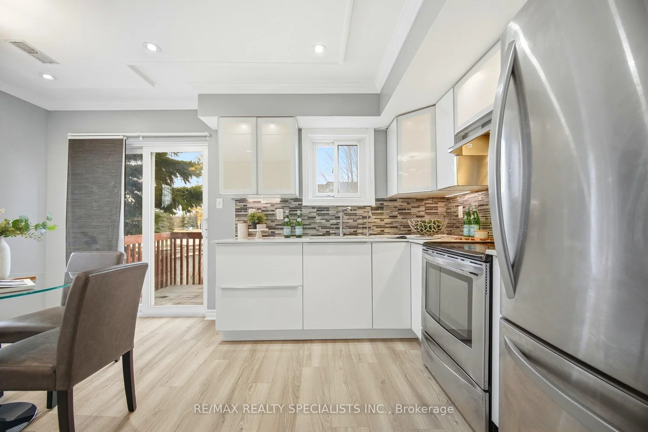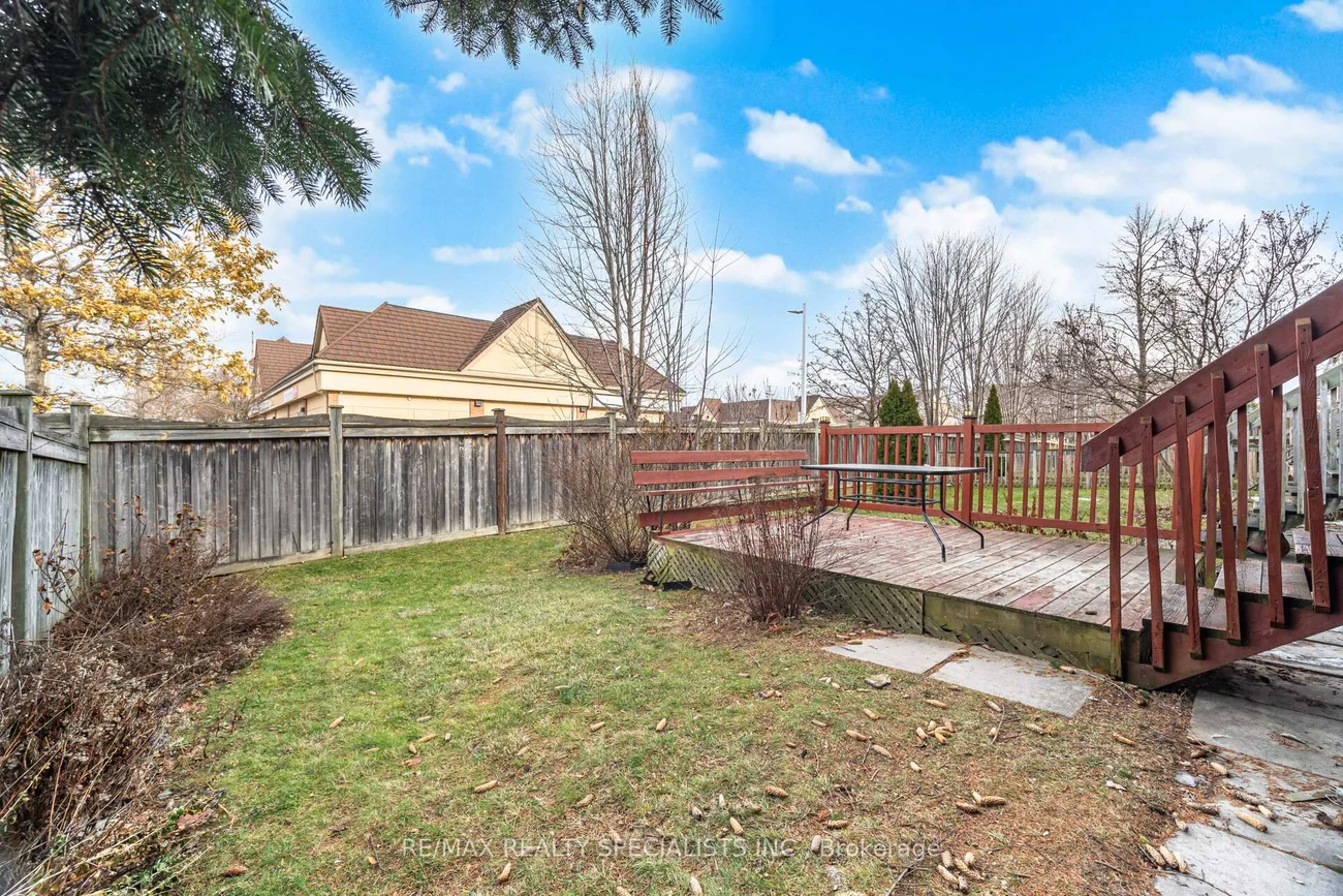 Sun-filled, end unit townhouse with the feel of a semi- detached, in a prime location! Bright, spacious, and full of natural light from large windows with open views. Updated kitchen with quartz countertops, stainless steel appliances, modern slab cabinetry with soft close hinges, crown moulding, and a modern square sink with a separate drinking water faucet. Walkout to sunny deck off the kitchen & dining area. Three large bedrooms and a large 4 piece main bathroom. Primary suite with exclusive private top floor and a 5 piece ensuite. Lower level recreational room/office plus laundry room. Well managed complex with low maintenance fees and plenty of visitor parking. Walk to schools including highly rated Rick Hansen Secondary School, Heartland Town Centre, and Square One. Close to Braeben Golf Course, parks, plazas, and Sheridan College. Easy access to transit, Highway 403, and Highway 401. Maintenance fee includes roof maintenance, lawn care, and snow removal from interior streets.