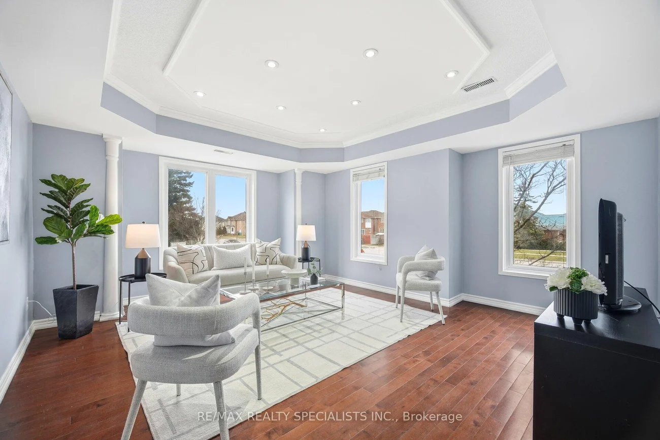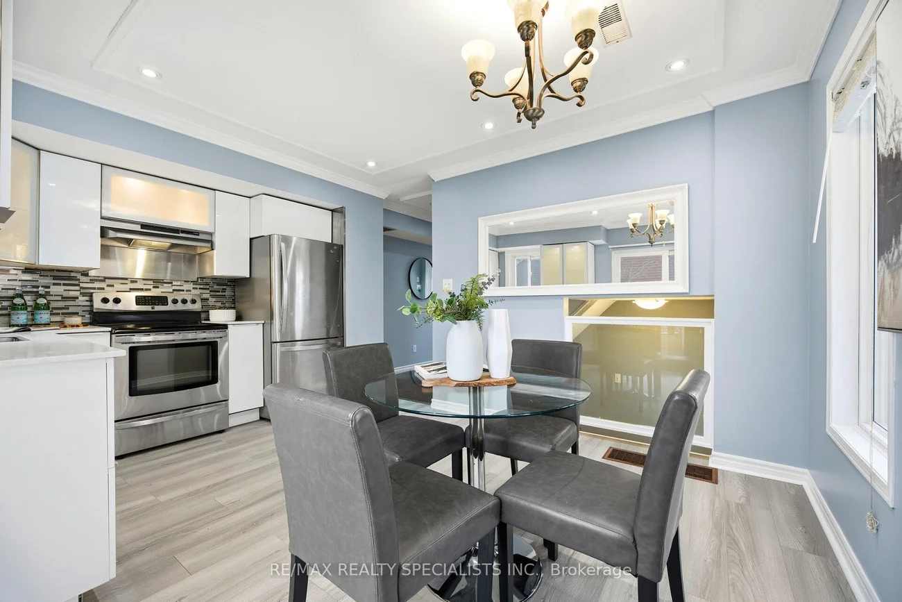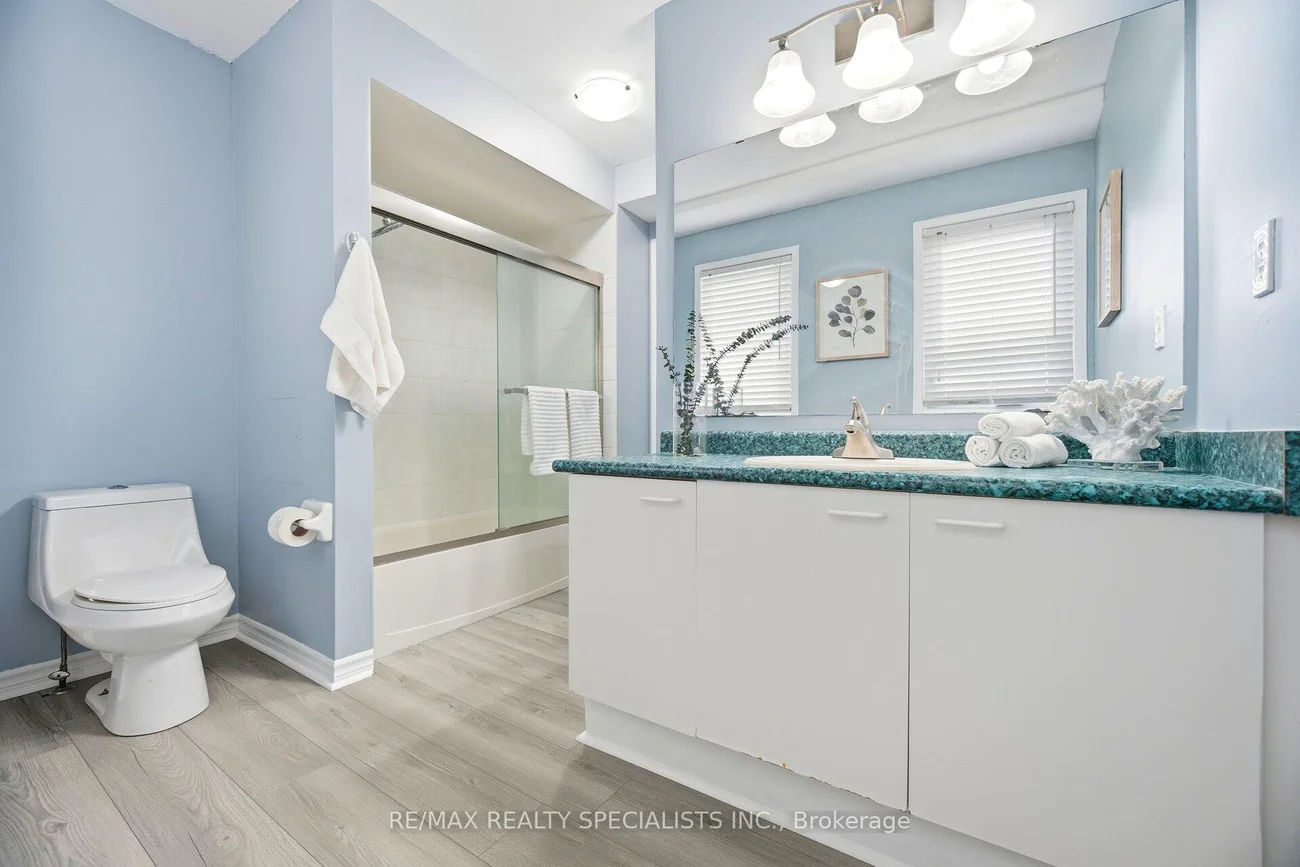 Sun-filled, end unit townhouse with the feel of a semi- detached, in a prime location! Bright, spacious, and full of natural light from large windows with open views. Updated kitchen with quartz countertops, stainless steel appliances, modern slab cabinetry with soft close hinges, crown moulding, and a modern square sink with a separate drinking water faucet. Walkout to sunny deck off the kitchen & dining area. Three large bedrooms and a large 4 piece main bathroom. Primary suite with exclusive private top floor and a 5 piece ensuite. Lower level recreational room/office plus laundry room. Well managed complex with low maintenance fees and plenty of visitor parking. Walk to schools including highly rated Rick Hansen Secondary School, Heartland Town Centre, and Square One. Close to Braeben Golf Course, parks, plazas, and Sheridan College. Easy access to transit, Highway 403, and Highway 401. Maintenance fee includes roof maintenance, lawn care, and snow removal from interior streets.