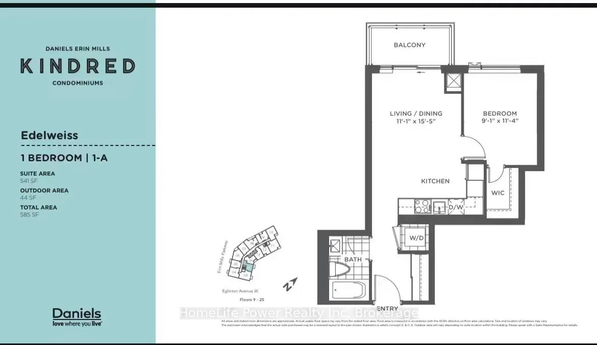 Brand-new one-bedroom unit (#1902) at The Kindred Condo, located in the heart of Erin Mills, Mississauga. This bright and contemporary suite features an open-concept living, dining, and kitchen layout, a spacious bedroom with a walk-in closet, and a well-appointed full bathroom with a shower tub. Upgrades include premium laminate flooring throughout, quartz countertops in both the kitchen and bathroom, stainless steel kitchen appliances, a built-in dishwasher, and convenient in-suite laundry.The sun-filled interior offers 9-foot ceilings and floor-to-ceiling sliding doors leading to a private balcony with city views, allowing for an abundance of natural light. Includes one underground parking space (#323 on P3) and one locker (#85, Locker Room #17 on P1). Residents enjoy exceptional building amenities, including 24-hour concierge service, a fitness centre and yoga studio, co-working space and boardroom, party room, theatre room, lush community gardens, and visitor parking. Ideally situated within walking distance to Erin Mills Town Centre and Credit Valley Hospital, and close to the University of Toronto Mississauga, Sheridan College, parks, grocery stores, and top-rated schools. Convenient access to Highways 403, 407, and QEW, public transit, and Streetsville and Clarkson GO Stations ensures effortless commuting and access to all amenities.