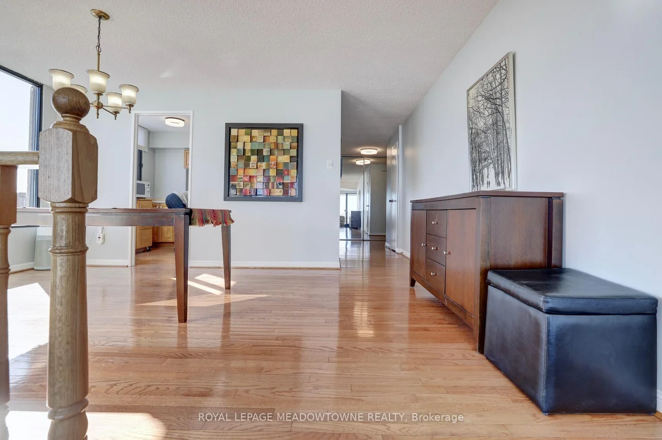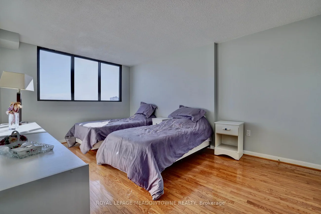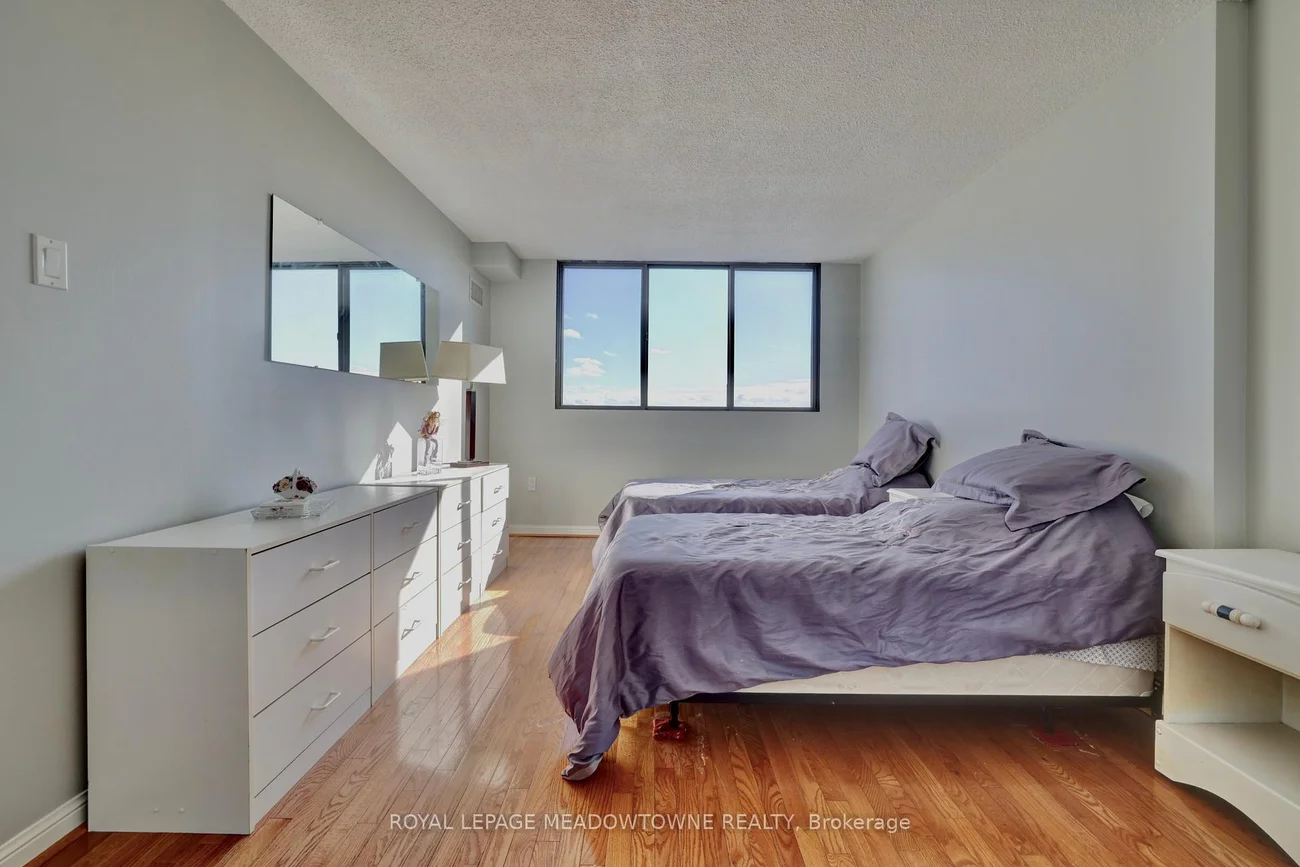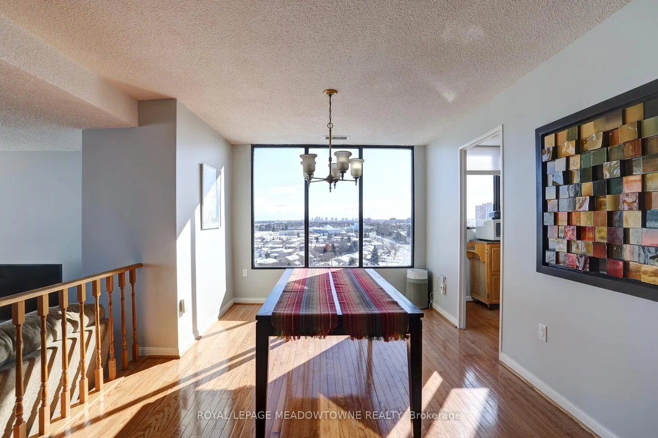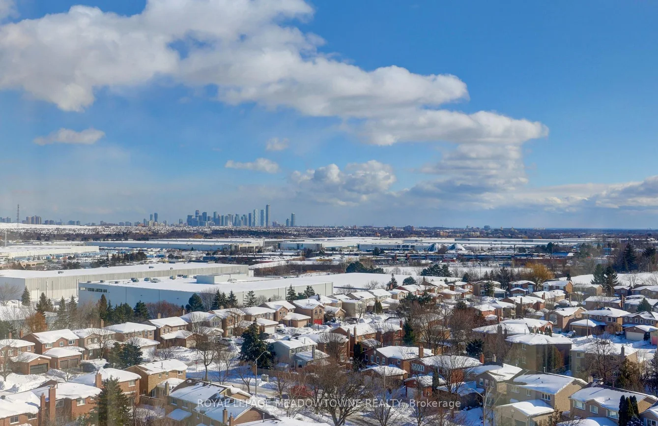 Experience elevated living with breathtaking, unobstructed views of Mississauga's skyline and beyond. This spacious three-bedroom condominium is situated on the top floor of one of Mississauga's most desirable residences. The home features elegant hardwood flooring throughout, including the kitchen, and a generous main living area highlighted by a sunken living room. Enjoy the convenience of brand new stainless steel appliances-including refrigerator, stove, and dishwasher. The primary bedroom offers a ensuite bathroom and a walk-in closet, complemented by a well-appointed family bathroom on the main floor. Three dedicated parking spaces are included for your comfort. Nestled within the Parkview building, residents are surrounded by lush parkland, scenic walking trails, and the tranquil beauty of Lake Aquitaine. The location provides easy walking access to shops, schools, Meadowvale Theatre, Meadowvale Recreation Centre, and more-delivering everything needed for modern, convenient living.
