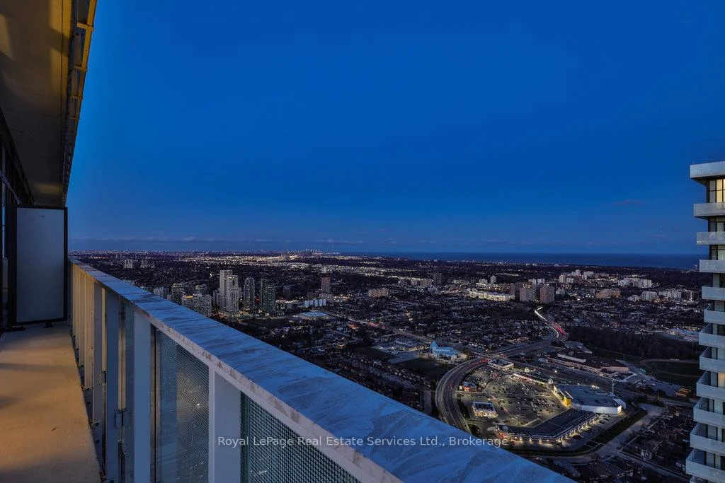 Luxurious 2-Storey Penthouse in the Heart of Mississauga. Step into this elegant 2-storey corner penthouse unit featuring 2+1 bedrooms, 2.5 baths + 2 parking spaces designed for elevated urban living. The bright & spacious living/dining area is seamlessly connected to an open-concept kitchen, perfect for entertaining. Floor-to-ceiling windows flood the space with natural light and a walkout leads to one of two expansive balconies with stunning views of Lake Ontario and the city skyline. Enjoy a total of 400 sq ft of private outdoor space across 2 wraparound balconies, one on each level. The main floor also includes a versatile office/den with expansive windows and inspiring views, ideal for remote work or a quiet reading space and a powder room. Upstairs, the primary bedroom features a 4-pc ensuite, walk-in closet & balcony access. The 2nd bedroom also offers balcony access and expansive windows, and 3-pc bathroom. An upper-level laundry area adds functionality & ease. The home is finished with 9' smooth ceilings in principal rooms & wide plank high-performance laminate wood flooring, combining comfort, style and function. Residents enjoy world-class amenities including a 24-hr concierge, hotel-style lobby, state-of-the-art fitness center, outdoor pool with shallow deck, party rooms, sports bar, cozy lounge areas with fireplaces, indoor/outdoor children's playgrounds & splash pad, saunas, seasonal outdoor skating rink, rooftop terrace with BBQs & dining area and a multi-purpose games room with private chefs kitchen & dining space. Extras include 2 parking spaces located on the P1 level and 1 storage locker. Parking & amenities are included in the maintenance fee. This residence is just steps from Square One Shopping Centre, fine dining, entertainment, public transit, Sheridan College & University of Toronto Mississauga campus, with easy access to major highways. Rare opportunity to own a true luxury penthouse in one of Mississauga's most sought-after communities.