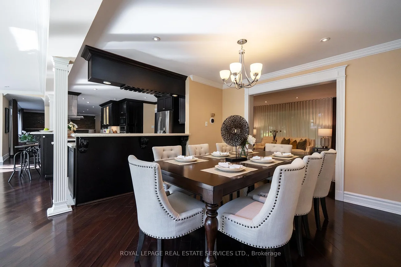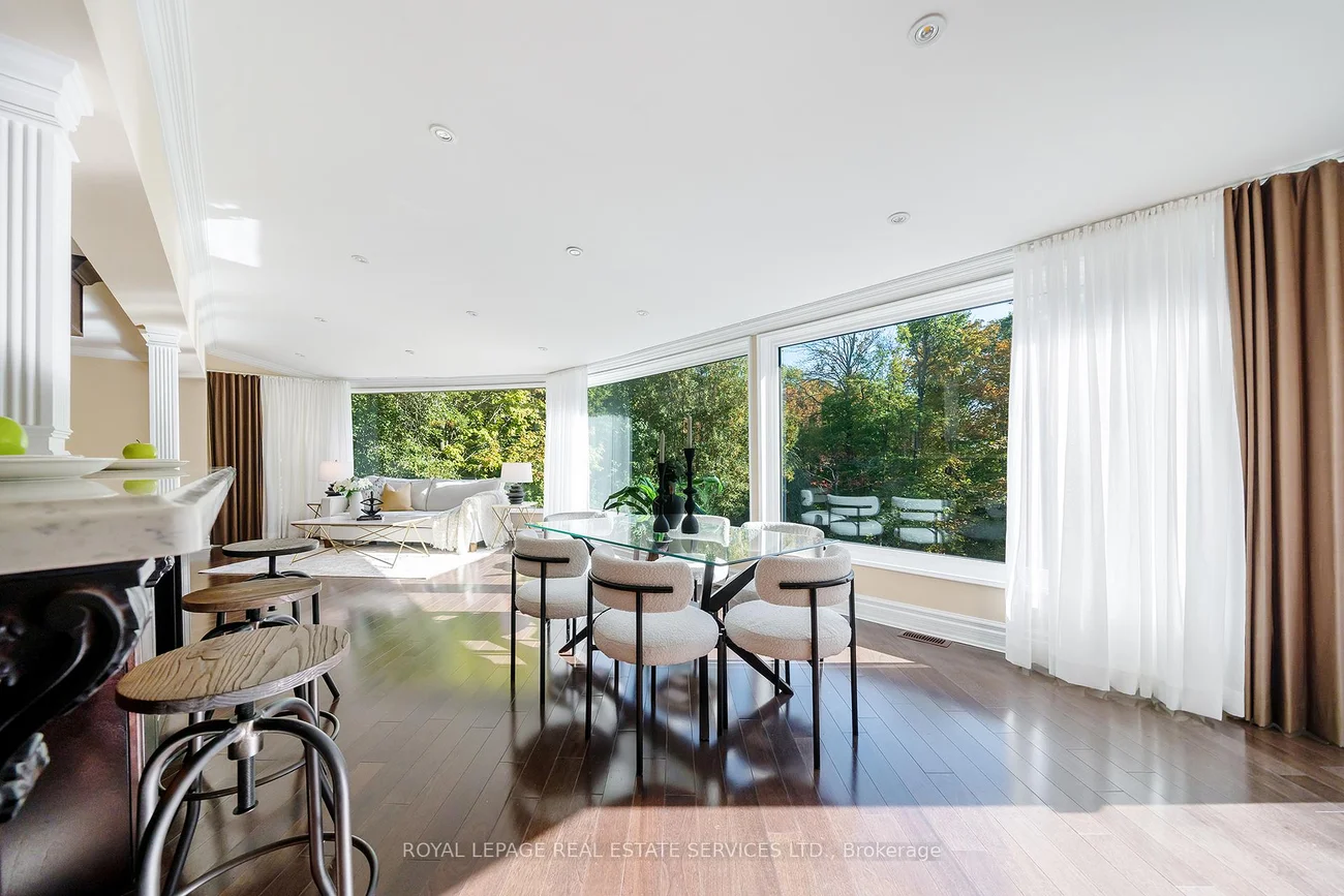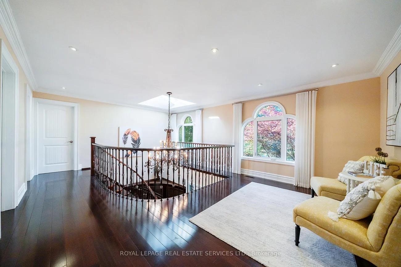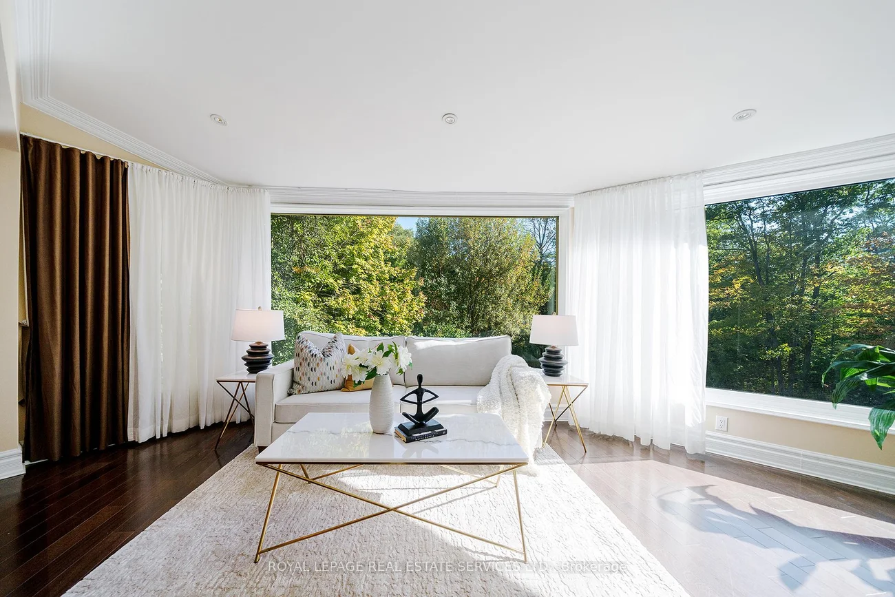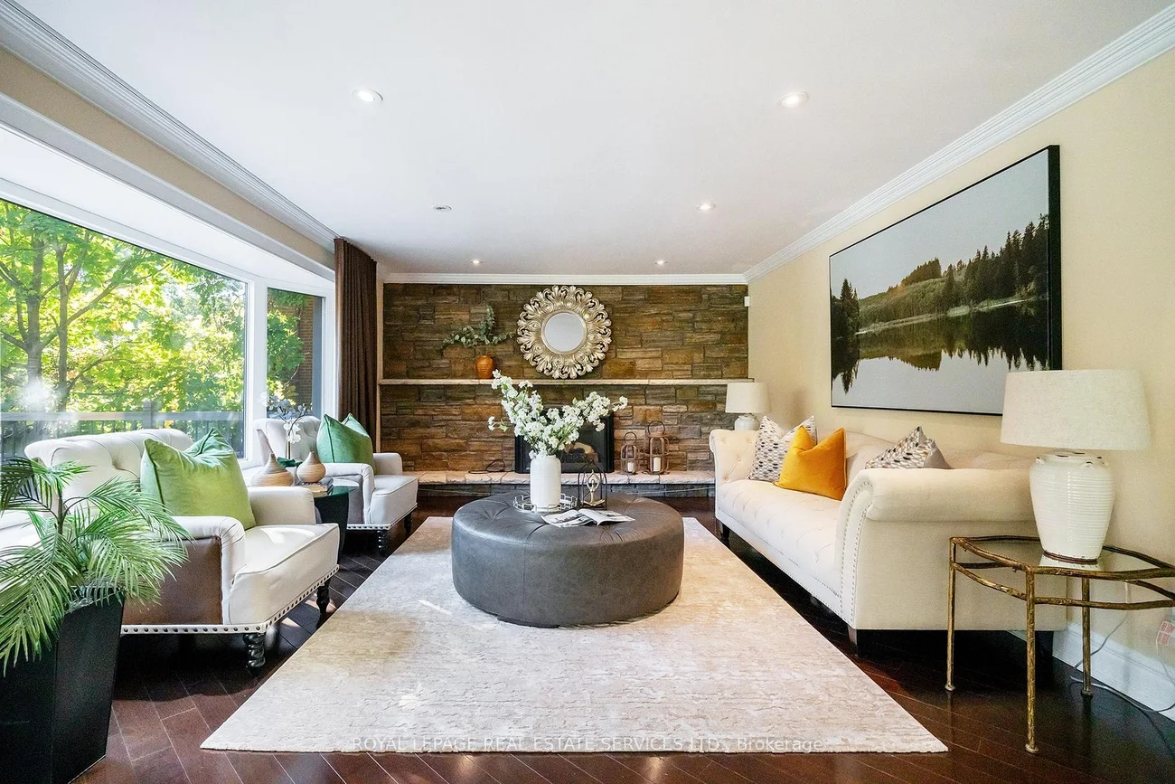 Grandly renovated 4-bedroom detached home with walkout basement on a rare 75' x 229' ravine lot in Mississauga's prestigious Credit Woodlands, featuring a saltwater pool, pond, and gazebo backing directly onto the Credit River. This luxury family home is within walking distance to 222-acre Erindale Park and the scenic Culham Trail, minutes from Mississauga Golf and Country Club, and offers quick access to major highways and GO Transit for easy commuting to Toronto and Hamilton. A mature, tree-lined street leads to a deep double driveway accommodating 8 cars plus a 2-car garage. An interlocking stone walkway and covered front veranda overlook perennial gardens with sprinkler system. The backyard is a private oasis with a massive deck, covered terrace, terraced gardens, custom saltwater pool with waterfall, serene pond with sheer descent waterfall, private gazebo, and expansive green space framed by ravine views. Recent upgrades include freshly painted interior, deck and gazebo, new furnace, air conditioner, pool heater and cover, some updated main floor windows and new backyard fencing (2025), plus a newer roof. Inside, hardwood flooring, crown mouldings, pot lighting, upgraded trims, two fireplaces, and three walkouts enhance sophistication. The skylit oak staircase opens to elegant living and dining rooms, a family room with fireplace, and a chef's kitchen with custom cabinetry, stone counters, stainless steel appliances, large island, and oversized breakfast room with walkout to deck. Upstairs, a sitting room, 2 bathrooms, and 4 spacious bedrooms are available, including a refined primary suite with a spa-like 5-piece ensuite featuring a claw-foot tub and a glass shower. The finished walkout lower level includes a recreation room with fireplace, coffered ceiling and built-ins, media/entertainment area, modern 3-piece bath, and 2 walkouts to the terrace overlooking the Credit River ravine.