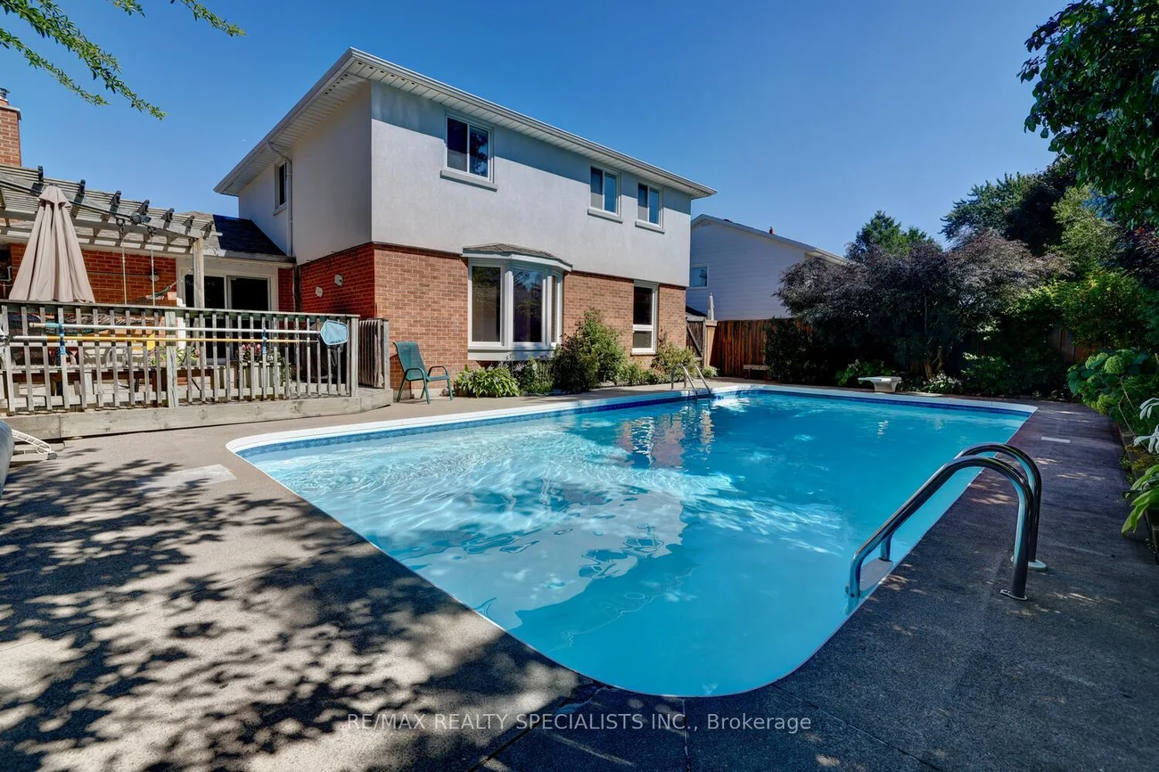 Fantastic 4 bedroom home approximately 2000 square feet located in the family friendly neighbourhood of Sheridan Homelands. Spacious Living/Dining room area with hardwood floors, crown moulding, and overlooking an inground pool. Family size kitchen with laminate floors, ceramic backsplash, and breakfast area. Main floor Family Room with hardwood floors, floor to ceiling wood burning fireplace, built-in cabinet, and walk-out to deck. Updated 2 piece powder room and a main 4 piece bathroom. Four upper level bedrooms with hardwood floors throughout. Primary bedroom retreat with an updated 3 piece en-suite and large double closet. Finished basement with recreation area featuring home theatre with surround sound, den/sitting area with laminate floors, lots of storage space, work bench, and large insulated crawl space. Backyard oasis with inground pool, lush landscaped gardens, large deck with pergola, hammock, and kid's swing. Great curb appeal nestled on a 55 by 114 foot treed lot, upgraded stucco and stone exterior. Roof 10 years approx., sand pool filter (2024), and pool heater/pump (2020 approx.) Premium location close to schools, parks, trails, shopping, transit, highways, Clarkson Go Station, South Common Recreation Centre, tennis/pickleball, sports fields, and University of Toronto (UTM)