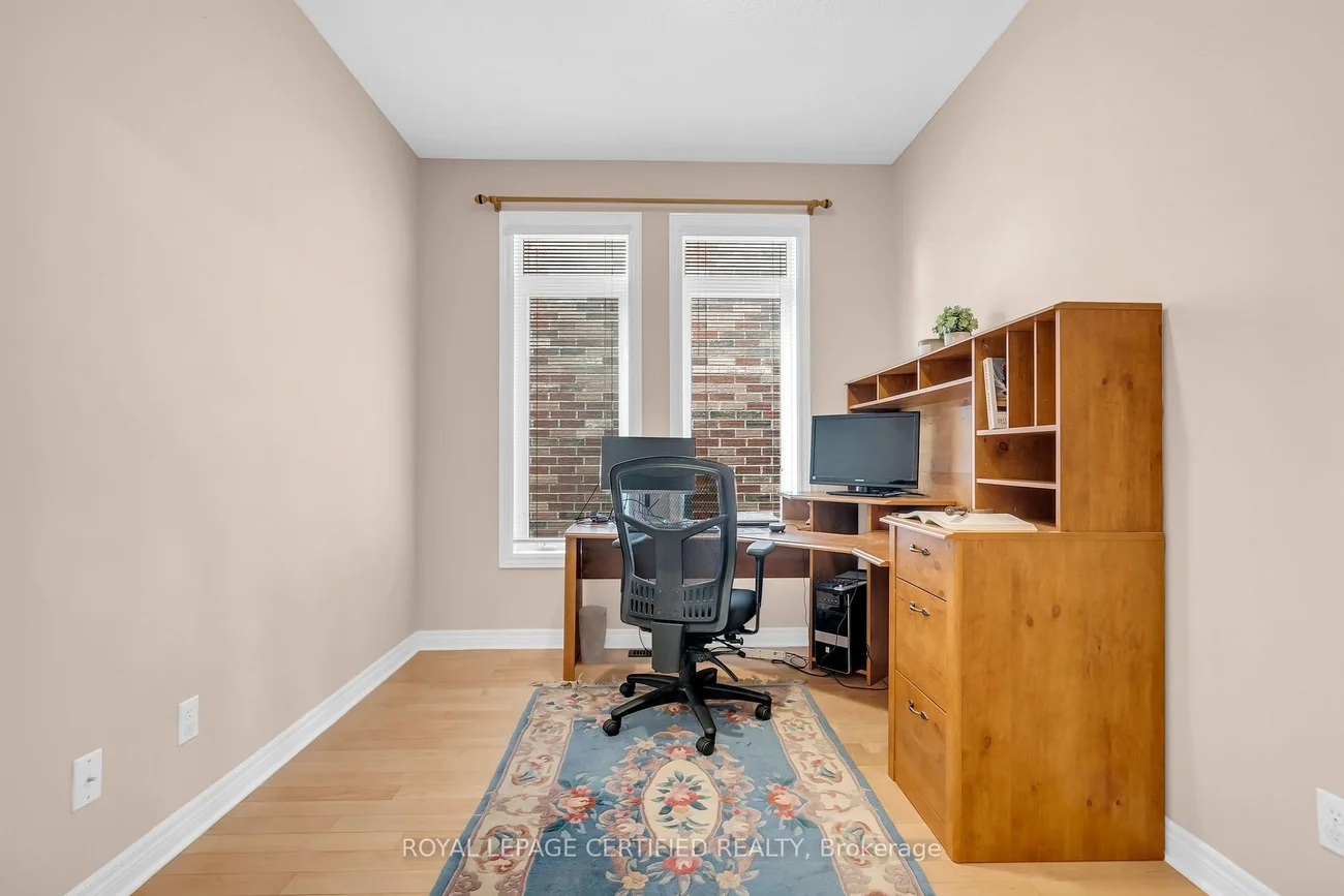 Discover a rare executive residence on one of Churchill Meadows' most prestigious crescents, backing directly onto the serene Marco Muzzo Park. This beautifully maintained 4 bedroom home offers over 2,850 sq.ft of bright, open concept living, enhanced by a thoughtfully opened main floor layout, including two spacious family rooms on the main and upper levels, plus a dedicated main floor office ideal for modern work from home living.The upgraded kitchen features granite countertops and newer appliances, while pot lights and refined finishes, including ceramic flooring and upgraded washrooms, add to the home's overall appeal. From the main floor family room, enjoy unobstructed views of the park, creating a private, nature filled retreat right at home.Set on an extra deep premium lot with a spacious backyard, the home provides exceptional privacy, while the four car, no sidewalk driveway ensures ample parking for family and guests. Designed for both lifestyle and functionality, this home combines generous living spaces, a sophisticated layout, and a seamless connection to nature, all within walking distance of top schools, trails, and Ridgeway Plaza.A truly exceptional opportunity to enjoy luxury, location, and lifestyle in one of Mississauga's most coveted neighborhoods. Water tank, furnace, and heat pump replaced two years ago.