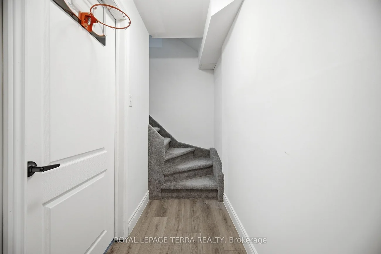 Welcome to this stunning, fully upgraded freehold home! Nestled in a quiet, family-friendly neighbourhood, this beautifully maintained 3+1 bedroom, 4-bathroom property is perfect for growing families or first-time buyers seeking space, comfort, and a touch of nature. Situated on a premium ravine lot with no neighbours behind, enjoy ultimate privacy and serene views. Step out onto your backyard deck and relax to the peaceful sounds of nature and nearby walking trails. The bright and spacious main floor offers a stylish layout featuring pot lights, custom blinds, a large living and dining area, and an extended chef's kitchen-perfect for everyday living and entertaining. Huge family room on second floors for entertaining. Upstairs, you'll find three generously sized bedrooms and two full bathrooms, including a private primary retreat with its own ensuite. The fully finished basement adds incredible value with an in-law suite complete with a large great room, one bedroom, and a full bathroom-ideal for extended family, guests, or potential future rental for paying guest. newer washer and dryer for laundry. This home also offers a large private garage and parking for up to 5 vehicles. Conveniently located just minutes from Highways 403, 407, and 401, and within a 10-minute drive to three(3) GO Stations, making commuting effortless. Recent upgrades include new windows (2023), blinds (2023), garage door (2023), all interior doors (2023), renovated upstairs bathroom (2023), A/C (2023), furnace (2024), new carpet in all bedrooms and family room (2024), fully finished basement (2024), and laminate flooring on the main floor (2021). A perfect blend of nature, comfort, and commuter convenience-this turnkey home is a must-see!