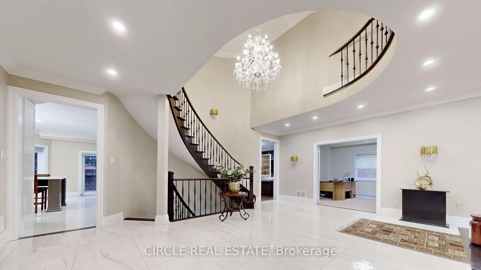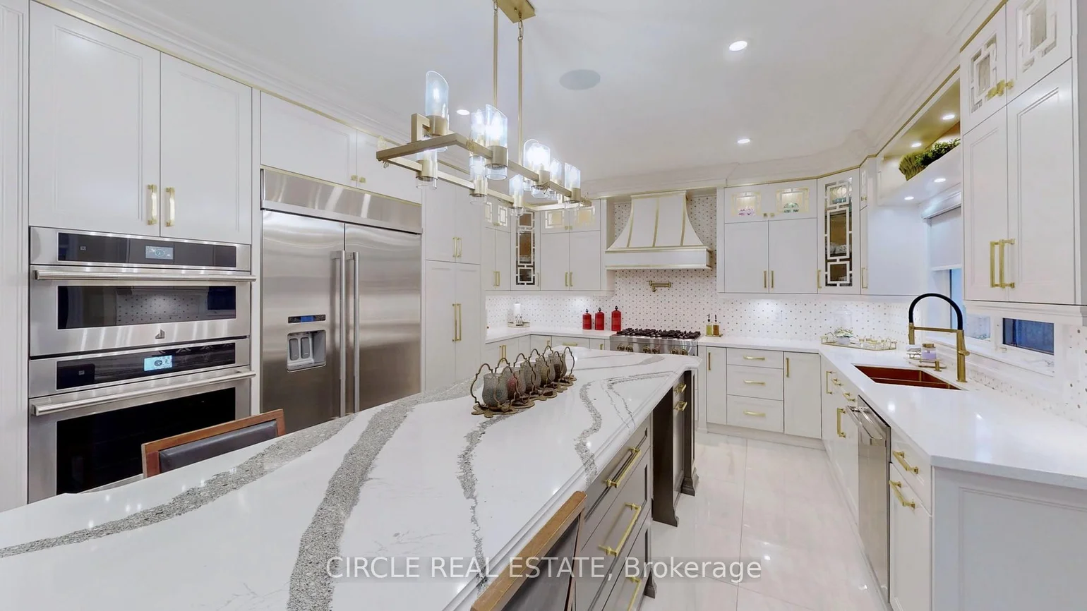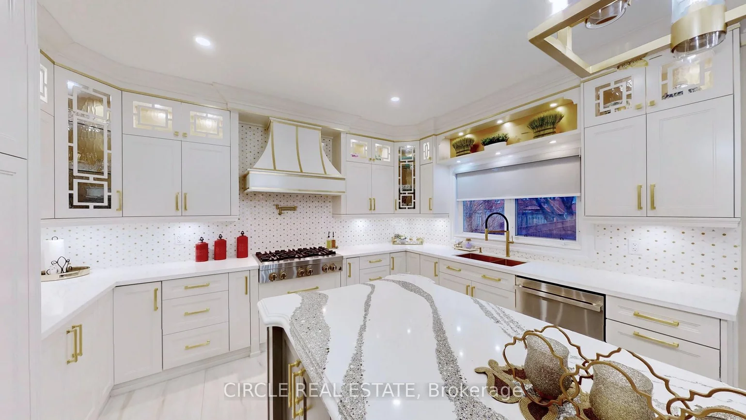 Experience the height of luxury in this fully renovated 5+2 bedroom family home, where timeless design meets sophisticated finishes. With approximately 6,600 sq. ft. of total living space, including around 4,900 sq. ft. above grade, this residence perfectly balances grandeur and practicality through its expansive open-concept layout. Enter through a stunning grand foyer adorned with elegant chandeliers, leading to a spacious living area and a custom-designed family room. The chef-inspired kitchen is equipped with top of-the-line JennAir stainless steel appliances, a striking Cambria island, and a cozy breakfast sitting area. Beautiful hardwood and premium flooring flows throughout, enhancing the refined interior. Outside, the expansive backyard offers complete privacy, surrounded by mature trees, creating a serene outdoor retreat. The fully finished basement with a separate side entrance adds versatile living space, ideal for guests or recreation. This home is a true sanctuary of luxury and comfort - an absolute must-see!