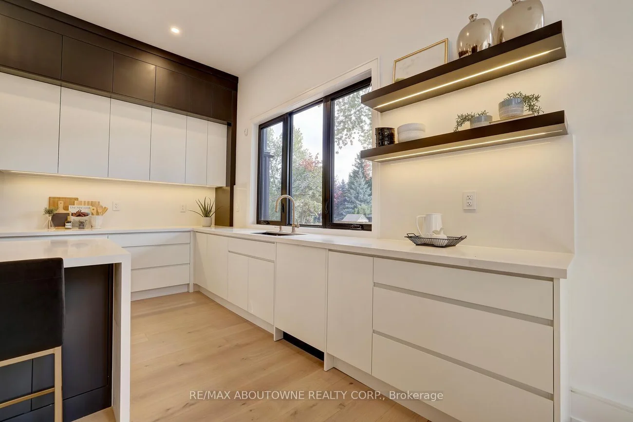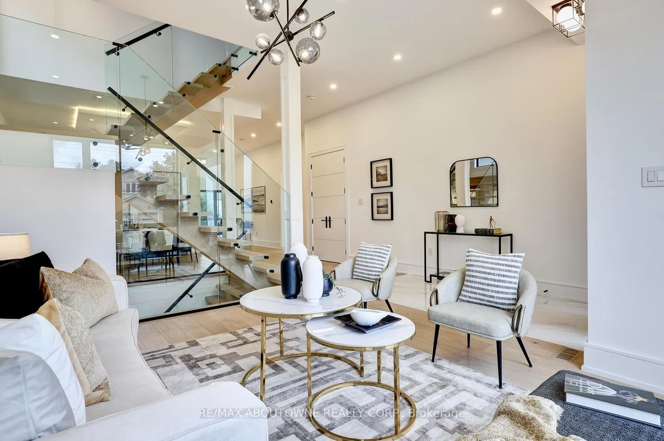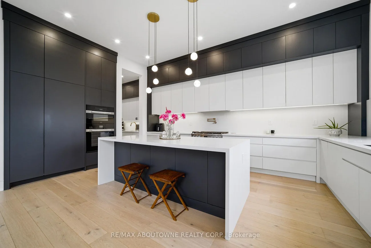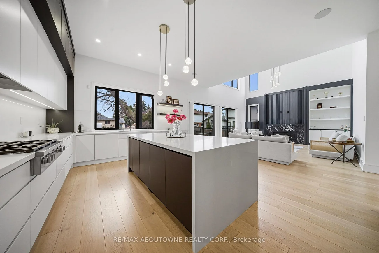 Welcome to this exceptional custom-built Masterpiece in prestigious Erindale, where timeless elegance meets modern sophistication. Set on a rare and premium 50x165 ft lot, this home offers over 4,000 sqft of meticulously designed living space above grade. The main level showcases soaring 11-ft ceilings, a grand foyer w/ heated floors, wide-plank engineered hardwood floors, & a breathtaking great room w/ a dramatic 21-ft open-to-above design & gas fireplace. The chef-inspired kitchen is a true showpiece, featuring a waterfall quartz island, floor-to-ceiling custom cabinetry, panel-ready Miele appliances including a side-by-side Fridge/Freezer, Gas Range, Built-in Oven & Dishwasher & a spacious walk-in pantry. A main floor office or bedroom w/ private ensuite adds both convenience & flexibility for multigenerational living or work-from-home needs. Upstairs, four generously sized bedrooms each offer custom built-in closets & private, spa-like ensuites w/ designer fixtures . The primary retreat is a sanctuary of its own, complete w/ a private balcony overlooking mature trees, heated floors, Towel warmer, custom vanity, glass shower, & a luxurious freestanding tub. Additional features include a solid wood staircase w/ glass railings, heated laundry floors, & integrated audio system throughout the home. The fully finished walkout basement w/ 9-ft ceilings provides additional living space, including a recreation room, bedroom w/ ensuite, full bathroom & flexible areas for extended family, guests, or a nanny suite, along w/ a rough-in for a wet bar. Exterior highlights include a professionally landscaped front & rear yard w/ LED lighting, covered porch with glass railings, natural gas line for BBQ & a fully fenced private backyard perfect for entertaining. Additional features include central vacuum, multiple fireplaces, EV charging rough-in, multi-zone audio, security cameras, & dual furnaces w/separate controls for optimal comfort. *Virtually staged pictures