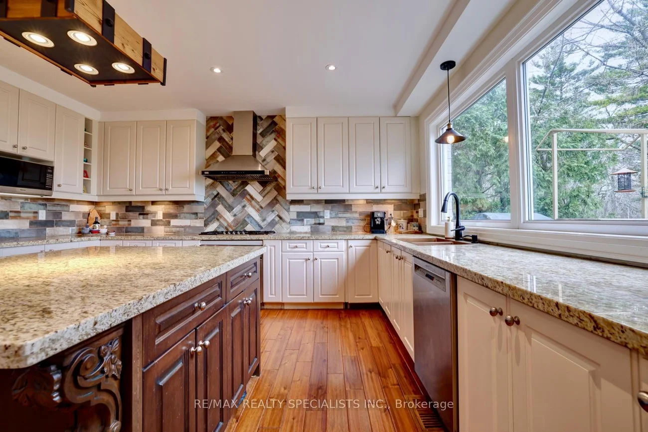 Spectacular Lorne Park/Rattray Marsh custom home overlooking Lake Ontario with over $700,000 spent in recent renovations. Muskoka in the city setting backing onto Turtle Creek with multi million dollar panoramic views, and located at the end of a child friendly cul-de-sac. Spacious living/dining room areas with hardwood floors, gas fireplace, garden doors with walk-out to front porch, and an adjacent Butlery's servery with granite counter tops. Gourmet kitchen with lake/ravine views, granite counter tops, stainless steel appliances, centre island, ceramic backsplash, soft closing drawers, large breakfast area with walk-out to a cantilevered floating balcony with glass side panels. Open concept family room with lake/ravine views, pot lighting, and a bio fuel fireplace with granite surround. Trendy updated 2 piece powder room, interior entrance to garage and main floor laundry. Separate level fourth bedroom or potential in-law/nanny suite with double door entry, his/her closets, front balcony, gorgeous 3 piece bathroom, 2nd walk-out to balcony over looking the ravine and Lake Ontario. Upper level completely rebuilt with hand scraped hardwood floors throughout all bedrooms, main 3 piece bathroom with walk-in glass shower with rain shower head, convenient additional 2 floor laundry, and lounge area with breathtaking picturesque views. Primary bedroom retreat with lake/ravine views, walk-in closet with organizers/pull-out drawers, and spa-like 5 piece en-suite with Roman tub, his/her sinks with marble counter top, large walk-in shower with rain shower head and hand held spray. Walk-out finished basement with an abundance of natural light, hardwood floors, pot lighting, wet bar with dishwasher, cold cellar, 5th bedroom, 3 piece bathroom with vessel sink, recreation area with gas fireplace and walk-out to stone patio area. Just minutes away to Jack Darling Park, beaches, walking/biking trails, tennis, shopping, QEW highway, transit, dog park, and Port Credit Go Station