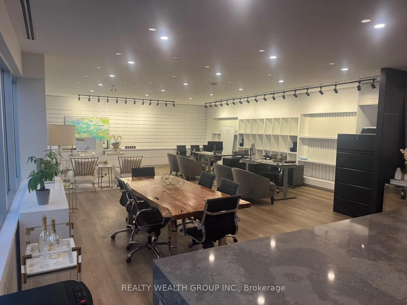 Rare opportunity to lease the entire second floor of a modern, beautifully designed space with private elevator access. This expansive, open-concept floor offers a bright and contemporary layout ideal for a wide range of professional and creative uses. The space features soaring ceilings, premium finishes, and abundant natural light, creating an inviting yet highly functional environment. Perfectly suited for an event space, yoga or wellness studio, creative studio, training or seminar space, corporate office, content studio, or private showroom. Highlights include a full modern kitchen, spacious entertainment and meeting area, private bathroom, and multiple flexible zones that can accommodate workstations, lounge seating, or open-floor programming. Thoughtfully designed with upgraded lighting, wide-plank flooring, and custom cabinetry throughout. Located in a desirable Newmarket area with excellent accessibility, this private second-floor space offers versatility, exclusivity, and a professional atmosphere rarely available on the market. Ideal for businesses seeking a turnkey, upscale, and adaptable space.