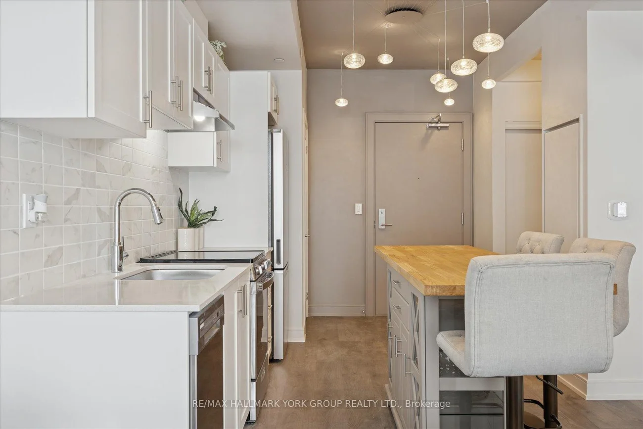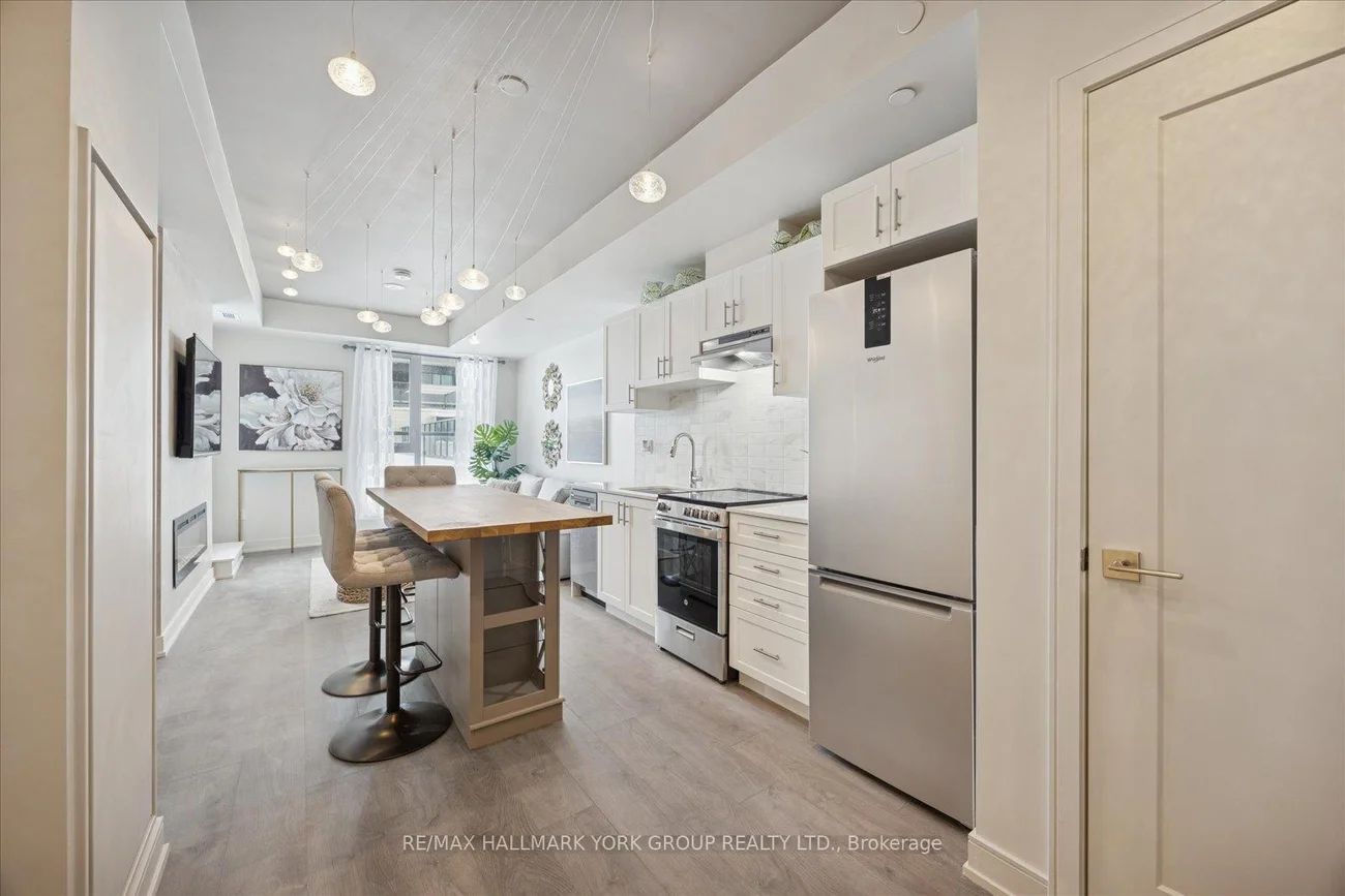 The Oversized Private Terrace Sets This Condo Apart. This Well-Appointed 1 Bedroom, 1 Bathroom Residence Offers Approximately 520 Sq Ft Of Interior Living Space Plus A Generous 172 Sq Ft Private Terrace, Providing An Impressive 692 Sq Ft Of Total Living Area-Ideal For Those Who Appreciate Comfortable Indoor-Outdoor Living.The Open-Concept Kitchen, Living, And Dining Area Is Thoughtfully Designed With Clean, Modern Finishes. The Kitchen Features Quartz Stone Countertops And A Coordinating Backsplash, Stainless Steel Appliances, And A Centre Island That Anchors The Space. Designer Lighting Throughout The Suite Enhances The Overall Ambience, While The Living Area Is Highlighted By A Cozy Fireplace, Creating A Warm And Inviting Atmosphere. Sliding Doors Extend The Living Space Onto The Expansive Private Terrace, Perfect For Relaxing Or Entertaining.The Bedroom Is Comfortably Sized And Tastefully Finished, Featuring Hanging Sconce Lighting That Adds A Subtle Design Touch. A Contemporary 4-Piece Bathroom, In-Suite Laundry, And Included Parking Complete This Functional And Well-Laid-Out Home.Residents Of Kingsley Square Enjoy Access To Excellent Building Amenities Including Concierge/Security, Fitness Room, Media Room, Rooftop Deck And Garden, Community BBQ Area, And Visitor Parking. Conveniently Located Near Public Transit, Parks, Schools, Hospital, Library, And Recreation Facilities, This Is A Fantastic Opportunity To Lease A Condo Offering Exceptional Outdoor Space In A Well-Managed Building.Furnishings Available For An Additional $200 Per Month, Offering A Flexible And Turn-Key Option.
