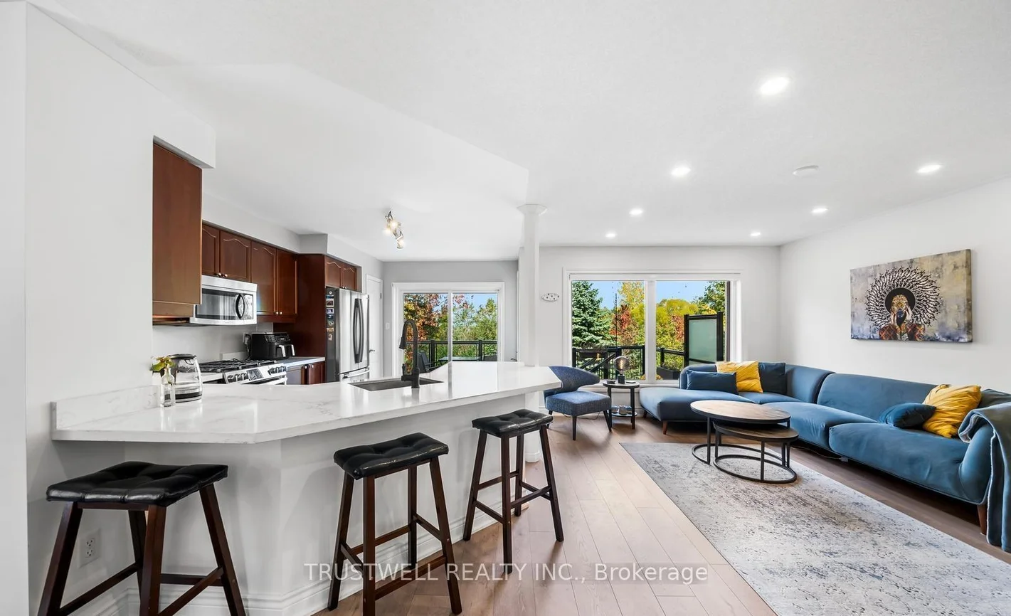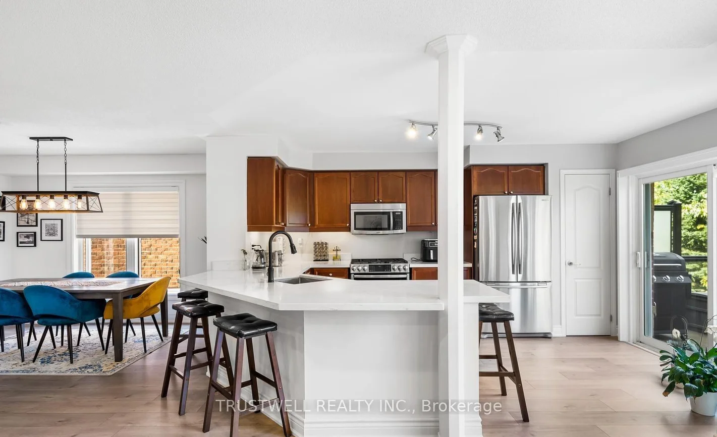 End Unit Townhome-Premium Lot Overlooking Pond/Greenspace In High Demand Area-Woodland Hills! Bright, Open Concept With Hardwood Floor On Main Level, 2nd Floor Laundry Room. New Windows (2018), Renovated Ensuite (2018). S/S Appliances, Walkout From Eat In Kitchen To New Custom Built Deck/Glass Railings. Professionally Landscaped Front & Back. ( basement is not included ).