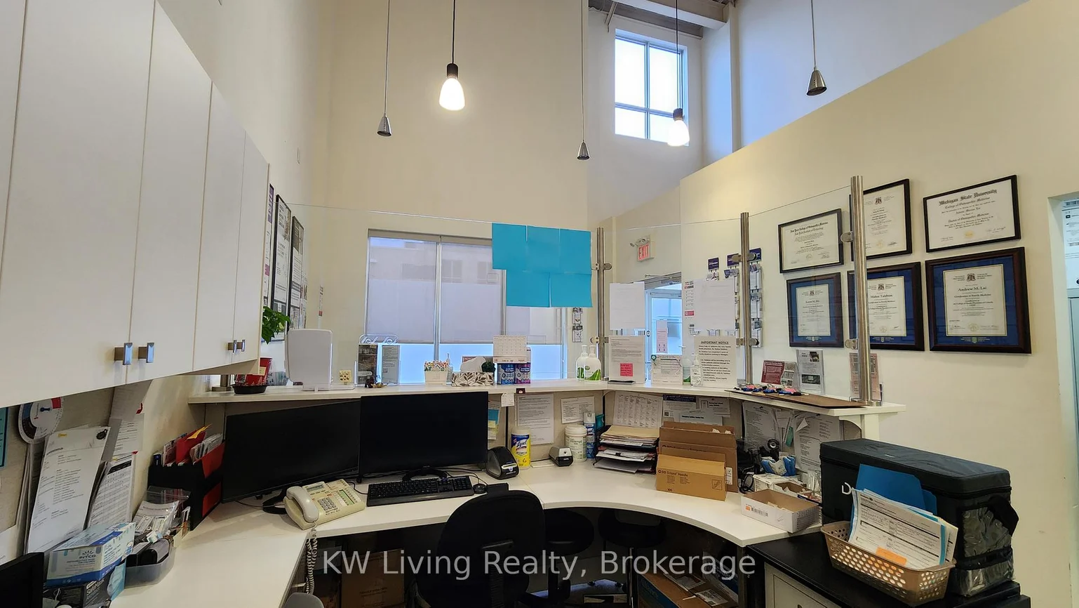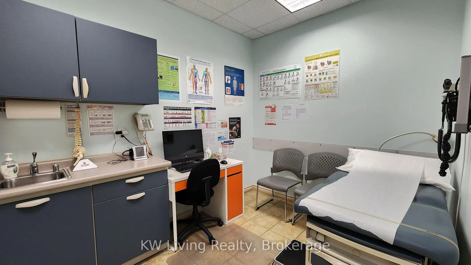 Prime location on Leslie St, between Davis Dr and Mulock Dr. 5 minutes drive to Southlake Regional Health Centre. Commercial condo unit built in 2008 offers a mix of offices, eg, medical, retail, professional services. Other offices in the plaza include vascular surgeons, ophthalmologists, dentists, chiropractors, physiotherapists, speech therapists, pharmacists and more. Presently a medical practice on the ground level of approx. 1065 sq. ft. is built out as a medical office with 4 examination rooms, 1 assessment room, reception bay, waiting room, 2 bathrooms (employee and patient). Excellent turnkey opportunity for another doctor(s) to open a practice with minimal renovation required. All examination beds (4), diagnostic equipment, built in shelves, cupboards, reception desk and shelving, waiting room benches are included at no extra cost. Rear access to the outside and 2nd floor. The 2nd level mezzanine is approximately 615 sq. ft. with a separate entrance from the rear of the unit with ample parking. Presently occupied by a RMT/TCM (Traditional Chinese Medicine) practitioner. Monthly tenant. There is a separate bathroom and closet on the 2nd level. Potential to occupy the entire unit or just the ground level and rent the 2nd level (present tenant willing to stay).