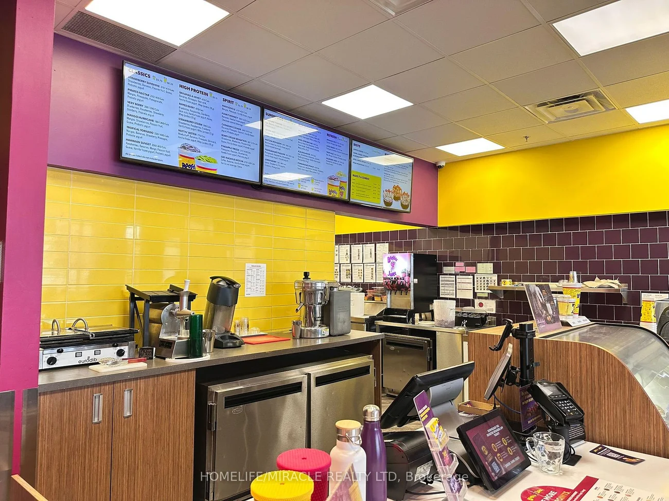 Well established and very easy to operate Booster Juice franchise for sale in Newmarket at the high-traffic intersection of Yonge St. and Mulock Dr. This 1,262 sq ft unit in an attractive plaza offers excellent visibility, strong customer flow, and a proven sales history in a fully residential area surrounded by schools, offices, and major retailers. The business comes with a long lease (until June 2026 plus 5+5 renewal options) at $5,665/month (TMI & HST included), along with standard 6% royalty and 3.5% advertising fees. This turnkey opportunity includes strong signage and offers clear potential for continued growth in a prime location.