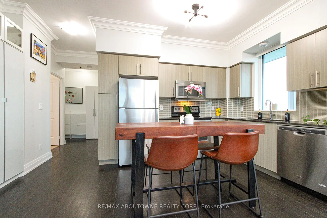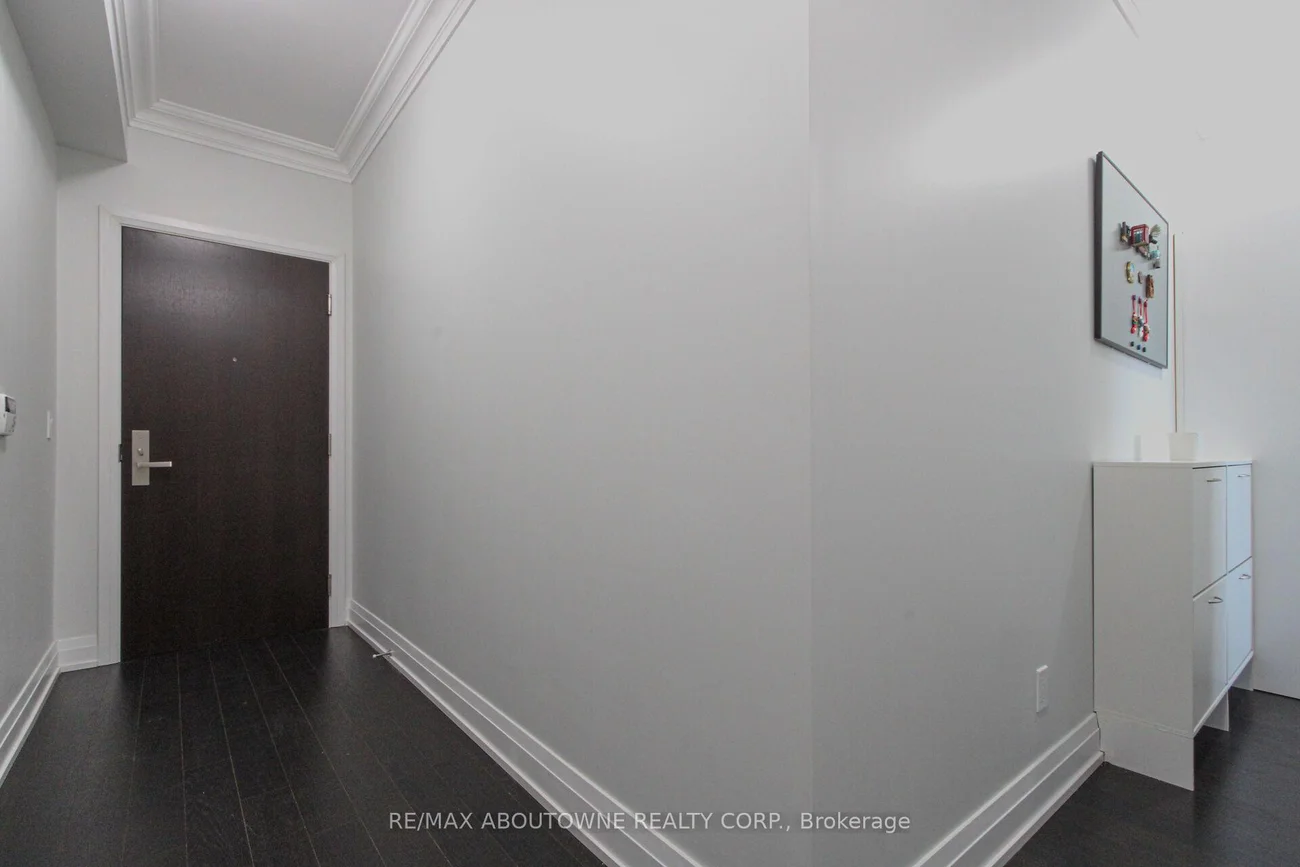 Welcome to this Sun-Filled Corner "Captivate" Model unit with 2 PARKING SPOTS next to each other & a locker!!! Discover this bright & spacious 2-bedroom, 2-bath suite in the Rain Condominiums by Empire Communities. This desirable corner unit offers an open-concept living & dining area with floor-to-ceiling windows, 9' ceilings, crown moulding, smooth ceilings, & engineered hardwood floors. Step out from every room onto a wrap-around 300 sqft. balcony, perfect for relaxing or entertaining. The modern kitchen features S/Steel appliances and a glass tile backsplash. The primary bedroom includes a 3-piece ensuite, W/in closet, & walk-out to the balcony. The second bedroom with mirrored closet & balcony access. Enjoy resort-style amenities: an indoor pool, hot tub, cold plunge, sauna, gym with yoga studio, party room, library, rooftop terrace with BBQs & lounge areas, 24-hour concierge, EV chargers, car wash, visitor parking, guest suites, & secure parcel lockers. Free Wi-Fi in gym, library, & pool area.Just steps to Oakville GO Station, Kerr Village, restaurants, shops, & a movie theatre. Only minutes to QEW, downtown Oakville, & the Oakville Harbour & marina. Bonus: The upcoming Gemini South Tower nearby will be only 10 storeys, per the builder, so your view of Toronto and Mississauga SkyLines, lake and Sixteen Mile Creek, will not be obstructed!!!!