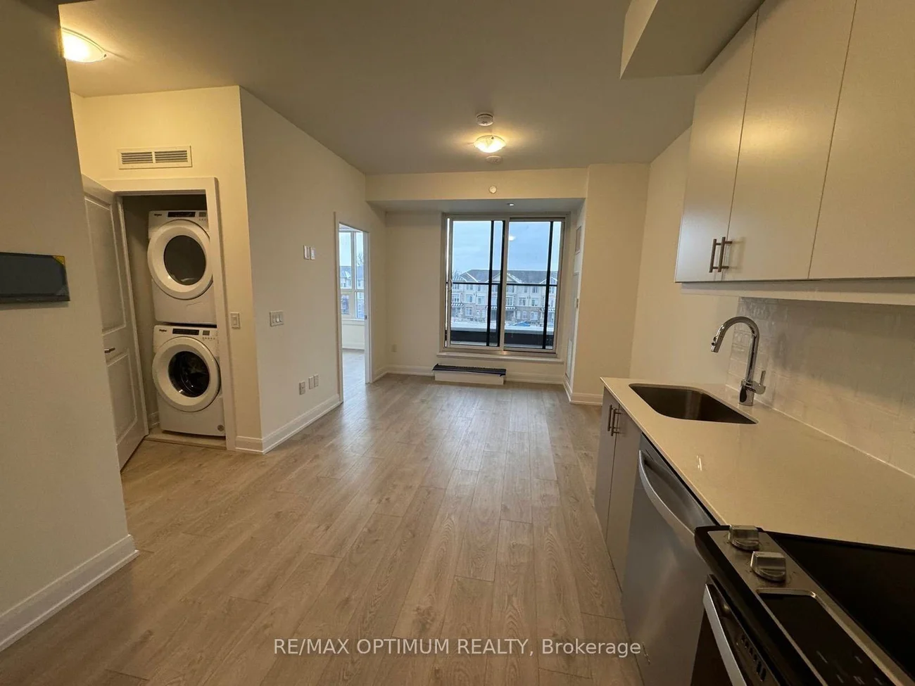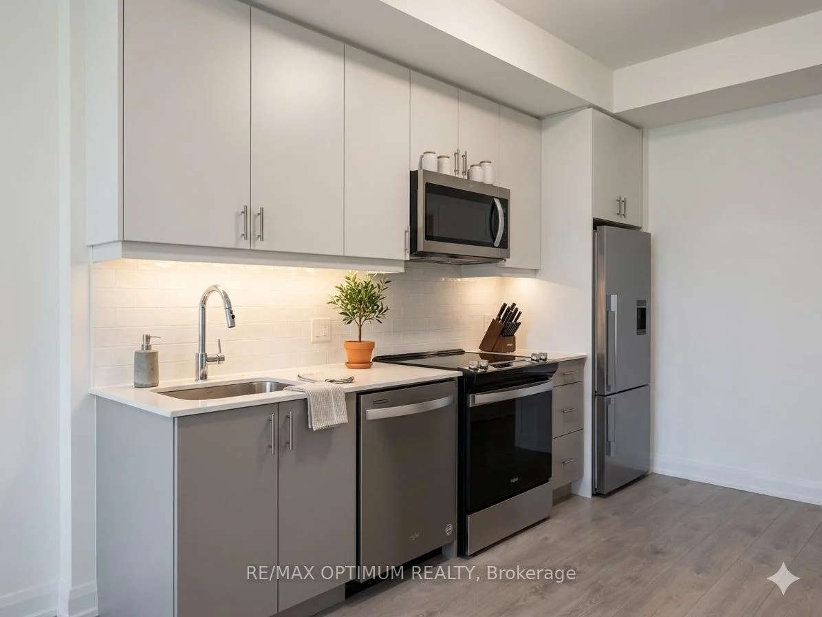 Welcome to this modern 1-bedroom condo in the highly sought-after Joshua Meadows community in Oakville. Offering approximately 610 sq ft of thoughtfully designed living space, this bright, open-concept unit features desirable east-facing exposure and a private balcony. The interior showcases sleek laminate flooring throughout, complemented by a contemporary kitchen equipped with granite countertops and stainless steel appliances. The spacious living and dining area is enhanced by large windows, allowing for an abundance of natural light. The well-appointed bedroom includes a generous closet and ample natural light, while the unit also features the convenience of ensuite laundry and central air conditioning. One underground parking space and a locker are included, with an option for an additional parking space available for $150.Ideally located close to public transit, schools, shopping, and major highways, this property offers exceptional convenience for commuting and everyday living. Perfect for professionals or couples seeking a comfortable, well-connected home in Oakville.