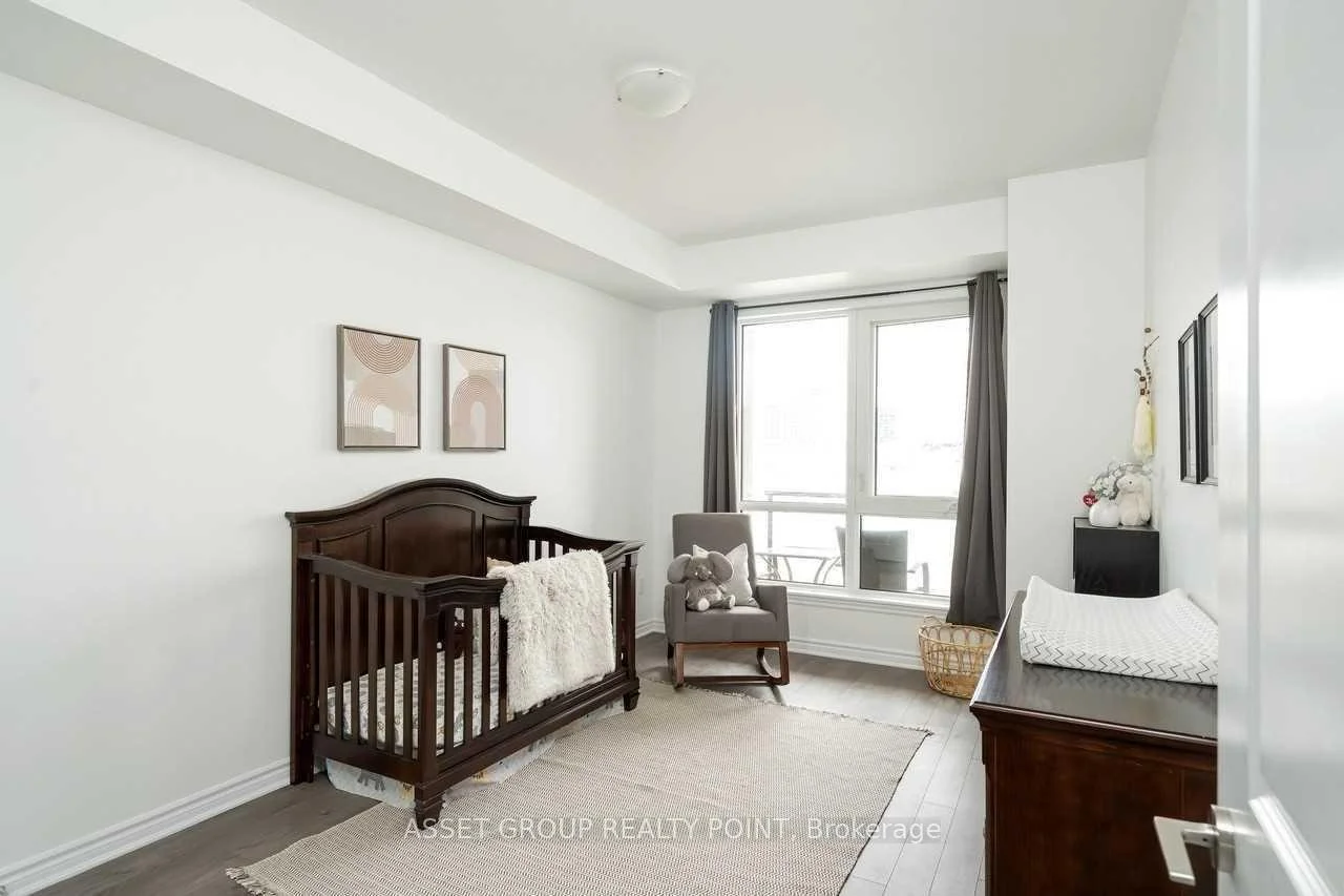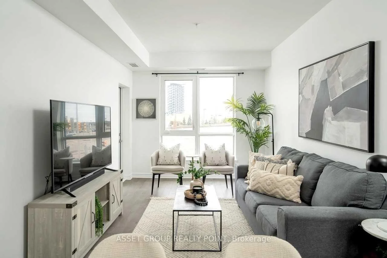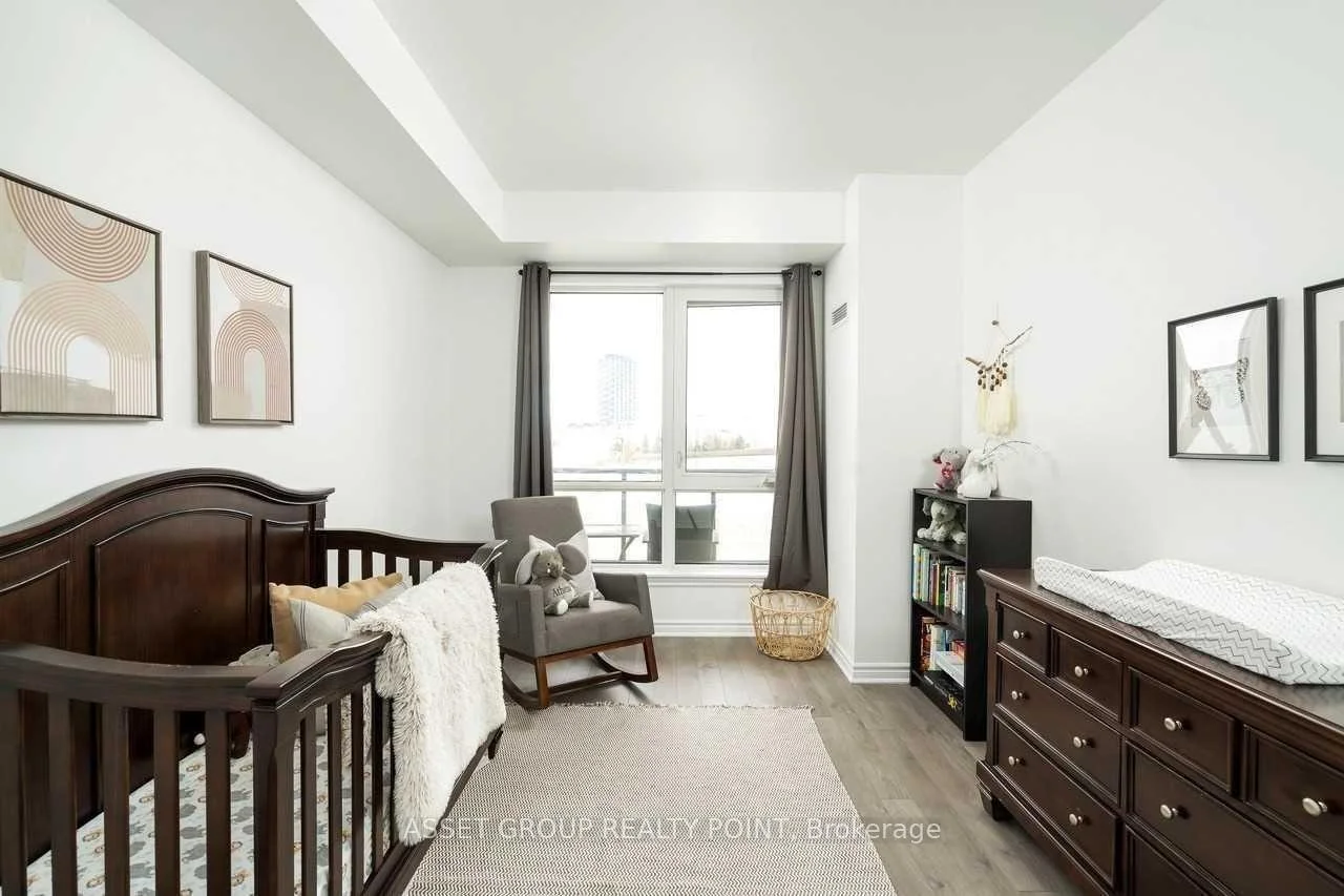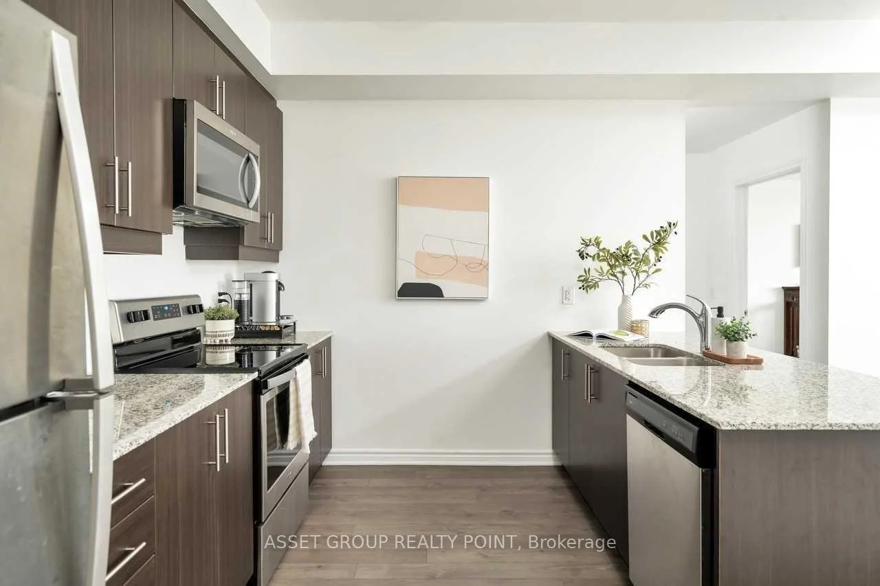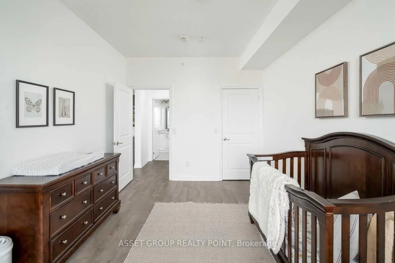This elegant boutique condo in Oakville's Uptown Core offers modern living with unobstructed views and exceptional space. The suite features 9-foot ceilings, approximately 1,067 sq. ft. of thoughtfully designed living space, plus a 64 sq. ft. private balcony. It includes two generously sized bedrooms, each with its own walk-in closet, and a beautifully finished kitchen highlighted by an oversized granite island with breakfast bar. The unit also offers the convenience of in-suite laundry.Residents enjoy premium building amenities including a large modern party room with patio, a fully equipped fitness centre, bike storage, and a pet spa. Ideally located just minutes from Highways 403, QEW, and 407, and close to Sheridan College, this condo combines comfort, style, and excellent connectivity.