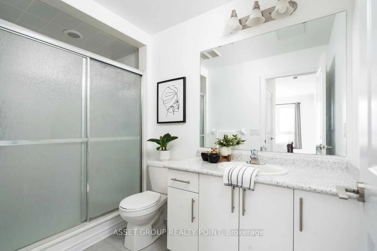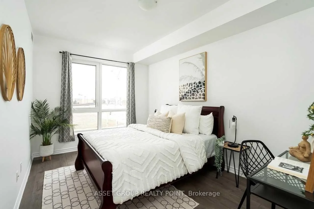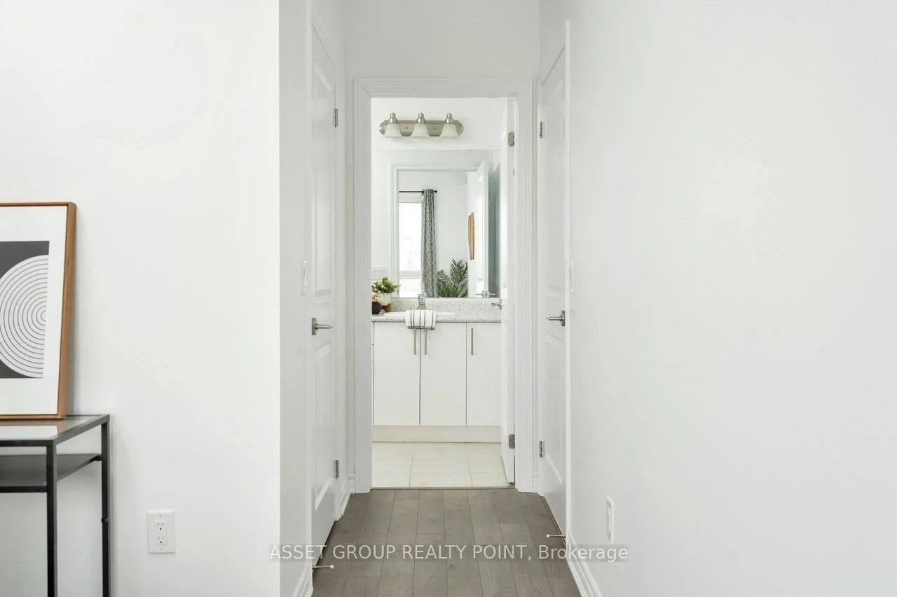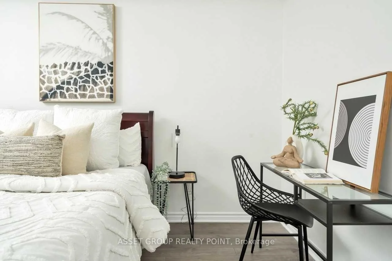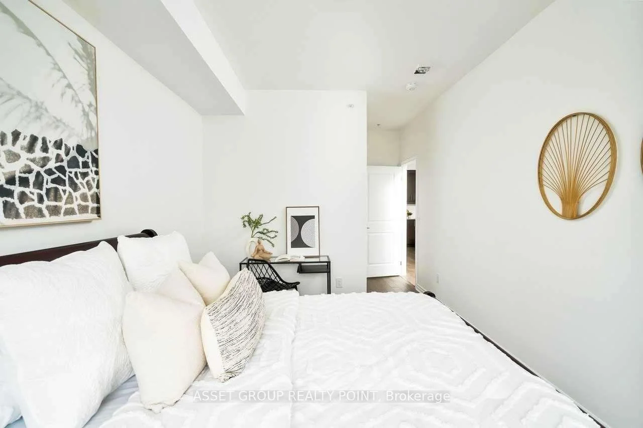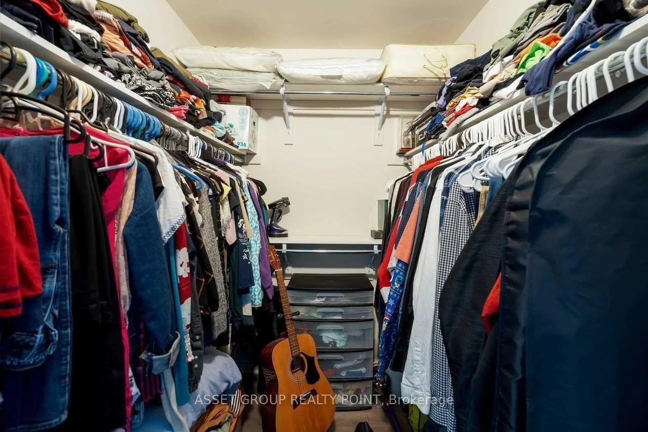 This elegant boutique condo in Oakville's Uptown Core offers modern living with unobstructed views and exceptional space. The suite features 9-foot ceilings, approximately 1,067 sq. ft. of thoughtfully designed living space, plus a 64 sq. ft. private balcony. It includes two generously sized bedrooms, each with its own walk-in closet, and a beautifully finished kitchen highlighted by an oversized granite island with breakfast bar. The unit also offers the convenience of in-suite laundry.Residents enjoy premium building amenities including a large modern party room with patio, a fully equipped fitness centre, bike storage, and a pet spa. Ideally located just minutes from Highways 403, QEW, and 407, and close to Sheridan College, this condo combines comfort, style, and excellent connectivity.