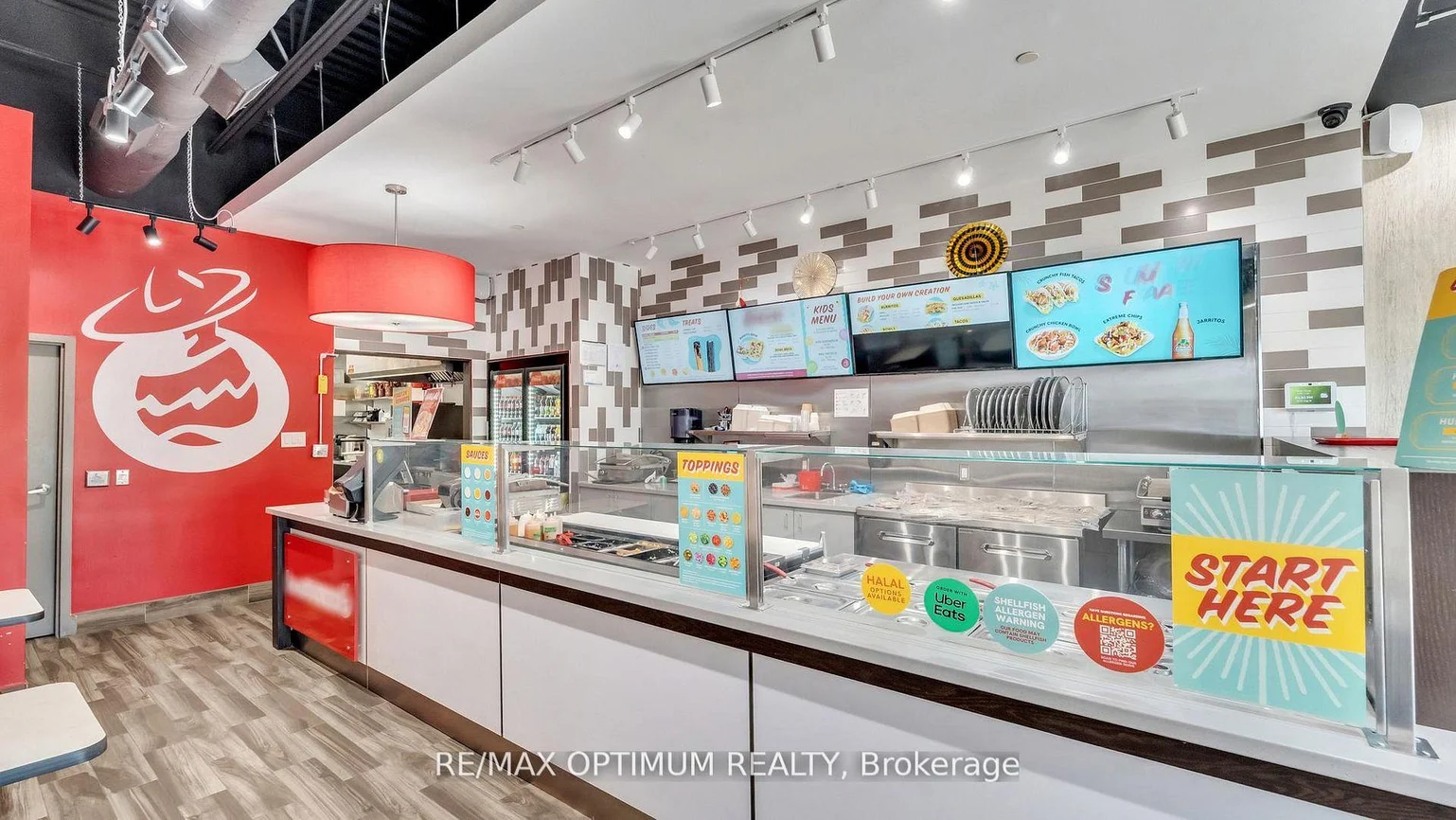 SALE OF BUSINESS!! Sale of a successful BarBurrito franchise in a prime high-traffic plaza! This well-established fast-casual Mexican grill is fully built out with approx. 1,528 sq. ft. of modern kitchen space, stylish dining area, and premium leasehold improvements, making it completely turnkey for a new owner. Weekly sales are consistently strong and growing, supported by multiple revenue streams including walk-in traffic, loyal repeat customers, and delivery platforms such as Uber Eats, SkipTheDishes, and DoorDash, with additional upside potential through catering and community marketing. Buy this leading national brand Franchise, comprehensive training, ongoing operational support, marketing resources, and access to established supply chains and systems will be provided. Perfect for first-time business owners, families, new immigrants, or experienced investors seeking a reliable, cash-flowing asset in the thriving fast-casual dining category.Steps to Shoppers Drug Mart, Starbucks, TD Canada Trust, Kids & Company Daycare, and a variety of popular restaurants, all within the Shoppes on Dundas plaza at 2525 Prince Michael Drive. Lease Term 10-year + Two 5-year renewal options. Low Rental is $5,348/month approx. plus TMI. Franchise royalty fees 6% + 3% Marketing.