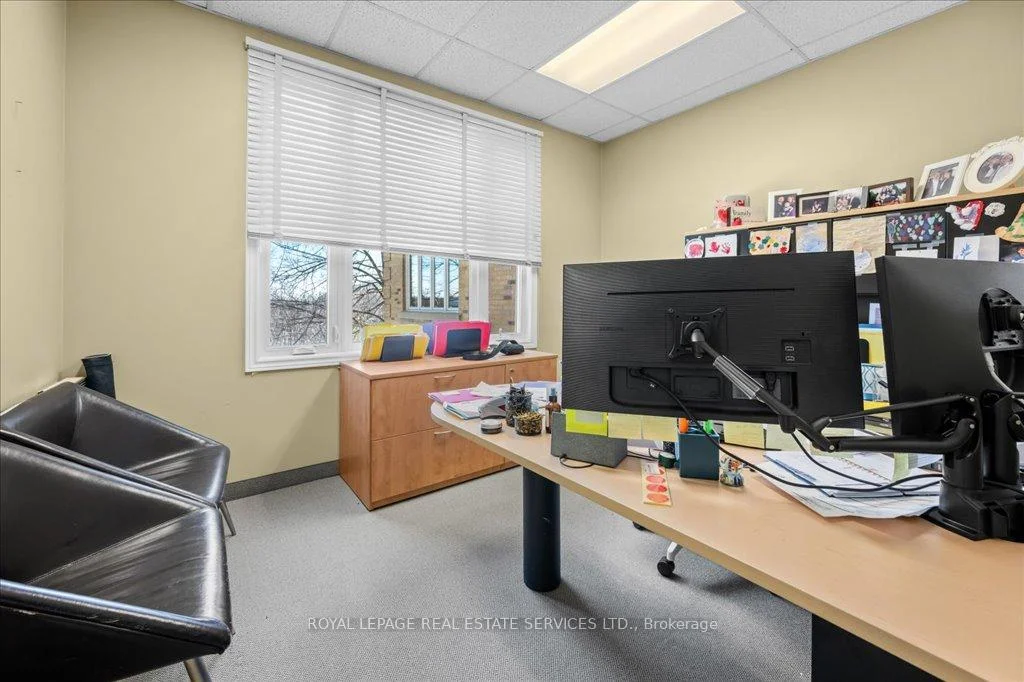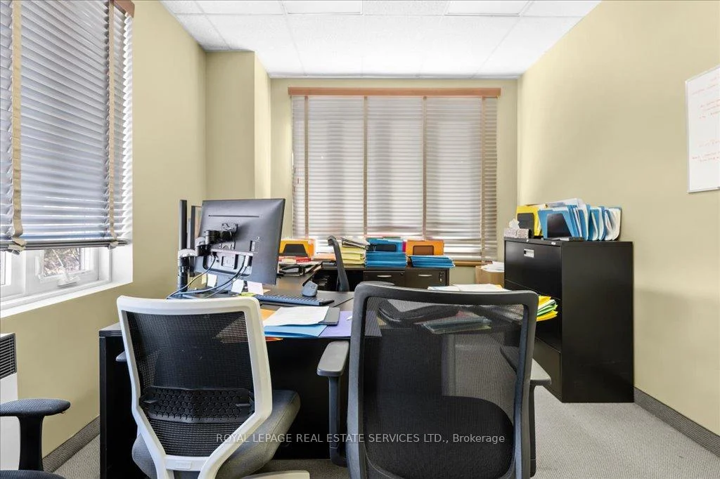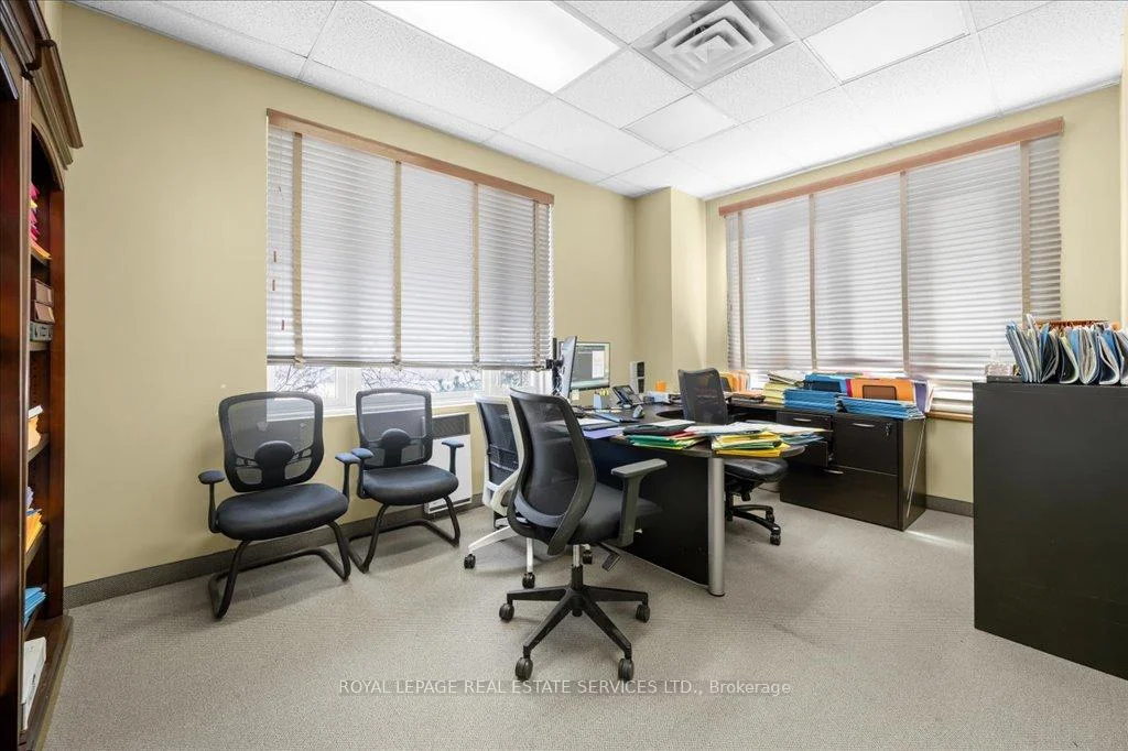 LIGHT-FILLED OFFICE CONDO IN A PREMIUM OAKVILLE CORPORATE HUB! A rare opportunity to own in one of Oakville's most desirable and well-maintained professional complexes. This highly visible second-floor end unit offers approximately 2,250 square feet with a smart, versatile layout that can be reimagined or used as-is. With its bright south-east corner orientation, the space is wrapped in windows, creating a natural light-filled setting that supports productivity and collaboration. The current design includes four private offices (with potential for a fifth), an open-concept bullpen, a large boardroom, two in-suite bathrooms, a kitchenette, and a dedicated storage area - ready to support a wide range of professional uses. The complex itself is professionally managed and provides abundant on-site surface parking for staff and visitors. Surrounded by a strong mix of medical, professional, and corporate tenants, the setting fosters credibility and connection. Strategically located minutes from the QEW, Oakville Place, the GO Train, and countless amenities - with public transit at the door - this property combines visibility, convenience, and long-term value. Whether you're an owner-occupier seeking move-in ready space or an investor looking to reposition and add value, this office condominium stands out as a flexible and future-proof opportunity.