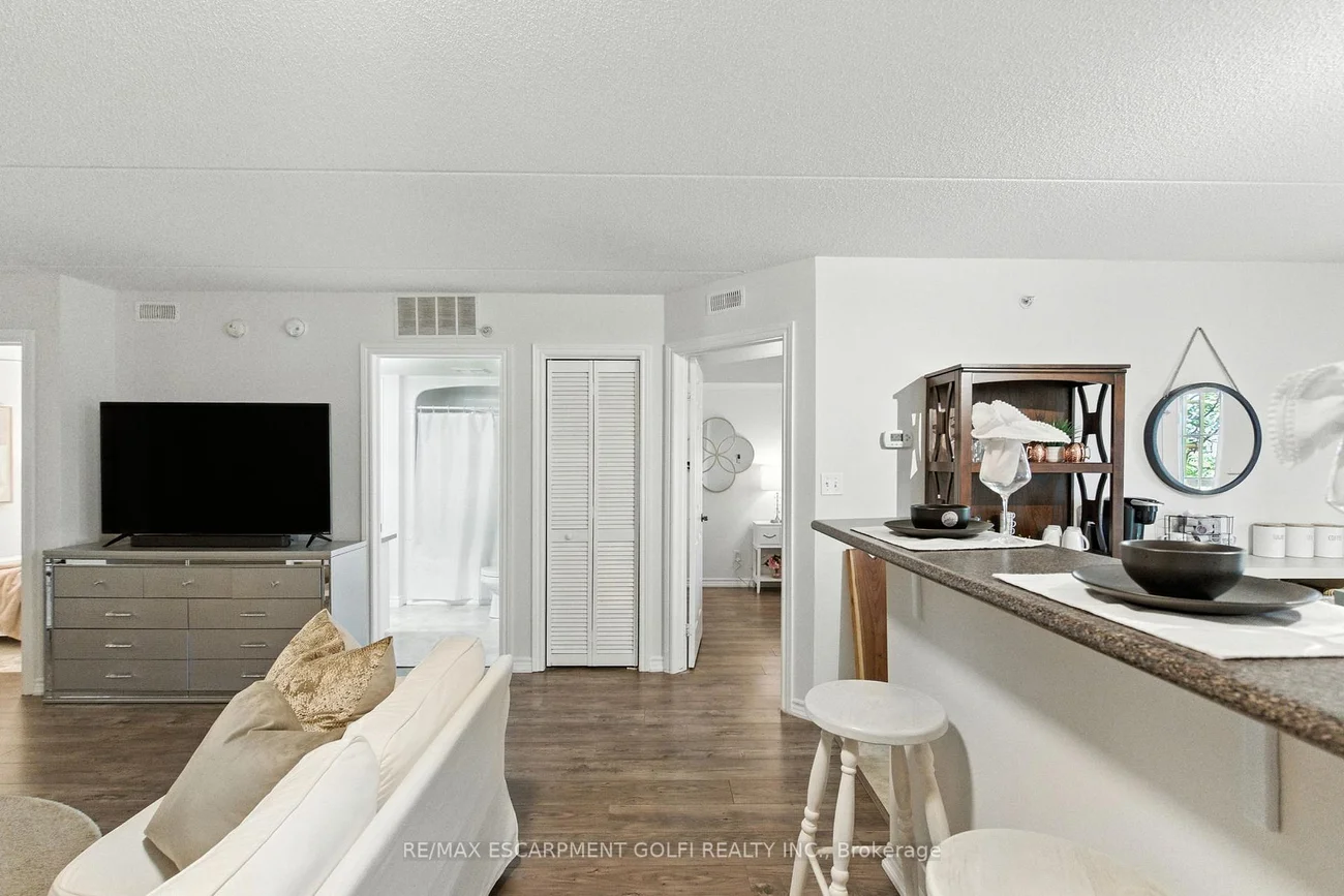 Welcome to your serene retreat in the heart of Glen Abbey--a beautifully updated 2-bedroom, 1-bath condo that blends comfort, style, and effortless living. Bathed in natural light, this 895 sq. ft. home invites you in with its airy open-concept design. The spacious living and dining area lows gracefully onto a private balcony--your own peaceful haven for sunrise coffees or golden-hour evenings under the sky. The modern kitchen, with its generous cabinetry and seamless connection to the main living space, makes every meal feel easy and inspired. Enjoy the everyday luxuries that make life simpler: in-suite laundry, secure underground parking, and a separate storage locker. Indulge in the building's thoughtful amenities--a fitness centre for morning energy, a sauna for evening relaxation, a recreation room for connection, and even a cozy car wash bay ready for winter days. Perfectly situated in the sought-after Glen Abbey community, you're surrounded by parks, trails, top-rated schools, and charming local shops--with easy access to transit and major highways. A turnkey, pet-friendly home where modern convenience meets timeless tranquility--ready for you to fall in love and move right in.