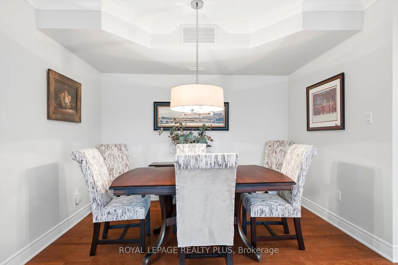 An exceptional opportunity to own a luxurious one-floor condominium in the prestigious North Morrison House, an exclusive low-rise boutique building with only 15 units. Built by the renowned Dawn Victoria Homes, this three-story residence boasts impressive curb appeal and is nestled within a serene, protected forest and valley, offering unparalleled privacy and tranquility. This rare and highly sought-after unit spans 1,920 square feet and features a thoughtfully designed open-concept layout ideal for both family living and entertaining. The suite includes two bedrooms, a versatile den (easily convertible to a third bedroom), and high-end finishes throughout. Key features include: Elegant interiors: coffered ceilings, 9-foot ceilings, and 6-inch baseboards in the living/dining room and front hall. Luxurious amenities: A double-sided gas fireplace (shared between the living room and den), extensive pot lighting, and crown molding in the living and dining areas. Gourmet kitchen: Equipped with stainless steel appliances and designed for the discerning chef. Quality craftsmanship: Hardwood flooring in the living, dining, bedroom, and den areas, along with custom closet organizers in both bedrooms. Spacious bathrooms: Designed with both functionality and luxury in mind. The pride of ownership is evident in every detail, making this move-in-ready condominium a true gem. Don't miss this rare opportunity to experience refined living in one of the most exclusive settings.