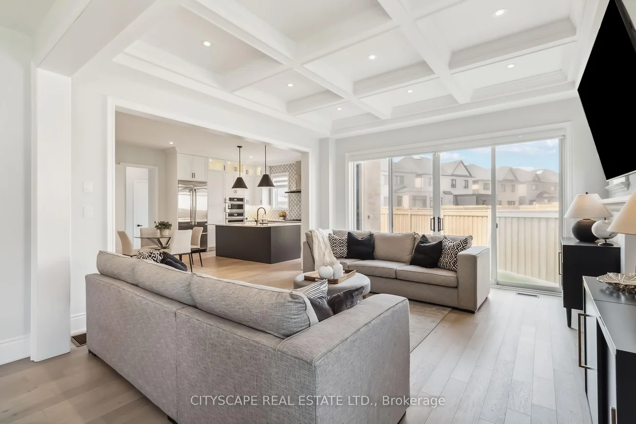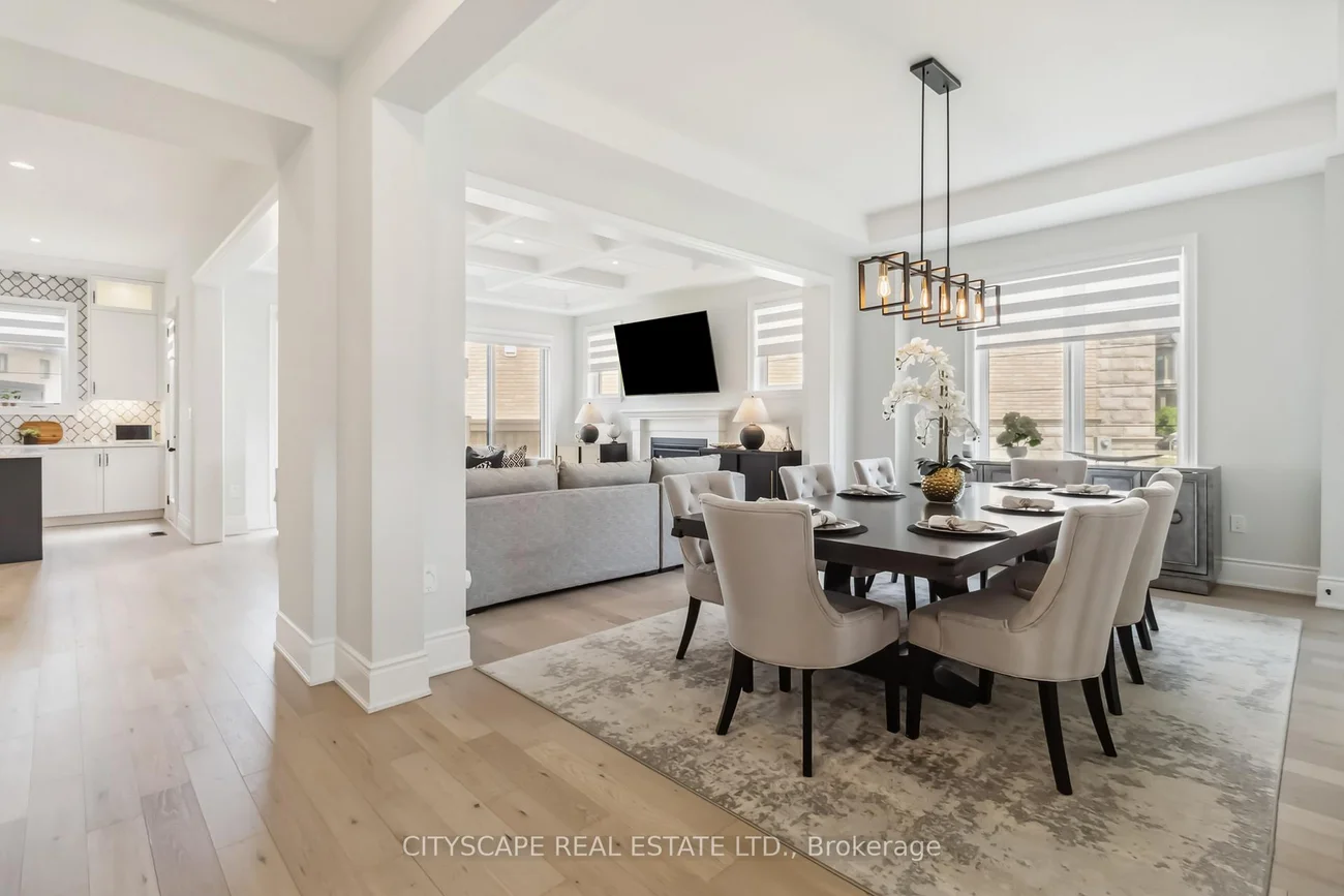 Welcome to Glen Abbey Encore - Where Your Fairytale Begins. Step into luxury with this exquisite executive Vanderbilt model by Hallet Homes- a 5-bedroom, 5-bathroom stone and brick masterpiece. Boasting 3,910sq. ft. of elegant living space (excluding the basement) and situated on a premium reverse pie-shaped lot with a 105-ft wide frontage, this residence is as rare as it is refined. Ideally located near top-ranked, provincially recognized schools, this home is perfectly suited for growing families. Over $150,000 in upgrades elevate every corner of this property, starting with a grand entrance that leads to an open-concept main floor-ideal for entertaining. Enjoy a gourmet chef's kitchen featuring Cambria quartz countertops, built-in Jenn Air appliances, and an expansive eat-in area. The main level also includes a formal dining room, a dedicated office, and a richly appointed wine room, all adorned with elegant wainscoting, pot lights, gleaming hardwood floors, and fireplaces that bring warmth and character. Large sliding patio doors flood the space with natural light, seamlessly connecting the interior to the outdoors. A 3-car garage with a Tesla EV charger adds both convenience and modern efficiency. Nestled on a quiet, forest-facing street, this home offers the perfect balance of tranquility and accessibility, with easy access to major highways and the scenic 14 Mile Creek Trail. A rare blend of sophistication, functionality, and family-friendly living-this home is truly a dream come true.