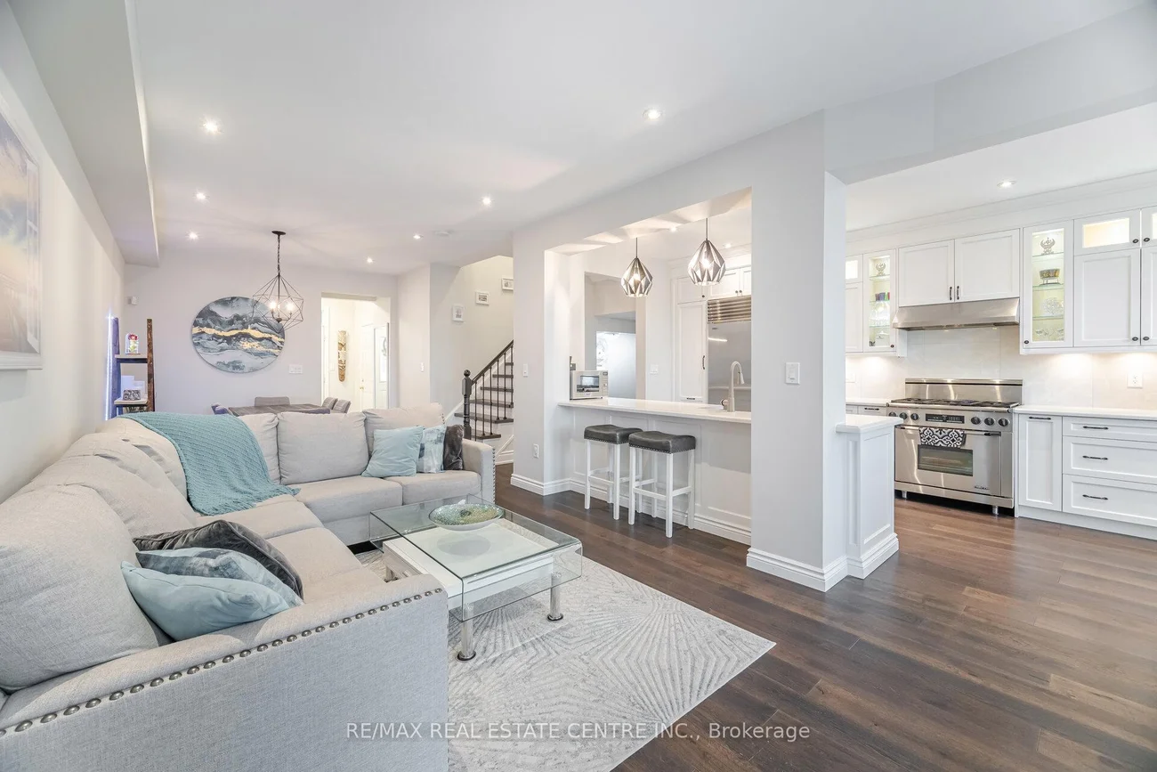 One-of-a-kind designer showpiece in prestigious Bronte Creek! This exceptional executive townhouse redefines luxury living, thoughtfully renovated from top to bottom with high-end, custom finishes that set it apart from the rest. A bright and welcoming foyer with direct garage access offers a stylish and functional entryway, setting the tone for the elegant interior. Enjoy carpet-free living with engineered hardwood flooring throughout the main and second floors as well as the 9ft high ceilings, paired with an open-concept layout that's perfect for both everyday living and entertaining. The chef-inspired kitchen features Caesarstone quartz countertops, solid wood cabinetry, and high-end stainless steel appliances all designed with a sharp eye for quality and style. Upstairs, the solid wood staircase leads to a serene primary suite complete with a walk-in closet and a spa-like ensuite boasting a standalone tub, frameless glass shower, Hansgrohe shower head, and Toto toilet. All bathrooms throughout the home have been tastefully updated to maintain a cohesive, upscale look. Two additional sun-filled spacious bedrooms offer comfort and versatility, convenient 2nd floor laundry room, while the fully finished basement expands your living space with a fourth bedroom, a modern full bathroom, a cozy rec room, plenty of storage space and a dedicated office nook ideal for working from home. Step outside to your own private, professionally landscaped backyard oasis perfect for entertaining or unwinding at the end of the day. Extended driveway fits 2 vehicles. Located in the highly sought-after Bronte Creek community, this rare gem is surrounded by nature, scenic trails, top-rated schools, and every amenity you need.