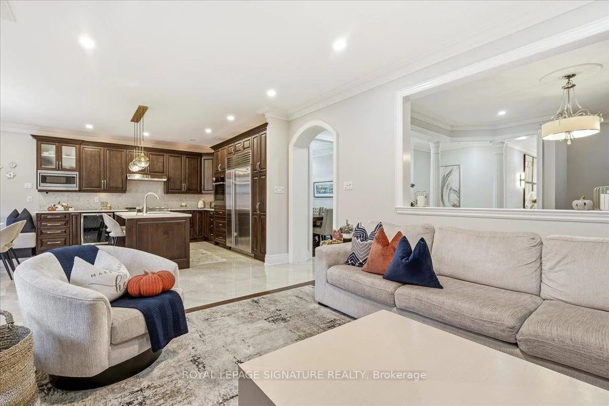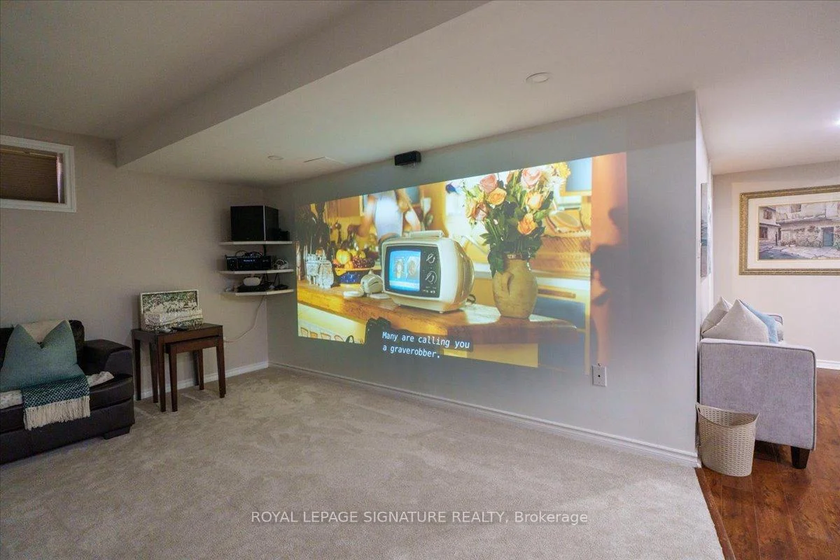 An exceptional residence in the heart of Prestigious Joshua Creek, where timeless elegance meets modern luxury. This impeccably designed home offers an outstanding floor plan perfectly suited for both sophisticated entertaining and comfortable everyday living. Spanning 2,827 sq. ft. of refined open-concept living, the home showcases superior craftsmanship and premium finishes throughout, complemented by a professionally finished basement featuring a private home theatre. Boasting 5+1 spacious bedrooms, 9-foot ceilings, custom plaster crown moldings, 8-inch baseboards, and upgraded millwork throughout, every detail reflects uncompromising quality. The gourmet kitchen is a chef's dream, appointed with granite countertops, an expansive center island, Sub-Zero refrigerator, oversized Franke sink, dual convection ovens, and a sun-filled eat-in area with walk-out to the backyard. Washroom on second floor is in the process of becoming 2 washrooms. Don't miss your chance to call this spectacular home yours, book your showing today!