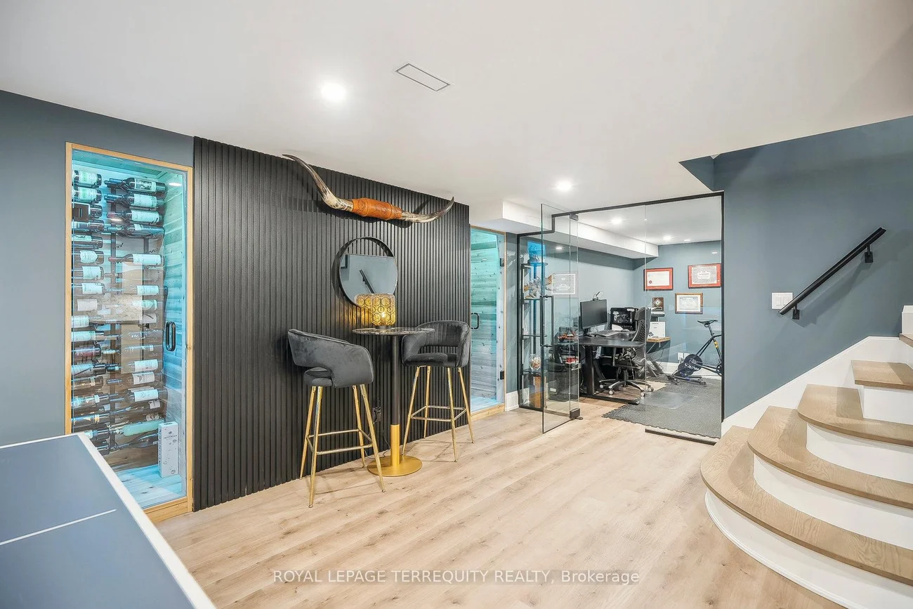 Welcome to prestigious Valleyview Court - an enclave of mature multi-million dollar homes with a parkette at your doorstep. 219 has an incredible 162 ft of frontage onto the court, with a circular driveway, double car garage with electric car charger, and over 140 ft of depth that offers green space for kids to play, a large pool to lounge beside and gardens to enjoy. This larger than average lot has it all. With 4+2 bedrooms, 4 bathrooms, and 2 kitchens this is a home you can grow into, or look forward to hosting in. The living space lets in lots of natural light with skylights and large windows giving clear sightlines from the kitchen through open concept dining room, towards the backyard and pool - great for keeping an eye on friends and family while they swim. The wood-burning fireplace in the living room offers a cozy retreat in the cooler months. With a large office off the main entry, this would be an excellent work-from-home property - imagine watching from your desk as clients pull up on your circular driveway. Upstairs all the bedrooms are all generously sized with large windows and closets. The primary has a walk-in closet + double closet and 5pc ensuite bathroom with jacuzzi. Downstairs the open concept rec room / games room / bar is a great place to relax with luxurious built-in cedar lined wine cellars - a gorgeous compliment to the space. The gym is separated with a glass wall to keep you focused during workouts and the new basement kitchen is fully equipped - great for in-laws or food prep on game nights. The walk-up also offers direct access into the back yard. The home has numerous recent upgrades and renovations including a brand new driveway, and your realtor can provide you with a feature sheet detailing the work. This is a wonderful opportunity to own a great home in a spectacular neighborhood, just a short walk from parks, the lake, schools, transit, and more.