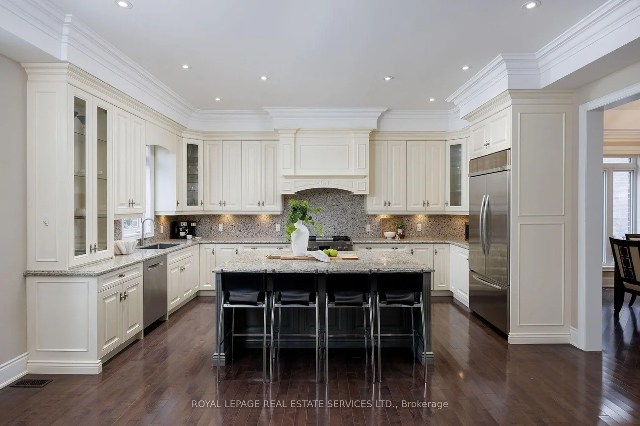 This prestigious southwest Oakville custom home offers luxury living on a large, private pie-shaped lot at the end of a quiet court off Lakeshore Road with mature trees. Ideally located between Oakville Harbour and Bronte Harbour, the property offers quick access to Lake Ontario waterfront parks and beaches,YMCA, downtown Oakville, Bronte Village, and Appleby College, as well as convenient commuter access to the QEW and Bronte GO Station. The striking exterior features a stately stone facade, precast stone accents, a covered front entry, upgraded front door, soffit lighting, and a stone-lined driveway leading to an attached double garage with inside entry. The deep, private backyard, with mature trees, features a newly installed stone patio and ample green space. Offering approximately 3,430 sq. ft. plus finished basement, this 4+1 bedroom, 4.5-bathroom home impresses with 10-foot main-floor ceilings, smooth, coffered, and tray ceiling details, deep crown mouldings, custom cabinetry, upgraded lighting, medium-stained hardwood floors on two levels, and a solid oak staircase with iron pickets spanning three levels. Main-floor living includes a spacious living room/den, formal dining room, and an elegant family room with a coffered (waffle) ceiling and gas fireplace. The chef's kitchen offers extensive custom cabinetry, stone counters and backsplash, under-cabinet lighting, an island with a breakfast bar, deluxe appliances, and a bright breakfast room with a walkout to the patio. All second-floor bedrooms feature ensuite bathroom access, including a luxurious primary suite with two walk-in closets and a spa-like 5-piece ensuite with a freestanding tub and glass shower. The professionally finished basement offers expansive open-concept living, including a recreation/games room, a fifth bedroom, and a 3-piece bathroom. Exclusive & beautiful enclave of homes! Road fee $250/month