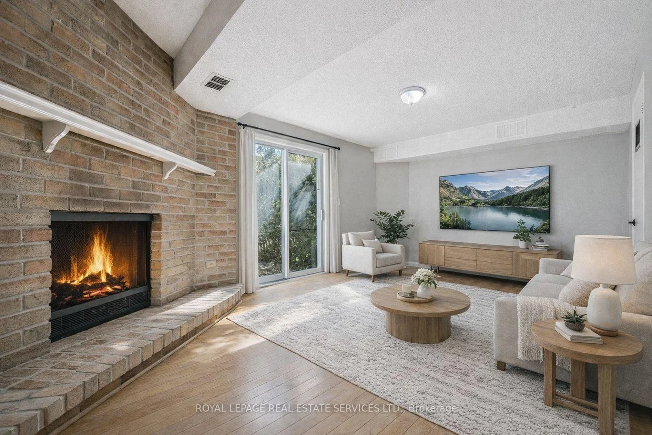 MARINER'S REACH - LAKESIDE LIVING IN THE HEART OF BRONTE! Desirable three-bedroom, 2.5 bath end-unit freehold townhome offering almost 1,800 square feet of thoughtfully designed living space across three levels. Nestled in a private Bronte enclave on a quiet, tree-lined street, this townhome combines comfort, functionality, and an unbeatable location. The main level features an oversized family room highlighted by a charming brick woodburning fireplace, hardwood flooring, and a sliding door walkout to the private backyard. A convenient powder room and a laundry room with additional storage space complete this level. Designed for everyday living and entertaining, the second level offers a large living room with a walkout to the balcony and a two-sided woodburning fireplace shared with the dining room. The dining area is enhanced by a bright bay window and flows seamlessly into the kitchen, offering an abundance of cabinetry, backsplash, and a practical breakfast bar for casual dining. Hardwood flooring continues throughout the third level, where you'll find a spacious primary bedroom featuring a bay window, walk-in closet, and private three-piece ensuite. Two additional bedrooms and a four-piece bathroom complete this level. Step outside to an oversized, fully fenced backyard ideal for family fun, pets, and effortless outdoor living. Just a short stroll to the boutiques, cafes, and restaurants of vibrant Bronte Village, as well as the marina, harbour, Waterfront Trail, and the lake. Perfect for commuters with easy access to public transit, major highways, and the GO Train. An exceptional opportunity to experience lakeside living in one of Oakville's most sought-after communities. (certain images have been digitally enhanced and virtually staged)