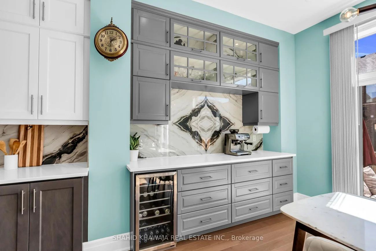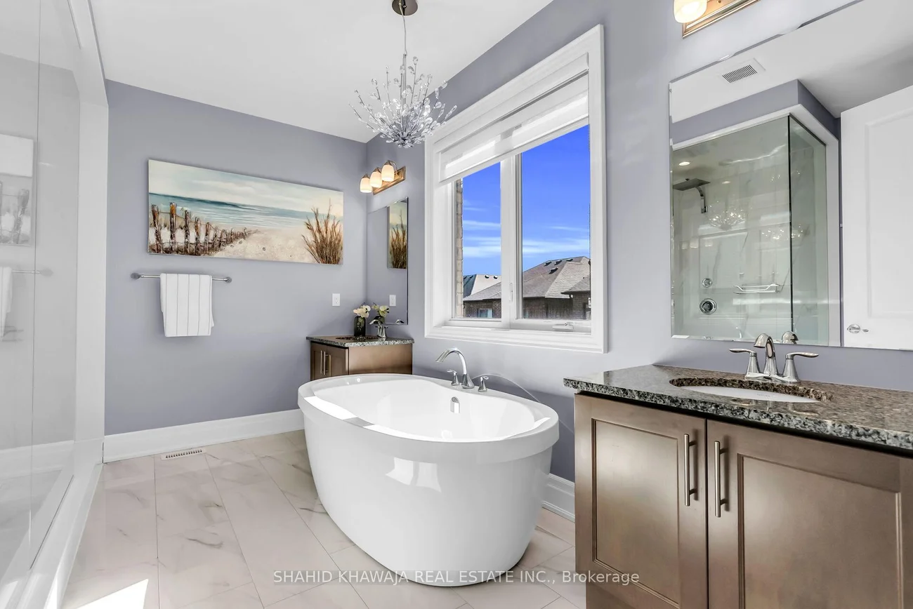 **View Virtual Tour**Welcome to 1417 Varelas Passage a highly desirable Mattamy-built Kingsley Model with a contemporary modern elevation, set on a rare premium pie-shaped lot in Oakvilles prestigious Winston Park community. This stunning executive detached home showcases over $200,000 in premium upgrades, blending modern luxury with thoughtful design. Home features soaring 10ft ceilings on the main floor, 9ft ceilings on the upper level and bsmt, and 8ft doors throughout, offering a sense of scale and sophistication. Upgraded tiles, maple hardwood flooring, an elegant maple staircase, crown moulding, and pot lights elevate the interior. The great room impresses with 16ft ceilings, and balcony access, creating an open yet inviting gathering space. The gourmet kitchen is a true showpiece with extended-length cabinetry, quartz counters and backsplash, a large island with seating for four, professional appliances, 36-inch gas stove, built-in microwave, and extra cabinetry with a coffee-station buffet counter. Upstairs, the primary boasts coffered ceilings and a spa-inspired ensuite with a double vanity, soaker tub, and a massive shower. All bdrms feature maple hdwd floors, while a custom-built acacia wood office offers style and functionality. Outdoor living is enhanced with a large composite vinyl deck, 8ft privacy fencing, storage shed, and a solar-powered backyard suite perfect for a gym, workshop, or studio. The fully finished bsmt expands your living space with 9 ft ceilings, large windows, a full kitchen, generous living area, and a full washroom with shower, ideal for extended family or guests. Additional highlights include upgraded chandeliers and a 200-amp panel with EV fast charger. Surrounded by top-rated schools, parks, shopping, dining, and with quick highway access, this residence is a rare offering of luxury, and convenience in one of Oakvilles most sought-after neighbourhood. 4 bdrms converted to 3 Plus Loft By Builder, Easily Reversible