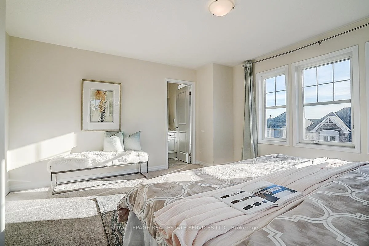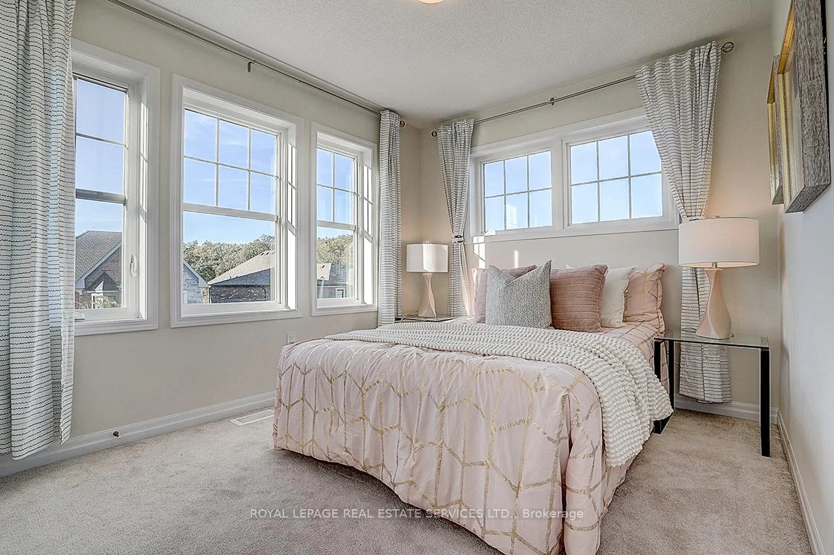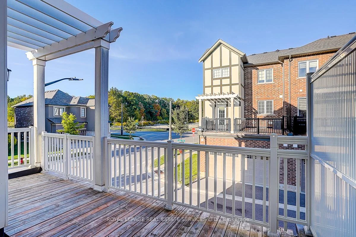 Impressive Mattamy Tamarack Model Townhome in Oakville's Desirable Preserve. This rare premier corner-lot home with a double-car garage offers nearly 2,000 sq. ft. of thoughtfully designed living space, filled with abundant natural sunlight. Highlights include 9-foot ceilings and an expansive corner porch. The versatile main-level suite with a closet and full 3-piece ensuite is ideal as a 4th bedroom or a private office. The upper level showcases a modern eat-in kitchen with granite countertops, stainless steel appliances, and a pantry, perfect for everyday living and entertaining. French doors open to an oversized second-floor terrace with serene forest views, a fantastic spot for BBQs and gatherings. Two bedrooms also overlook the forest, creating a peaceful retreat. For added convenience, this level includes an upper-level laundry room. The third floor offers three spacious bedrooms, including a well-appointed primary suite. With upgraded window coverings, newer finishes, and direct interior access to the garage, this home blends comfort, functionality, and style. Ideally located close to top-rated schools, parks, trails, and all amenities, this property is a must-see!